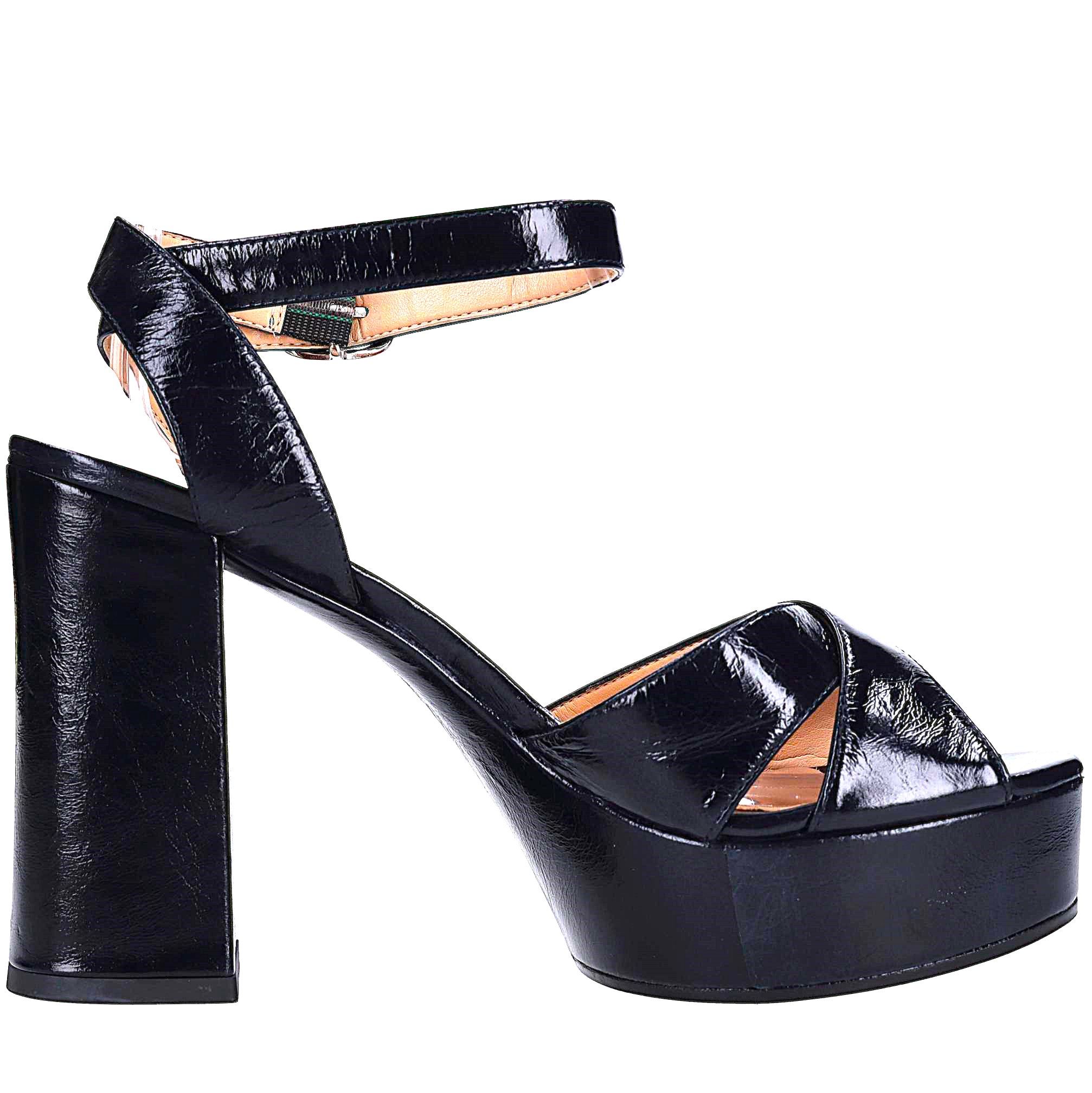 Des sandales en cuir. Semelle extérieure en caoutchouc. Tige intérieure en cuir et éco-cuir. Plateaux: 3 cm. Couleur nuit bleue.