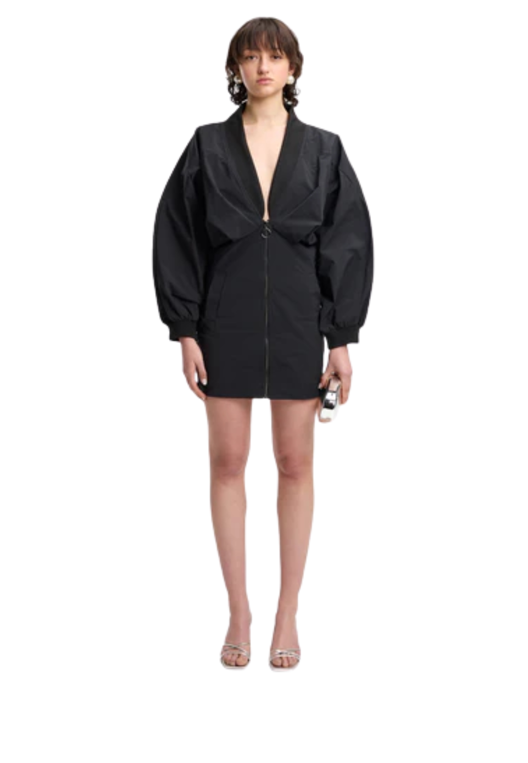 robe courte en nylon noir avec fermeture zip détails Ribbed
