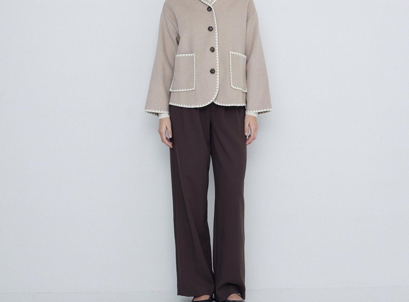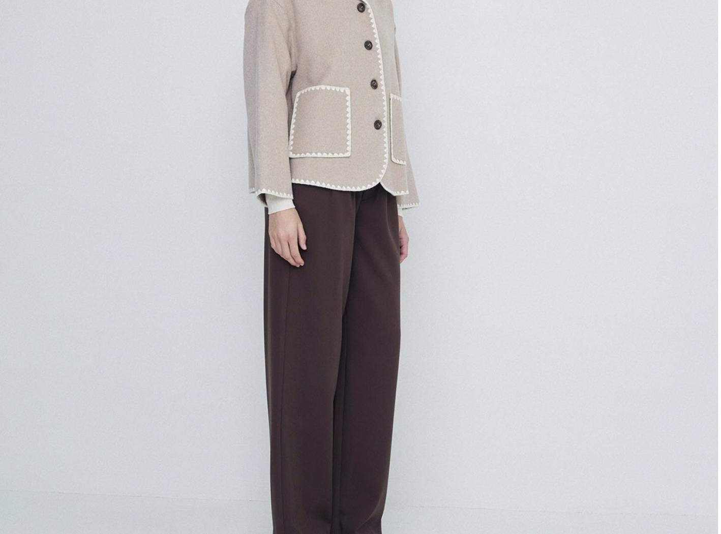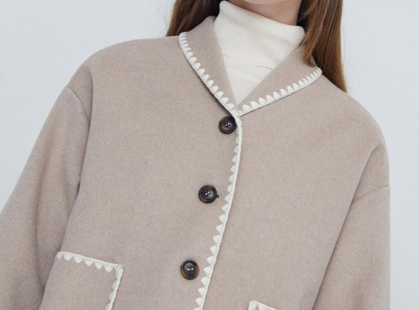 Blazer tressé en laine mélangé. En haut du cou. Longue manche. Détails finition couverte. Composition : 50% laine, 50% polyester. Hauteur modèle 175 cm, taille S.