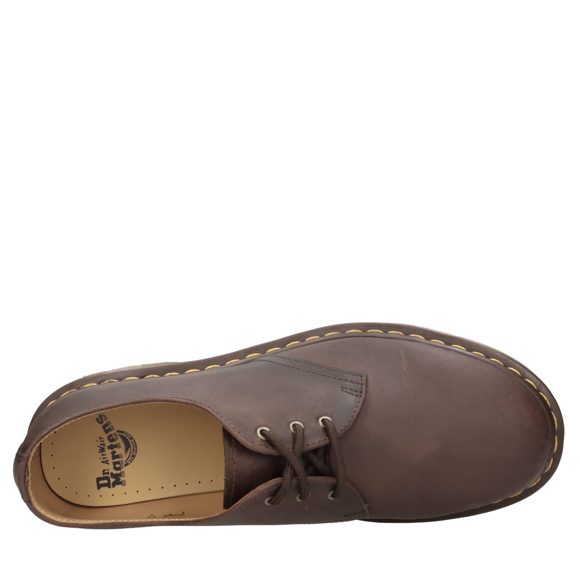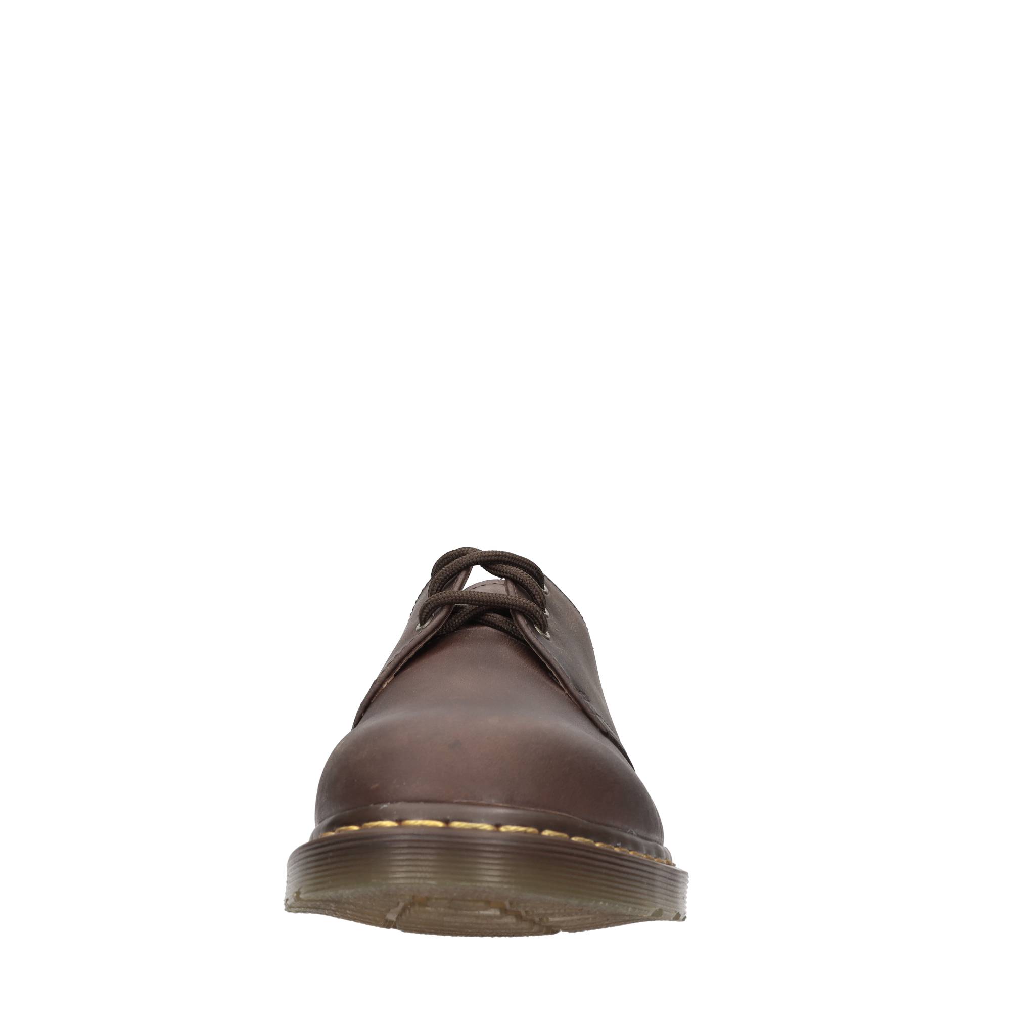Chaîne 1461 dans le nabuk. Fermeture avant avec lacets. Semelle extérieure en caoutchouc. Tige intérieure en cuir et tissu.