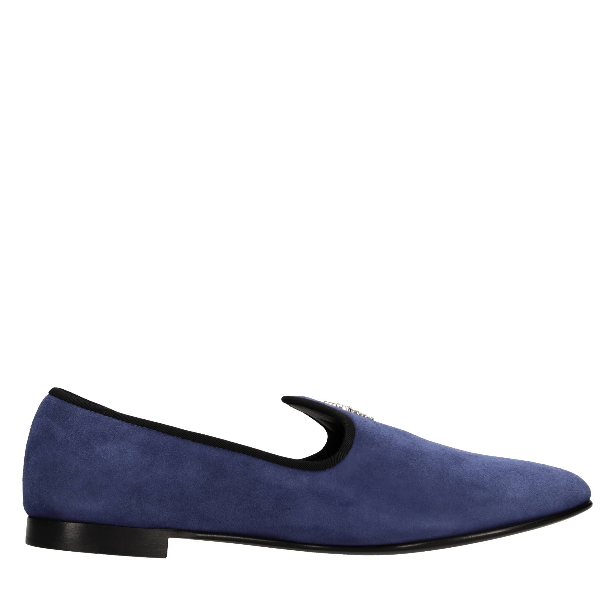 Mocassins en daim et tissu. Semelle extérieure en cuir Logate. Tige en cuir Logée.
