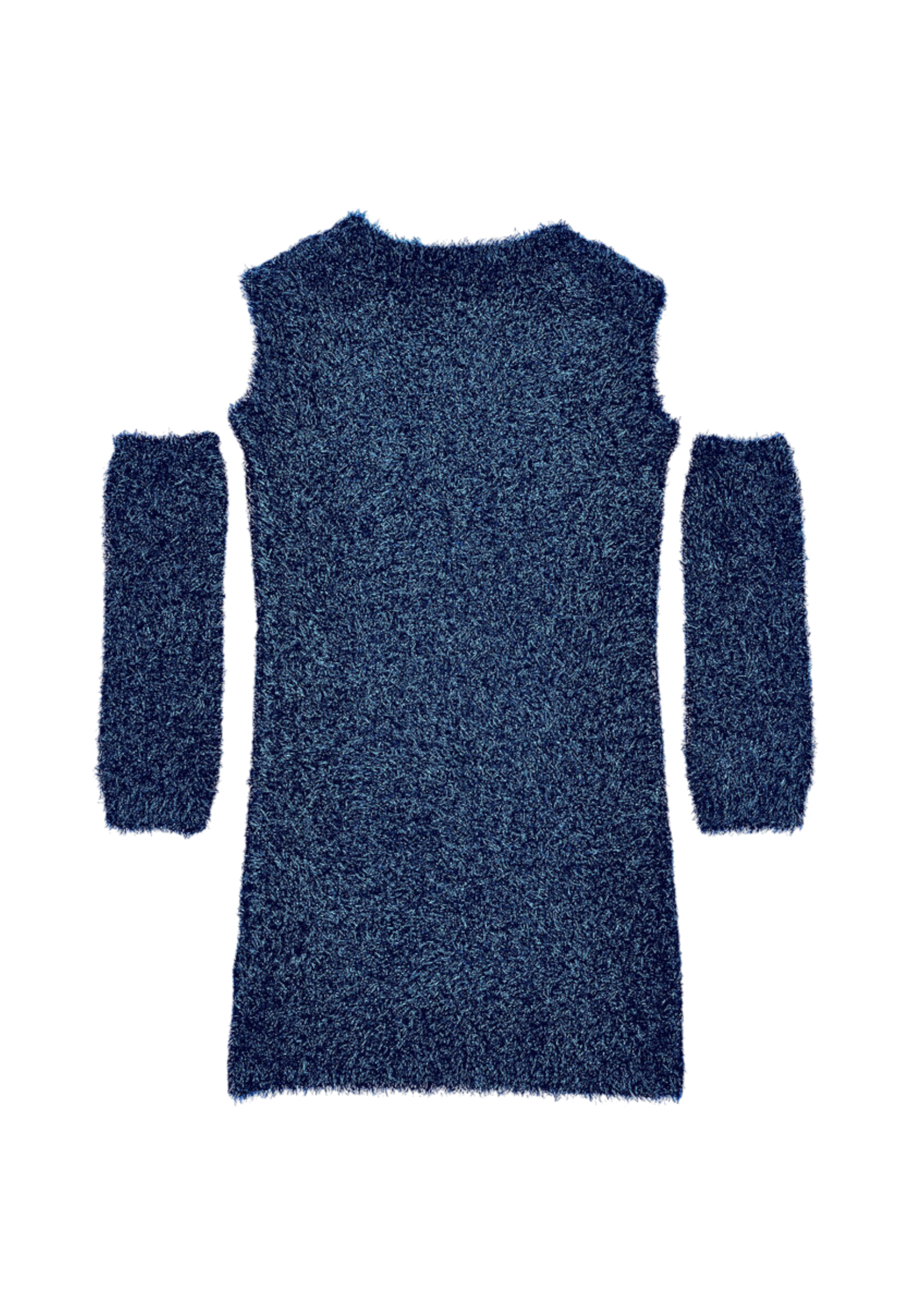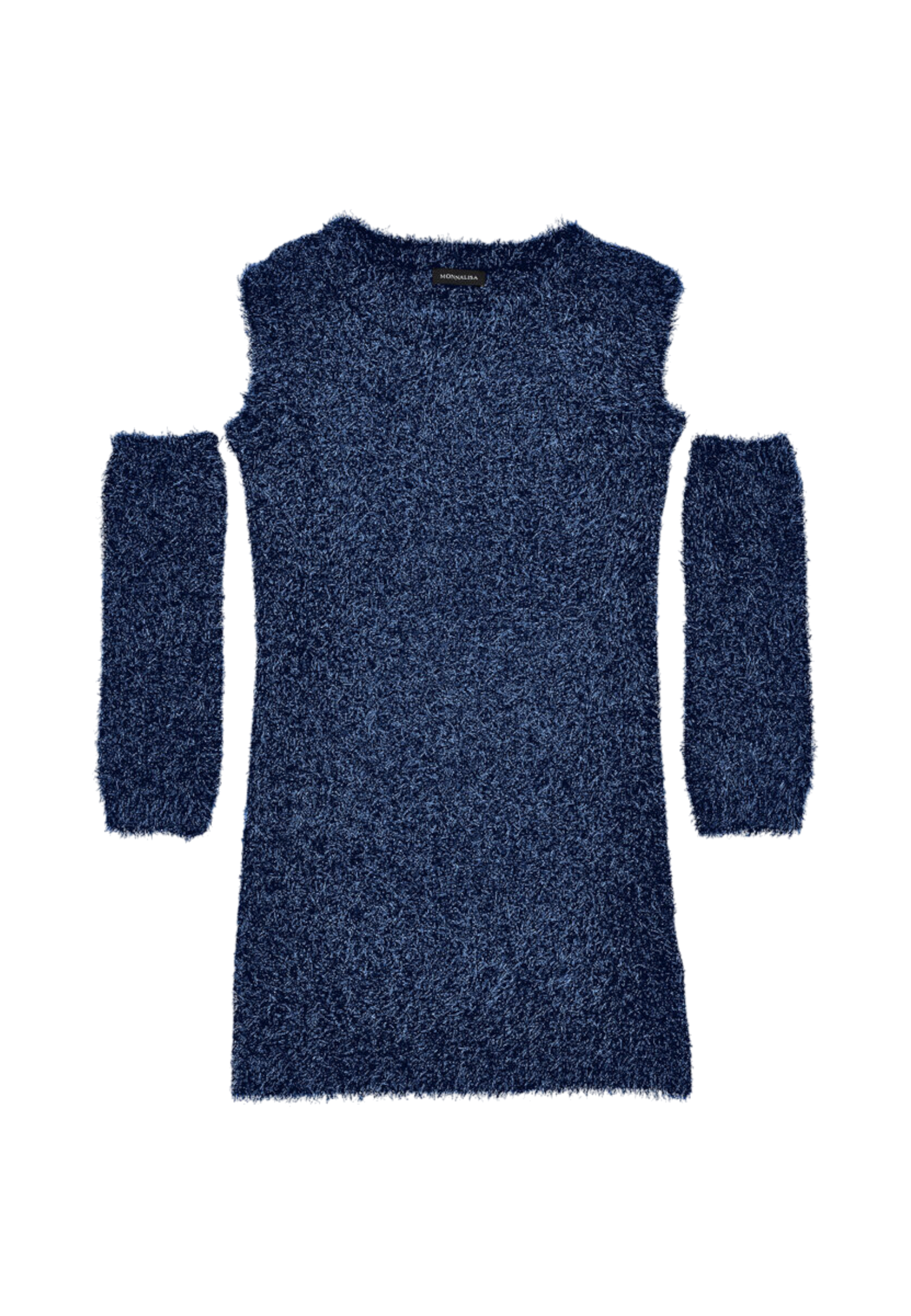 Linea asciutta, a tubino, per l'abito realizzato in tessuto lurex con effetto lanuginoso completo di accessori