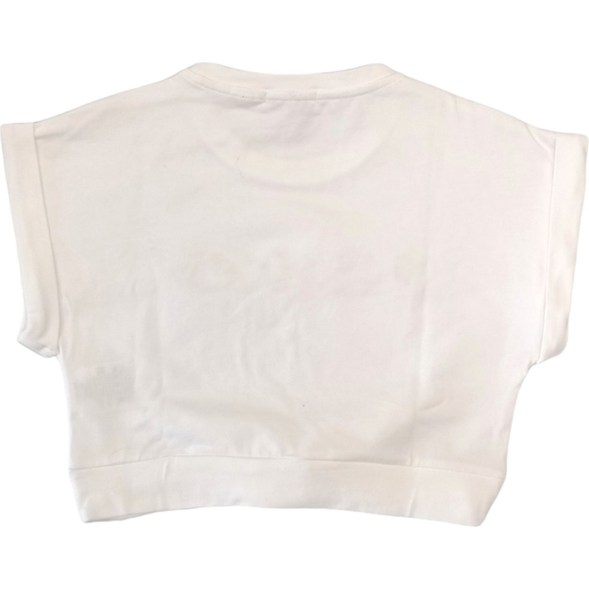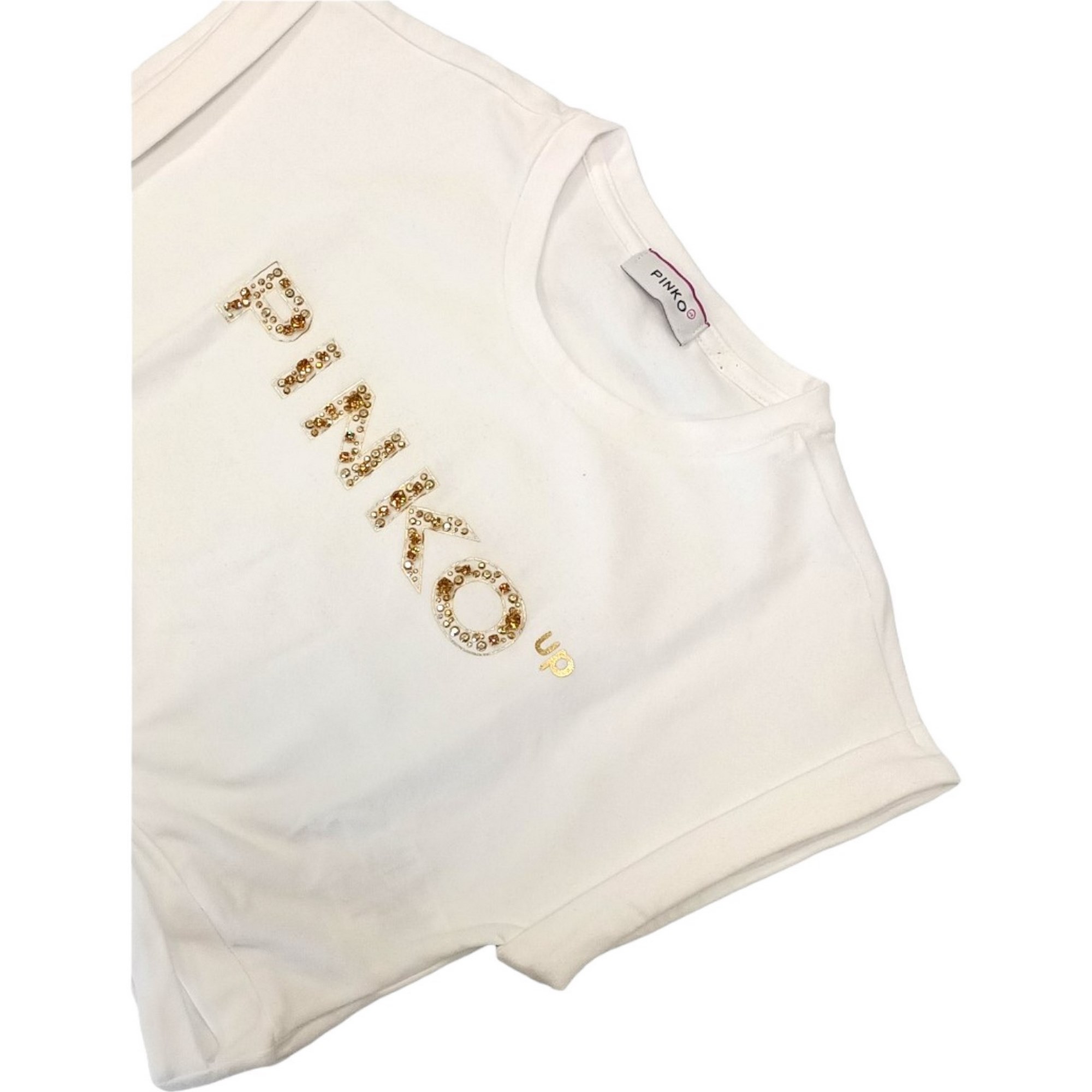 T-Shirt bianca , modello corto con logo oro sul petto.