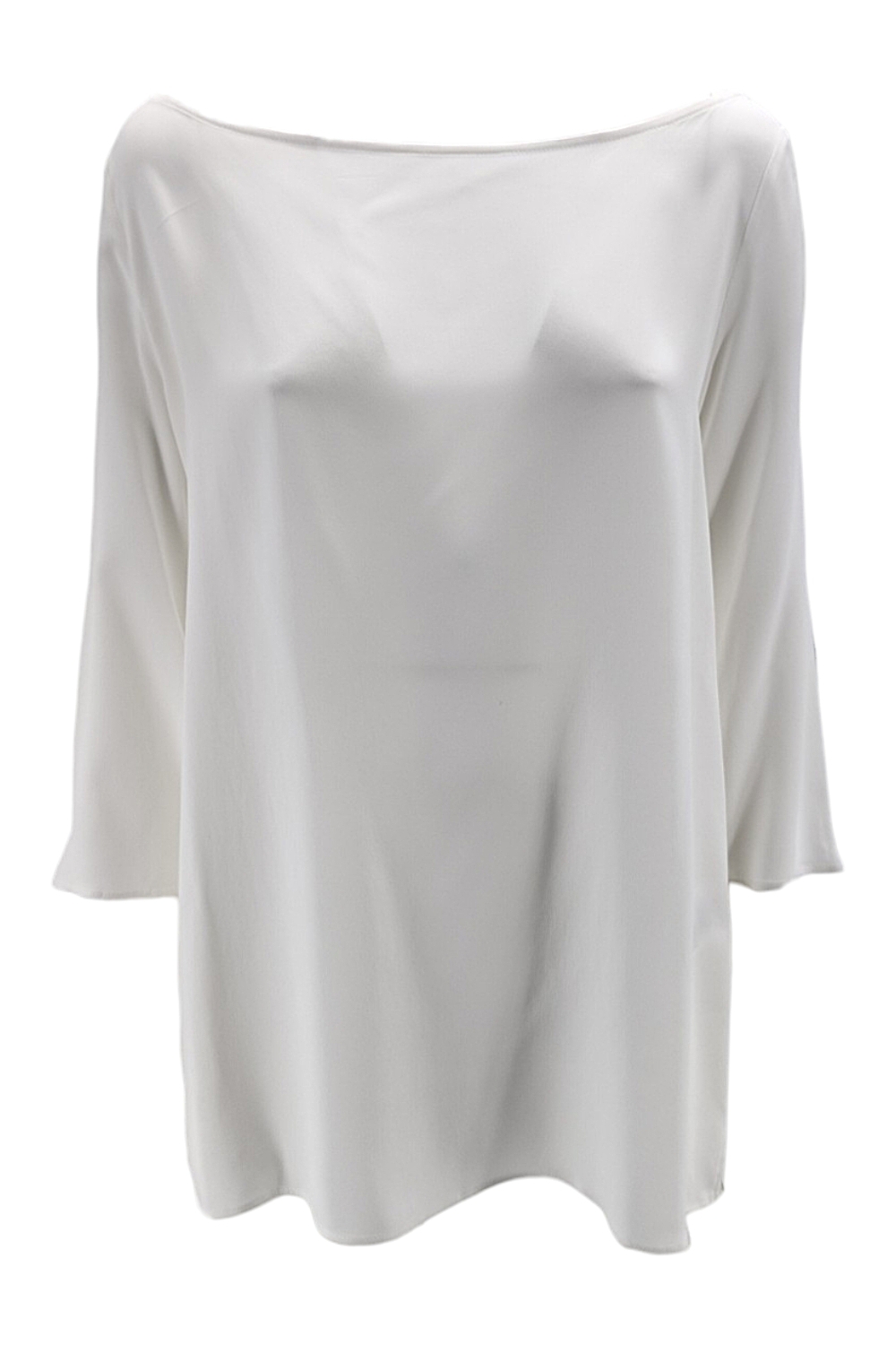 T-shirt modello over . Manica 3/4. Spacchetti laterali. Scollatura a barca. Composizione: 69% acetato, 31% seta.