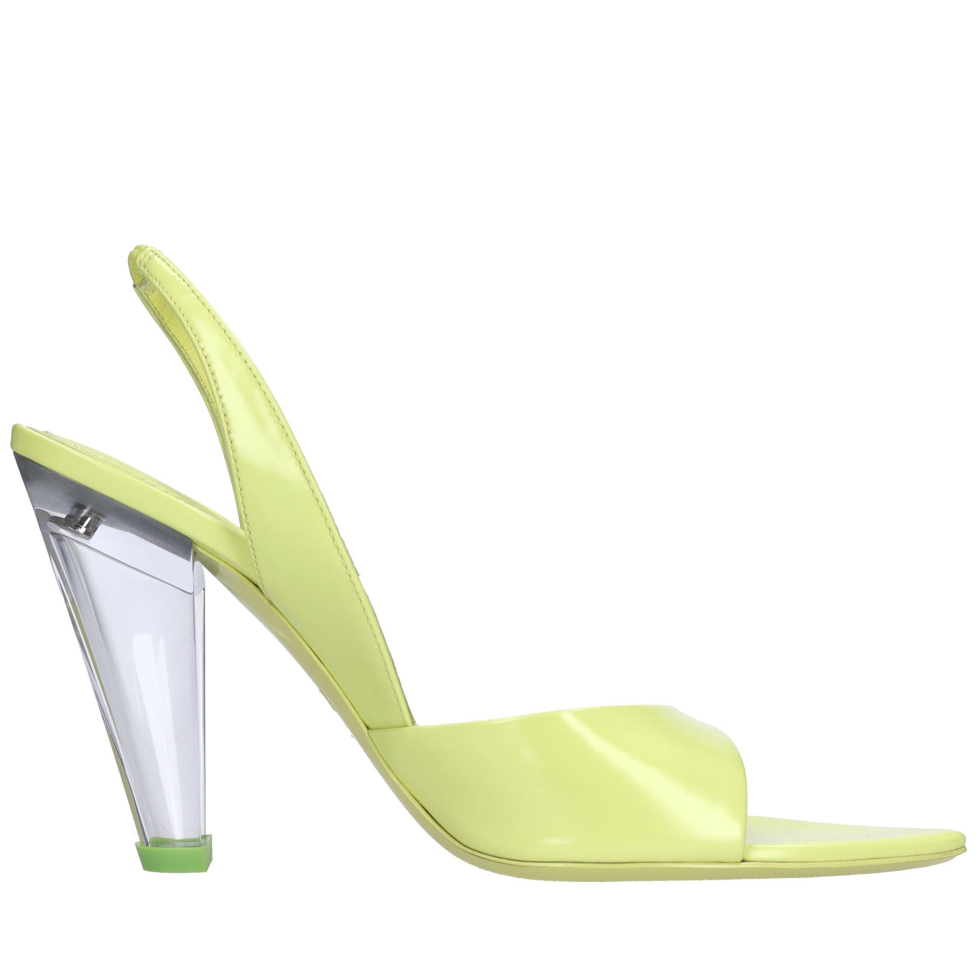 Sandali Bridget in pelle.Tomaia interna in pelle.Suola esterna in cuoio.Tacco affusolato trasparente.
