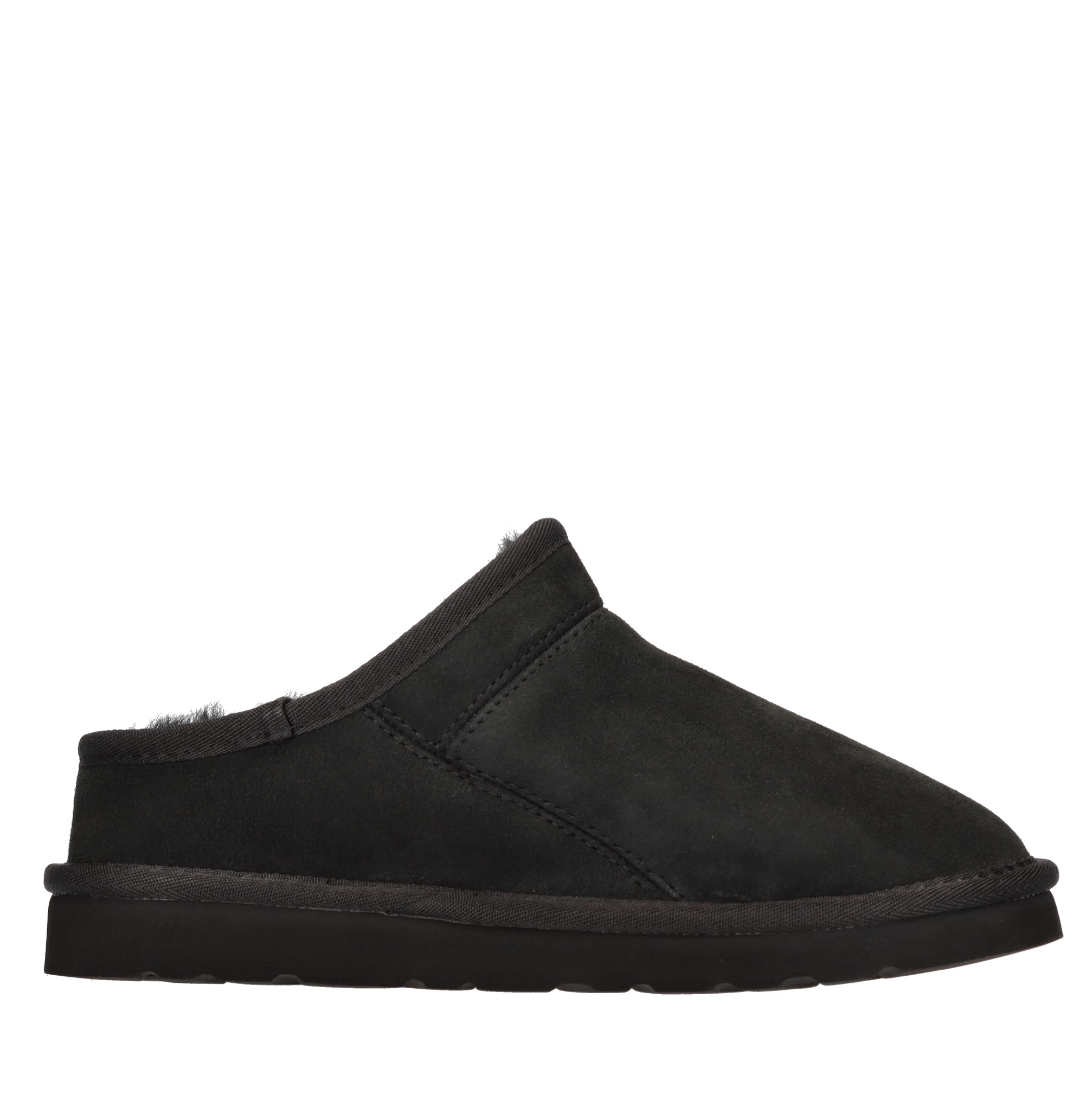 Sabot in camoscio. Suola esterna in gomma. Tomaia in pelle. Pelliccia interna.