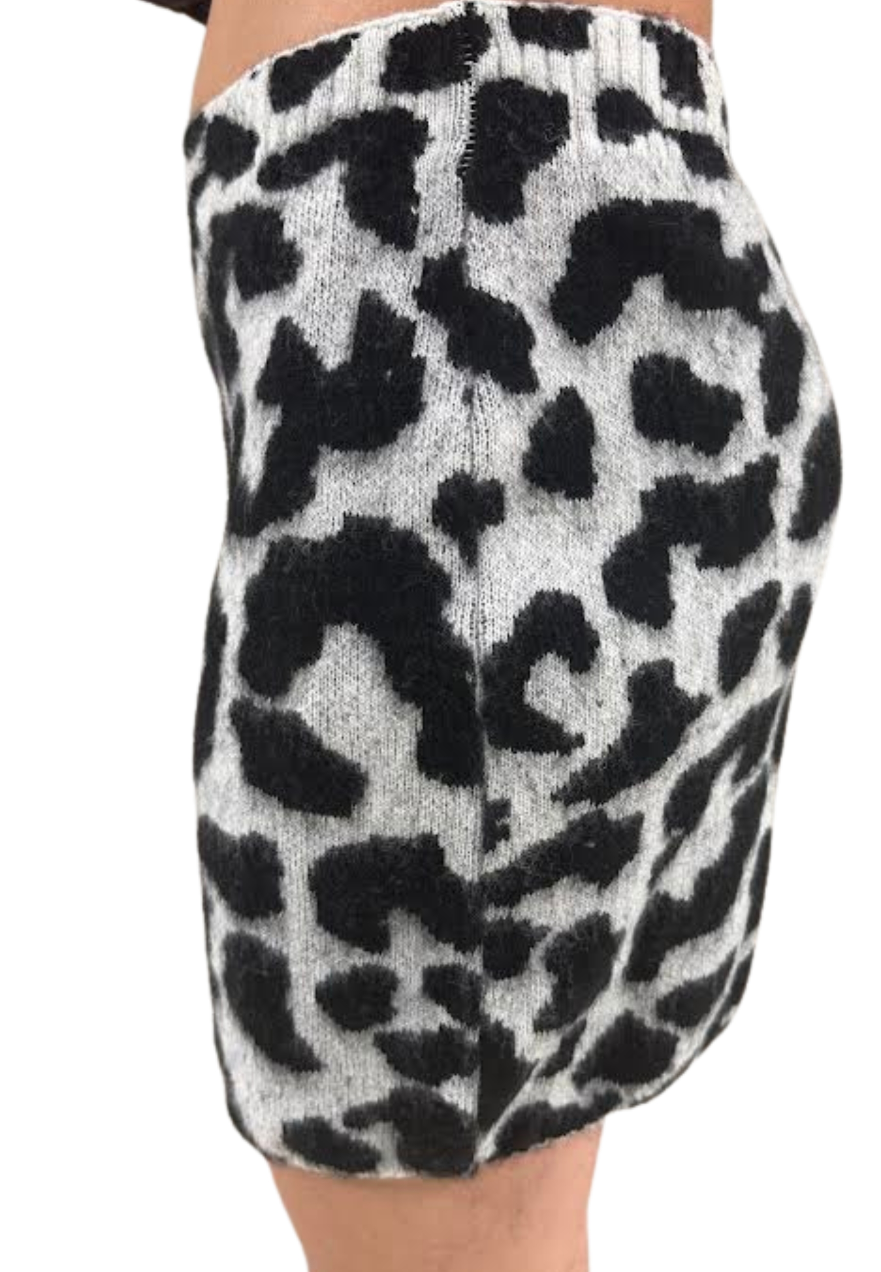 Minigonna in jacquard con motivo maculato, tessuto strutturato e linea slim. Grintosa e femminile, perfetta per un look d'impatto.