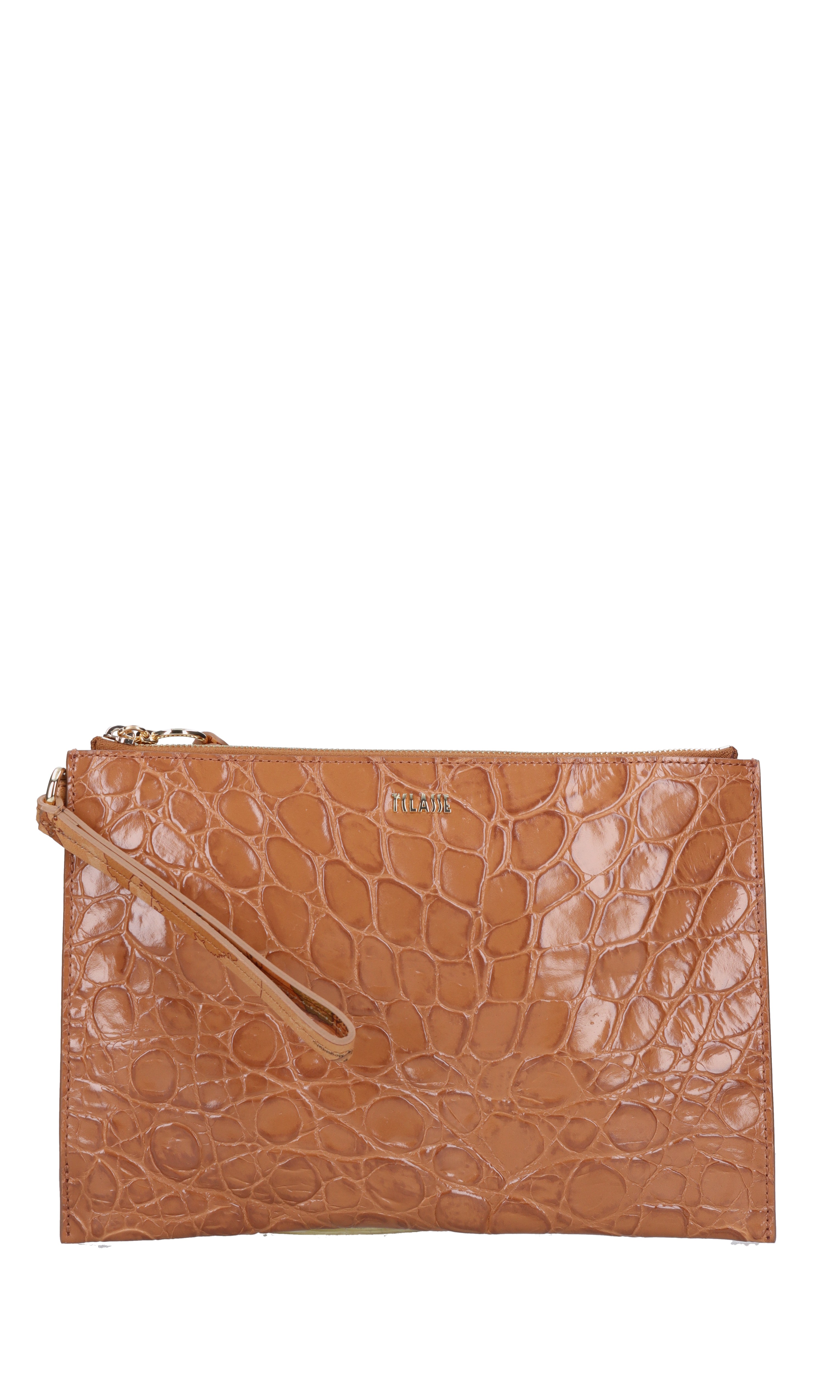 Borsa in pelle. 90% CALF LEATHER 10% OVINE LEATHER. 1 Comparto. Chiusura con zip. Polsiera.