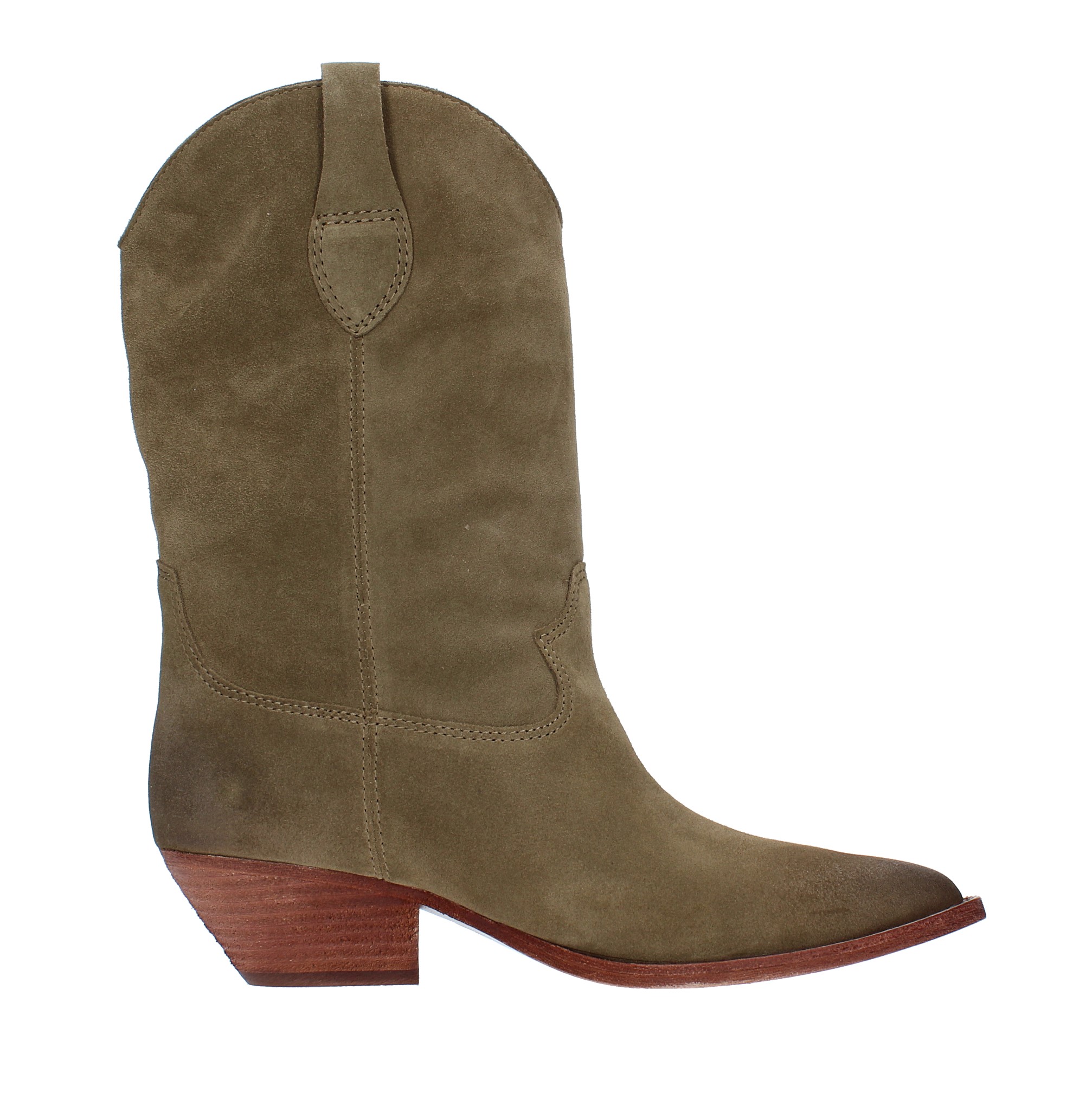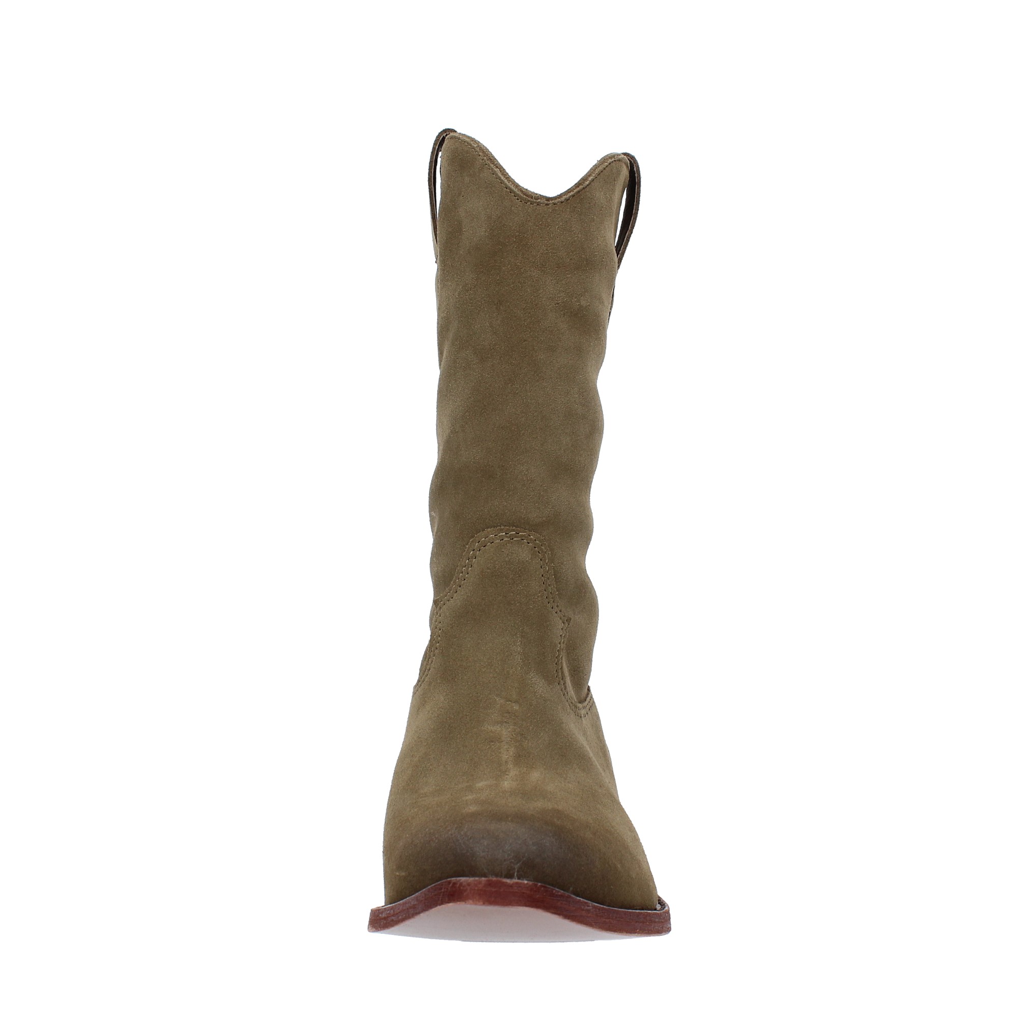 Stivaletti Texani modello DALTON in camoscio. Suola esterna in cuoio. Tomaia interna in pelle.
