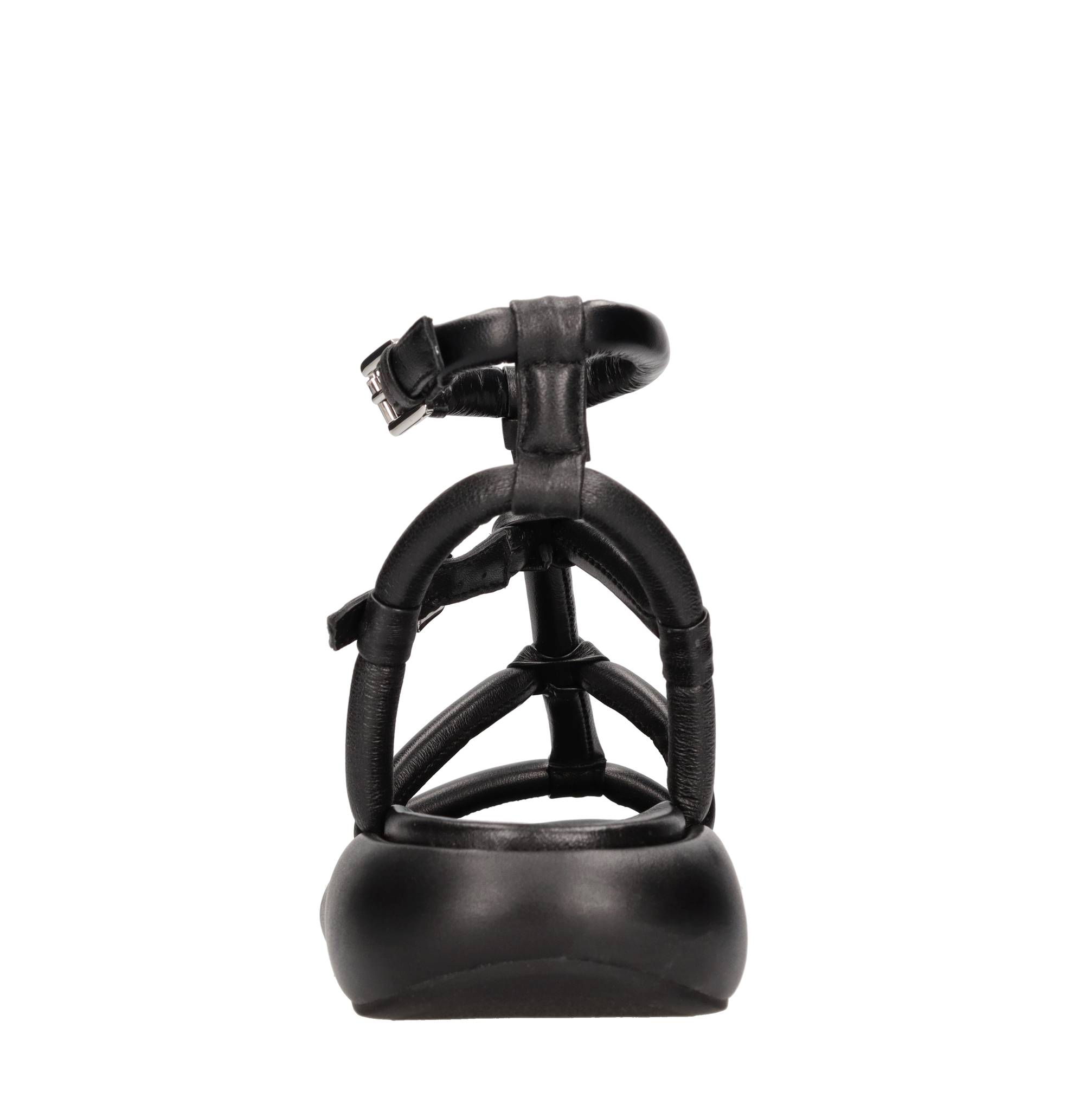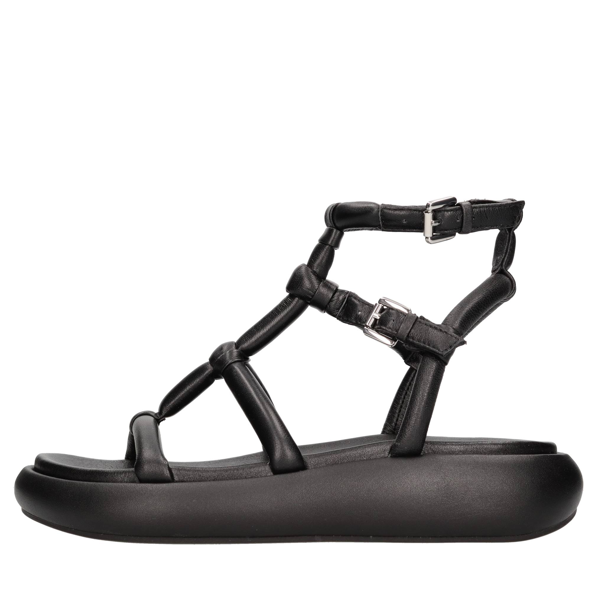 Sandali in pelle. Suola esterna in gomma logata. Tomaia interna in pelle logata.