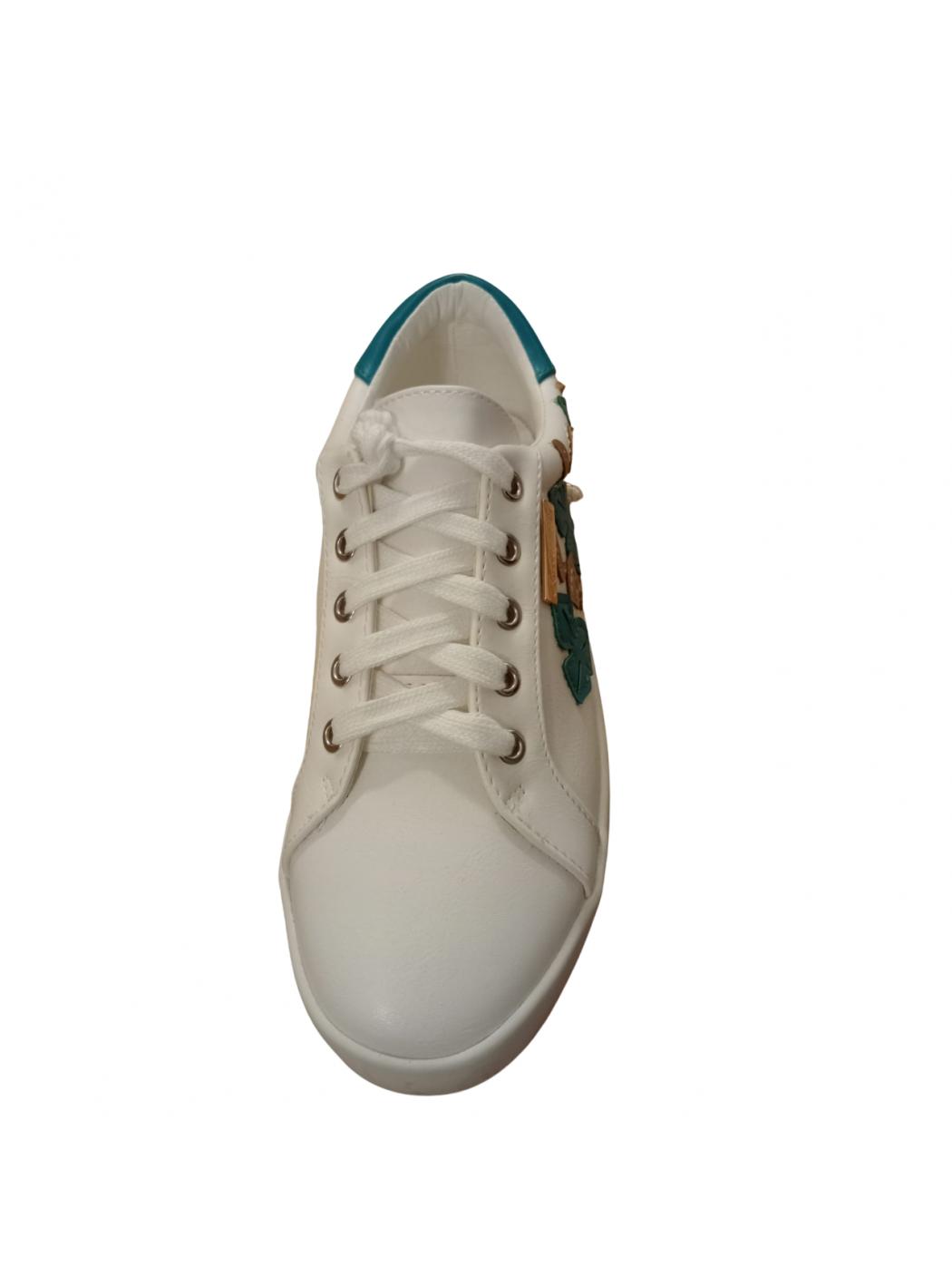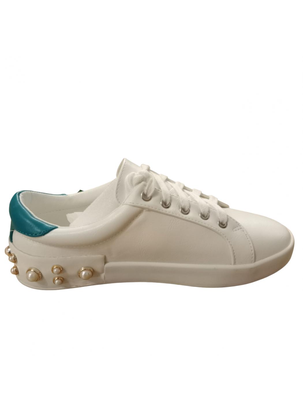 Basse Donna bianche Axel sempre attuali e di tendenza, le sneakers Axel danno personalità ai tuoi outfit. Questo modello di sneakers ha il fondo in gomma e la tomaia in ecopelle con stampe decorative e borchie con perle e anelli dorati. Chiusura con lacci bianchi.