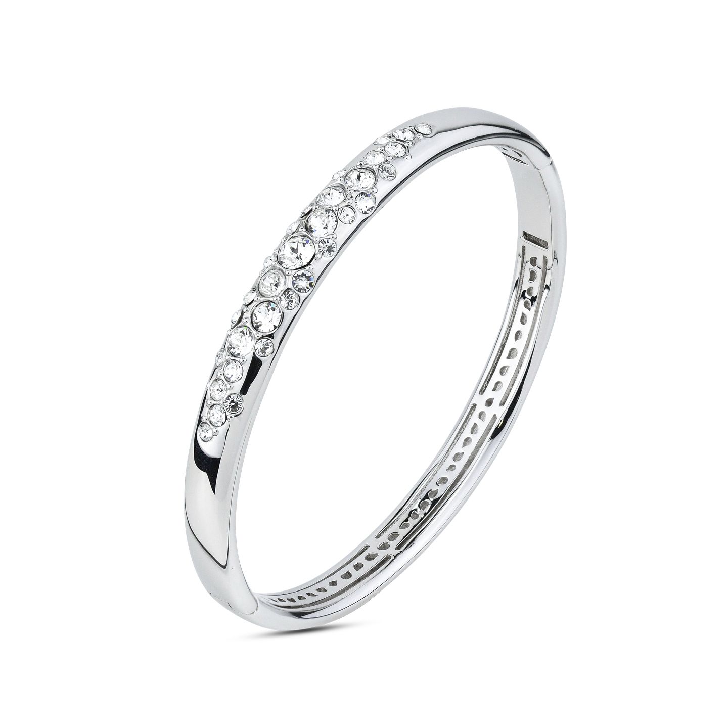 Bracciale Rigido Rodiato, Con Decoro Centrale Di Cristalli Crystal.
