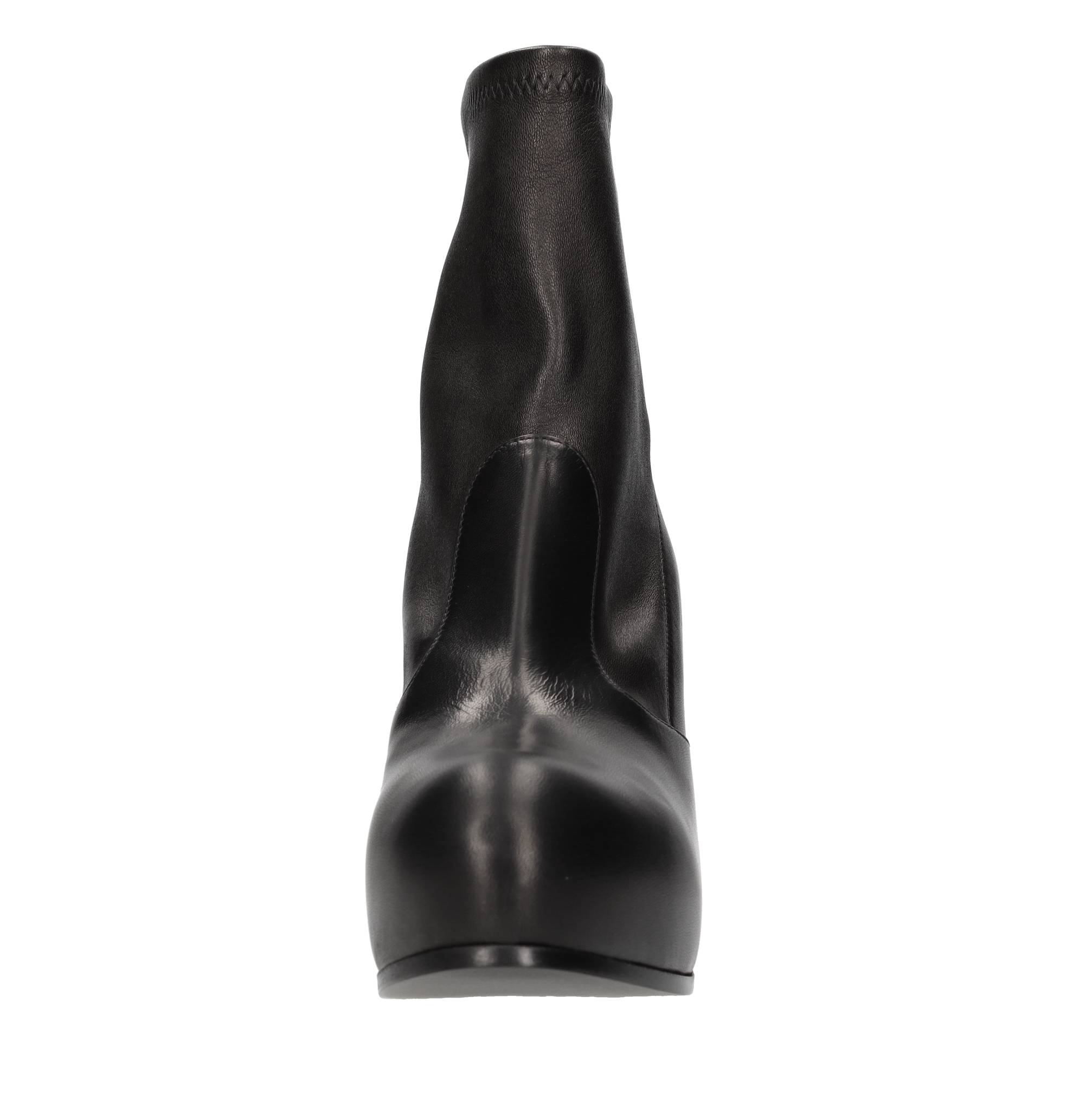 Tronchetti in nappa. Plateau 2.5cm. Suola esterna in cuoio. Tomaia interna in pelle e tessuto. Sconsigliamo l'applicazione della gomma protettiva alla suola. Tale operazione altera l'equilibrio della scarpa e può causare la rottura del tacco. L'eventuale riparazione del danno a causa di tale modifica, qualora richiesta, sarà a carico del cliente.