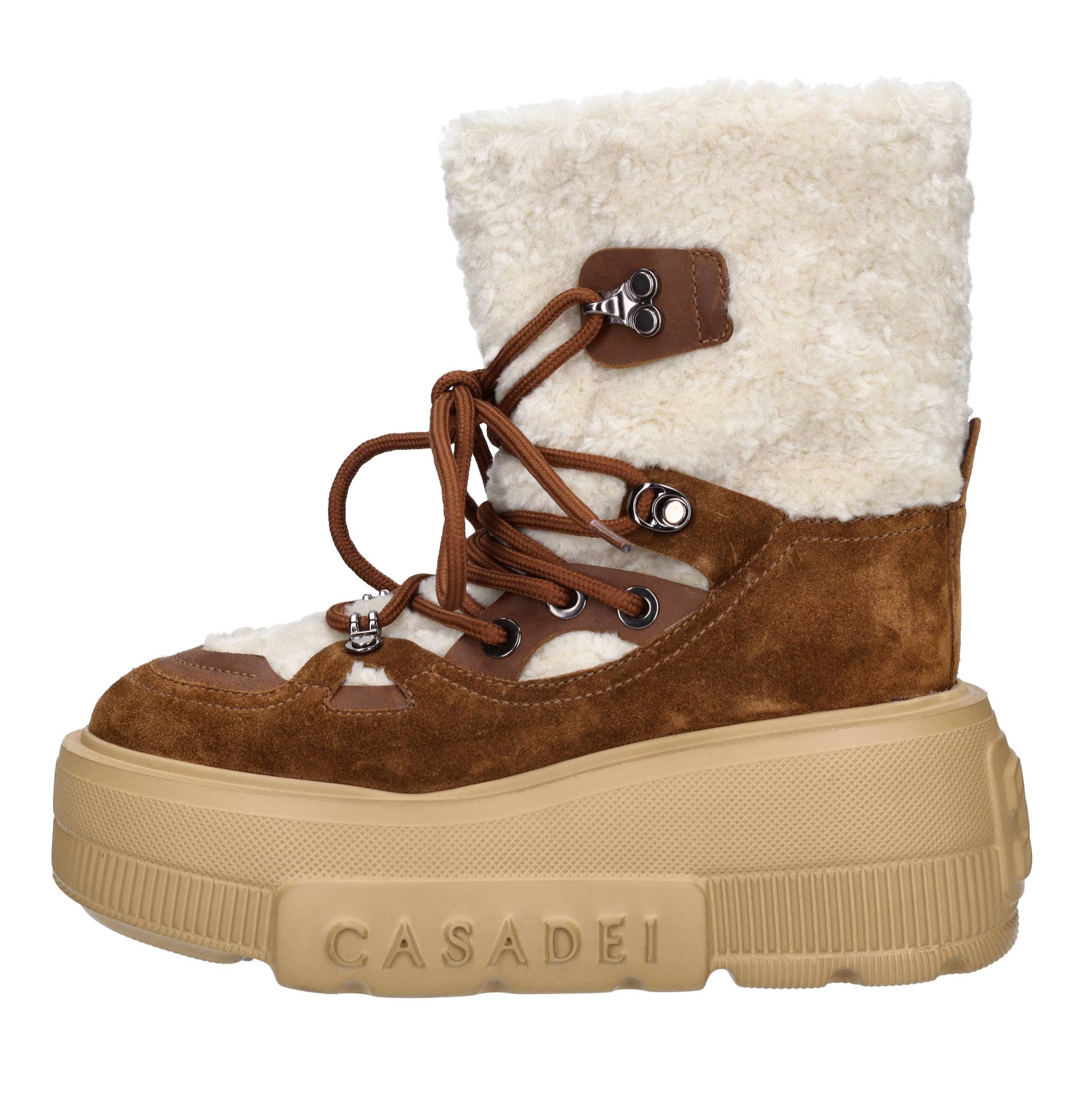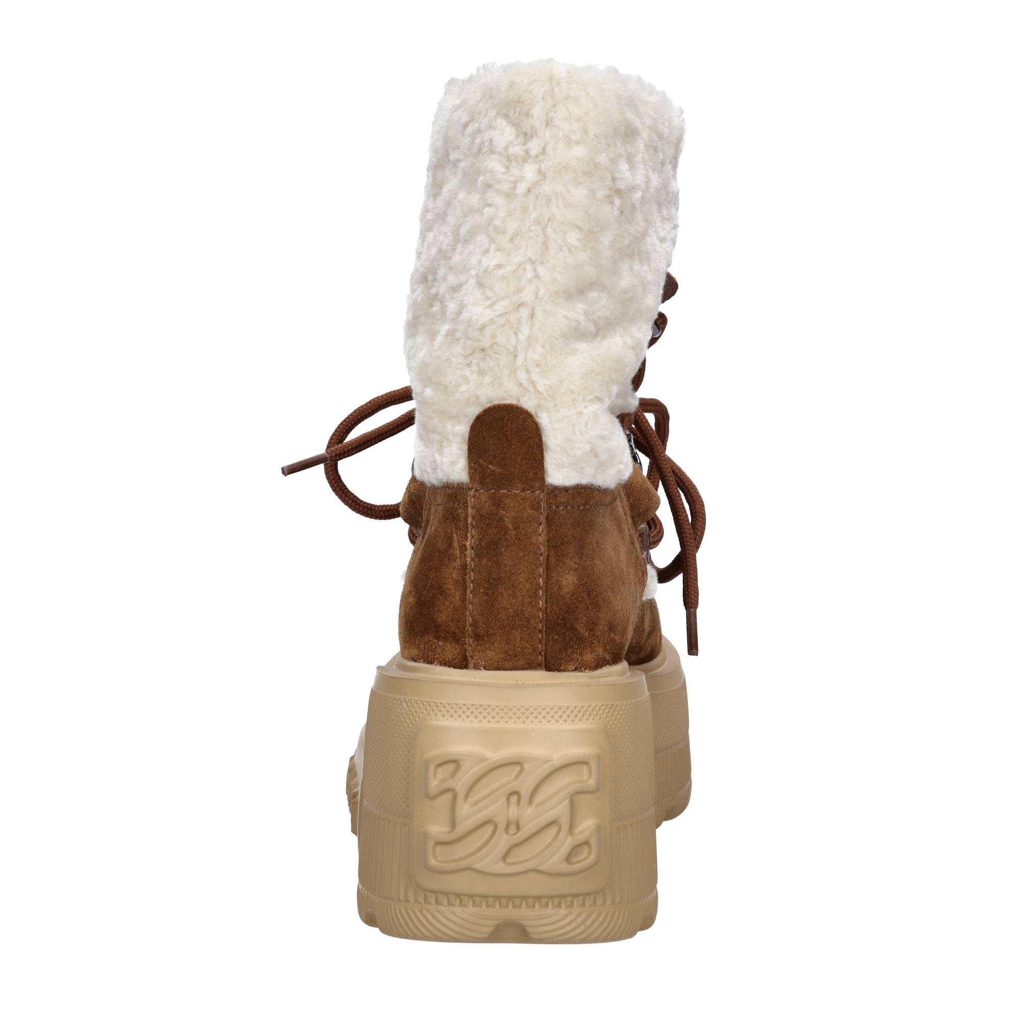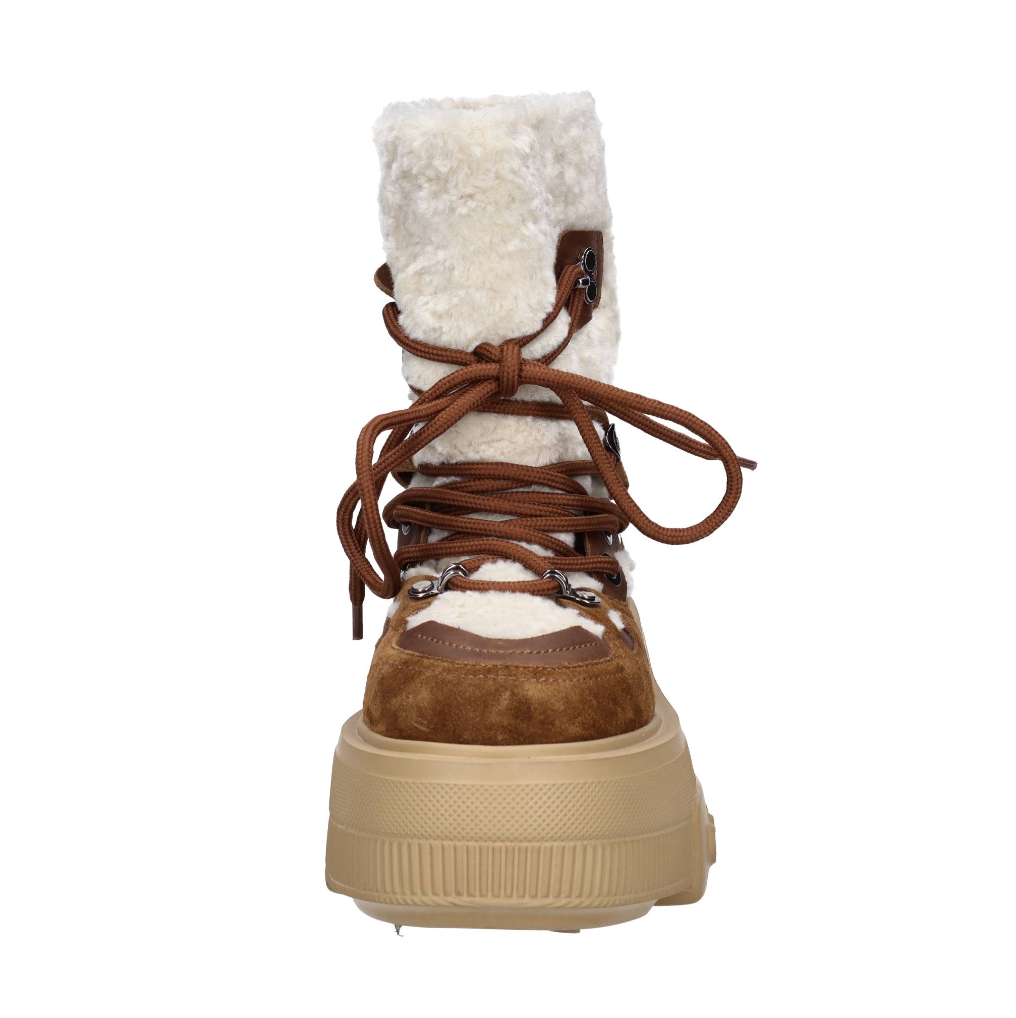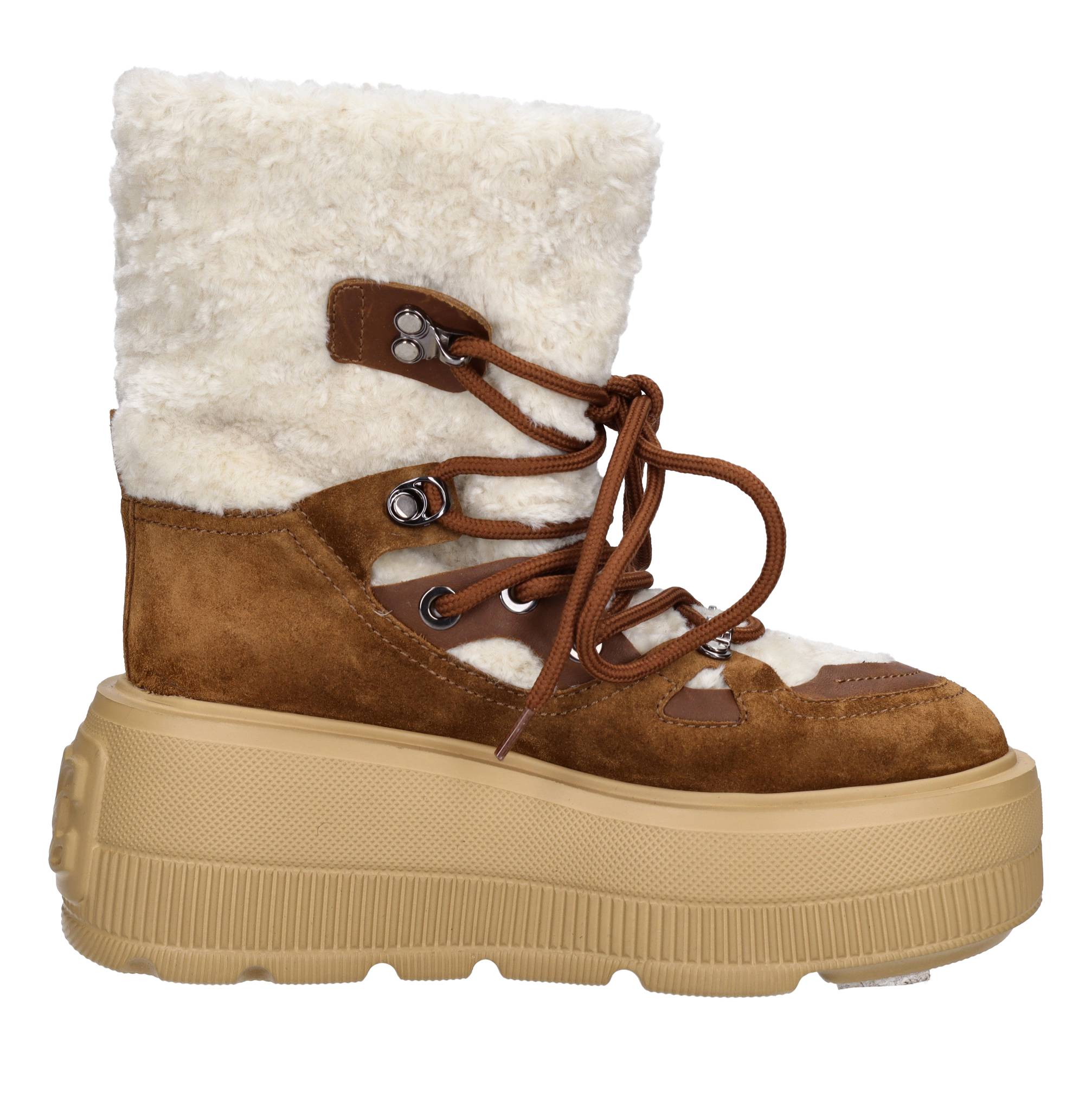 Scarponcini in pelliccia sintetica. Chiusura frontale con lacci. Plateu 6 cm. Suola esterna in gomma logata. Tomaia interna in pelliccia sintetica. Spediti su scatola neutra.