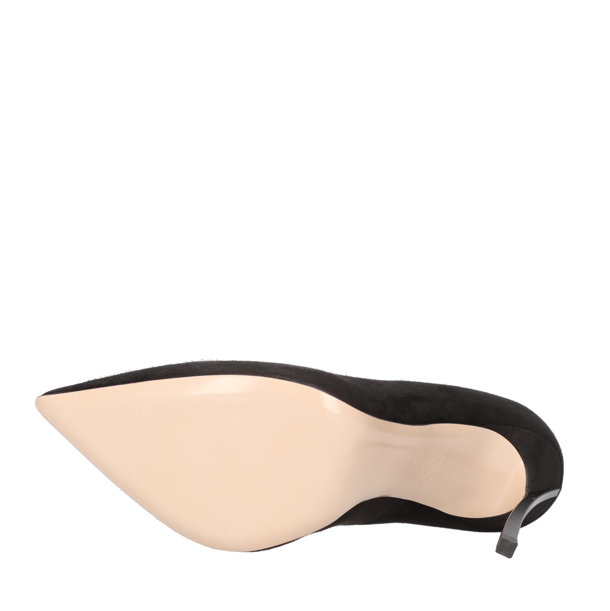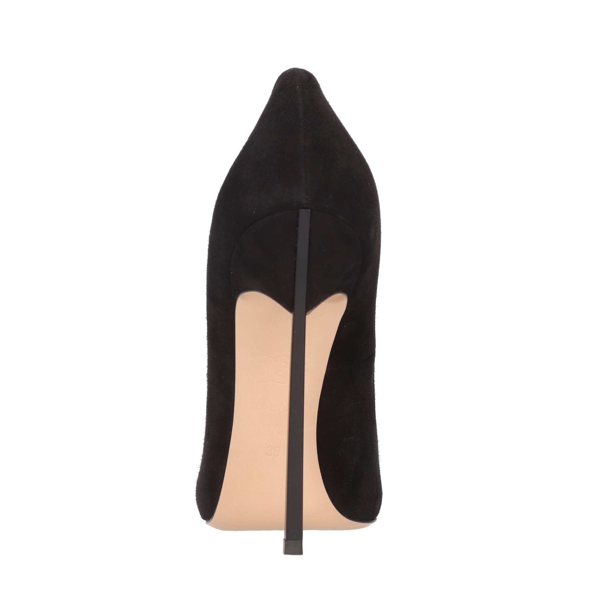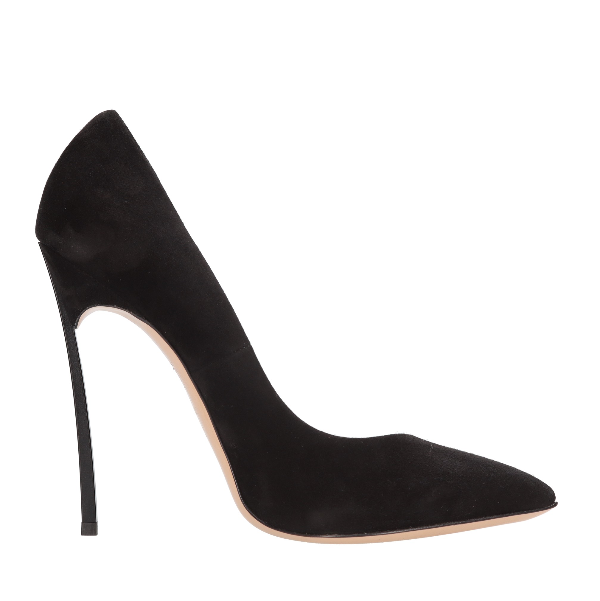 Décolleté in camoscio. Tacco blade. Suola esterna in cuoio. Tomaia interna in pelle. Sconsigliamo l'applicazione della gomma protettiva alla suola. Tale operazione altera l'equilibrio della scarpa e può causare la rottura del tacco. L'eventuale riparazione del danno a causa di tale modifica,qualora richiesta, sarà a carico del cliente.