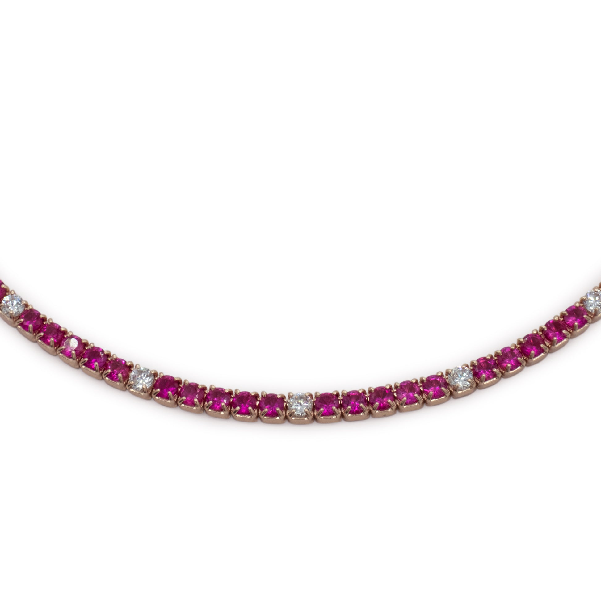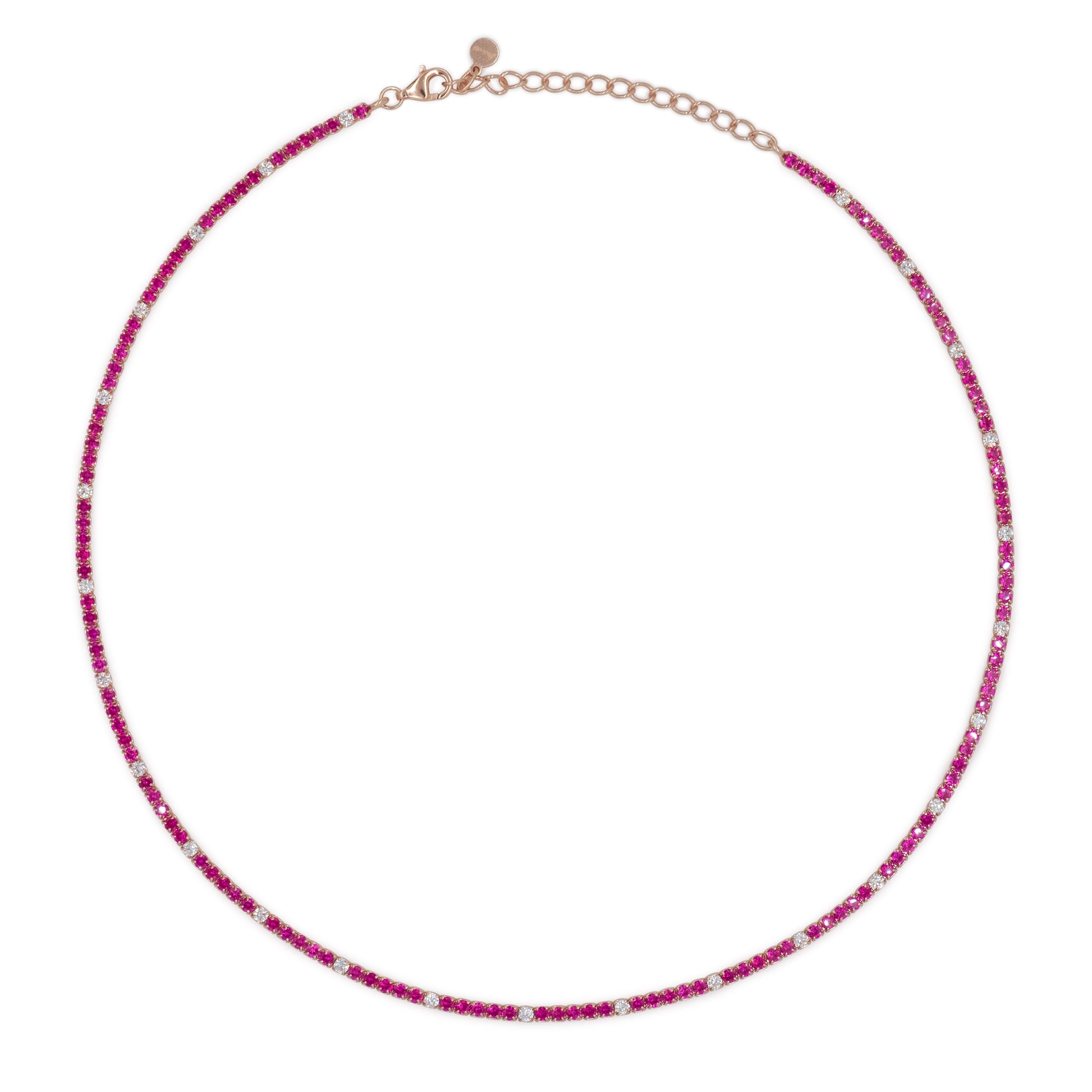Collana In Argento 925 Rosé Modello Tennis con Zirconi Magenta Alternati Ai Bianchi Da 2 mm.