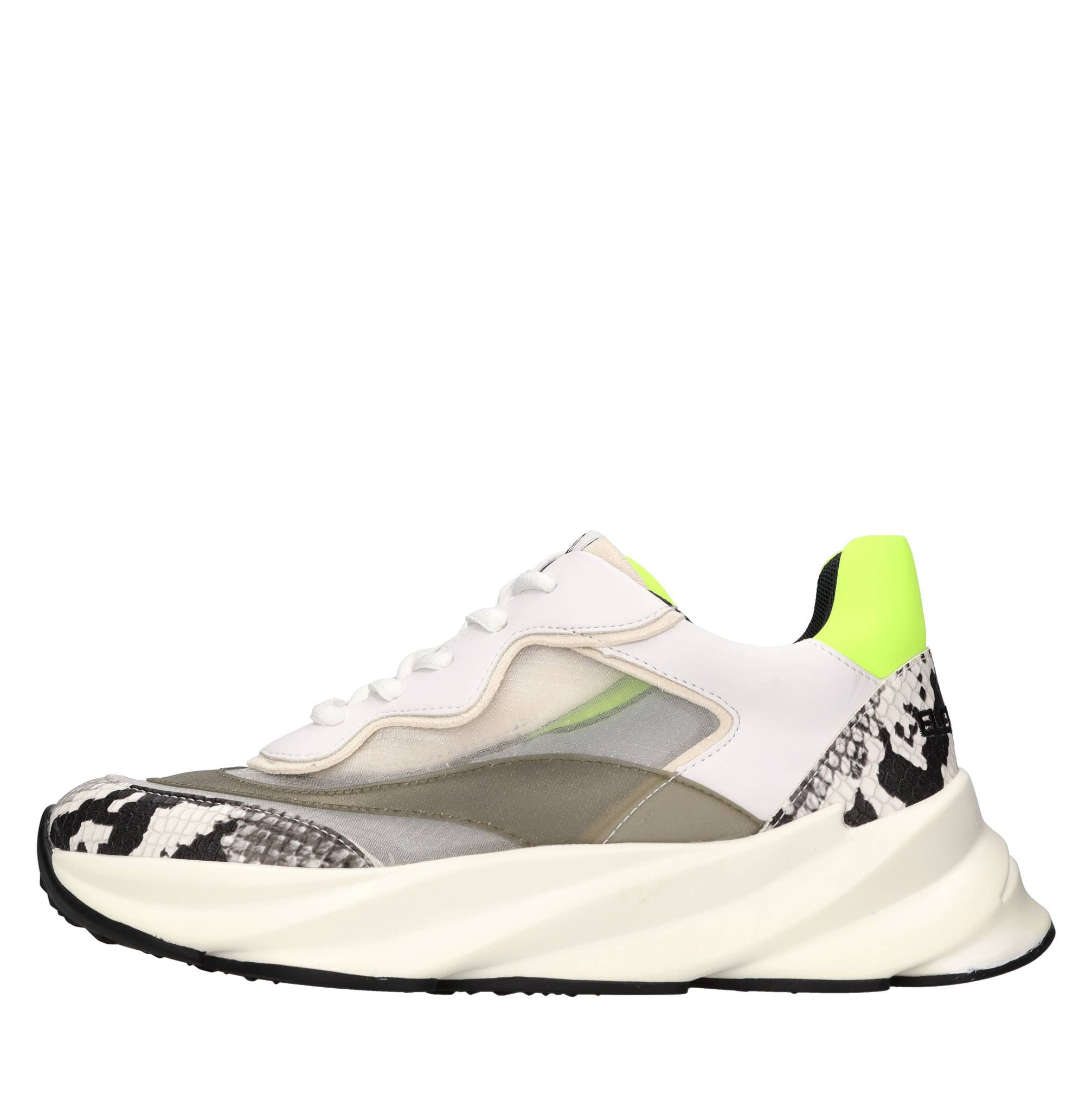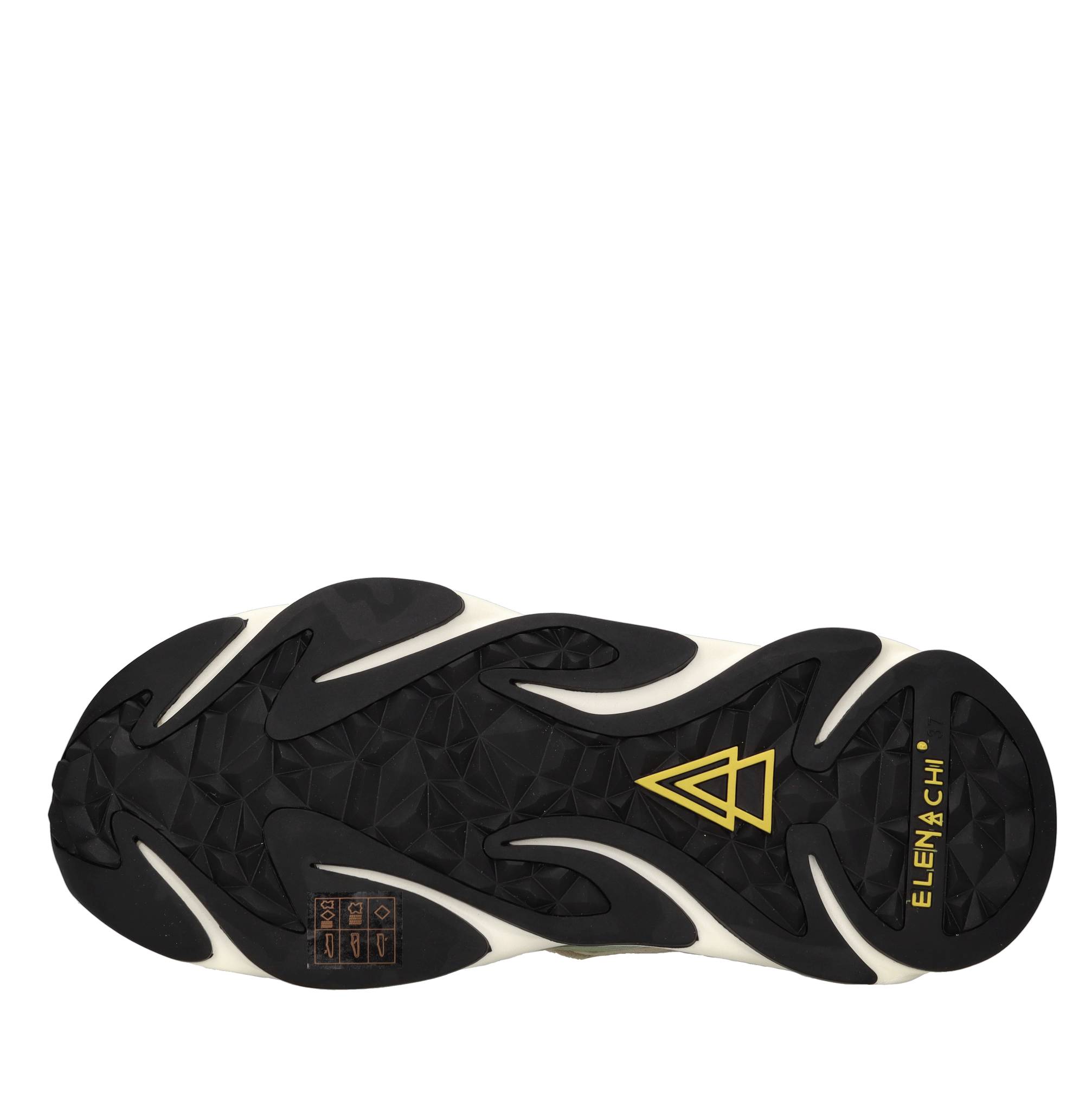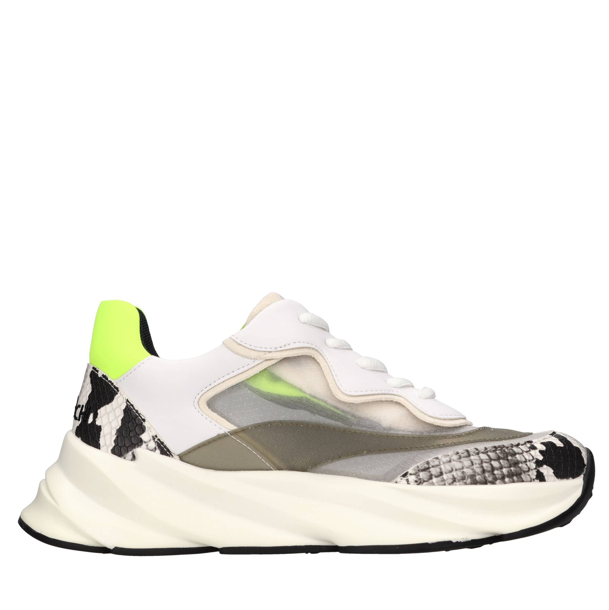 Sneakers in multimateriale. Inserti trasparenti e animalier. Suola esterna in gomma logata. Tomaia interna in pelle e tessuto.