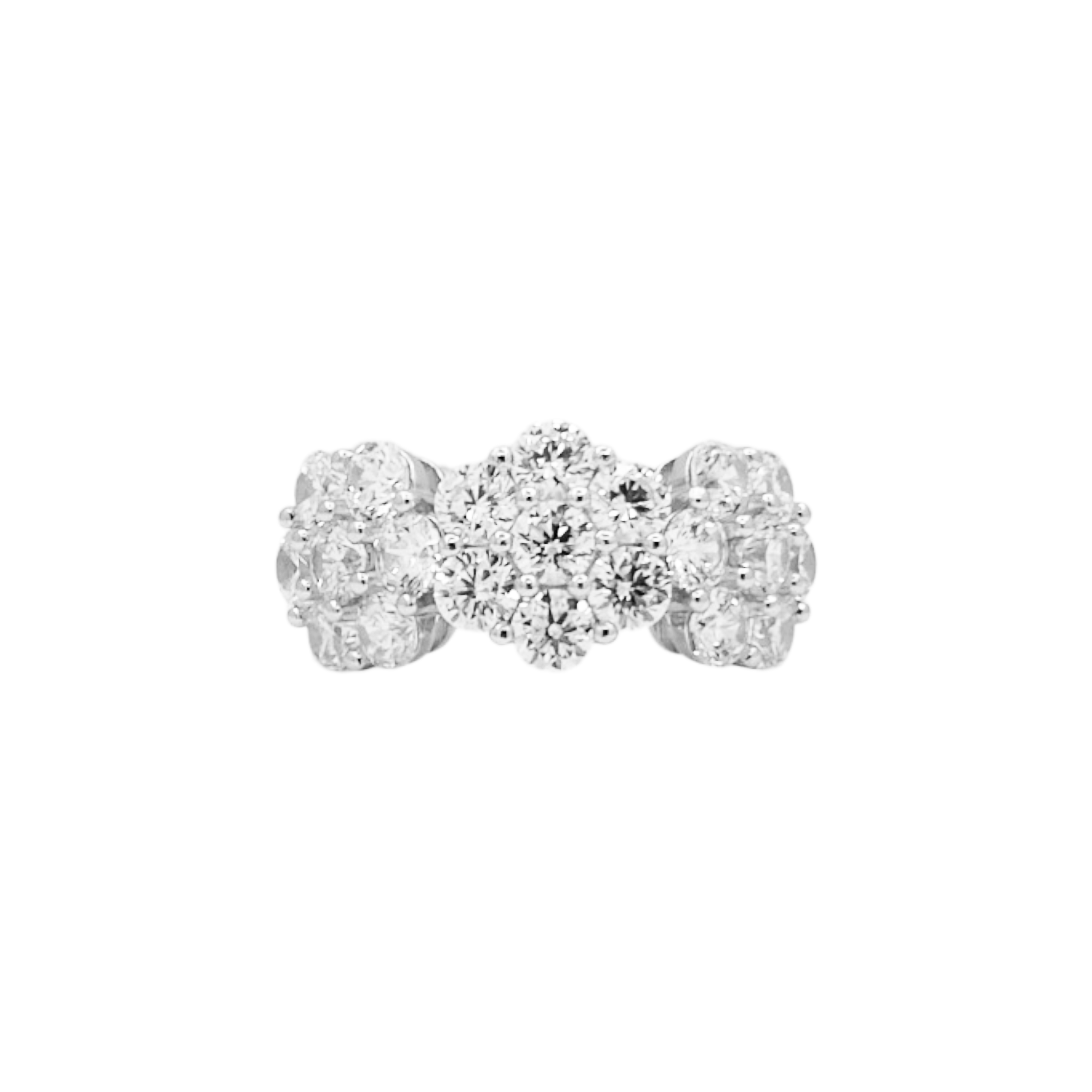 Anello In Argento 925 Modello Trilogy Con Tre Fiori Composta Da Zirconi Bianchi.