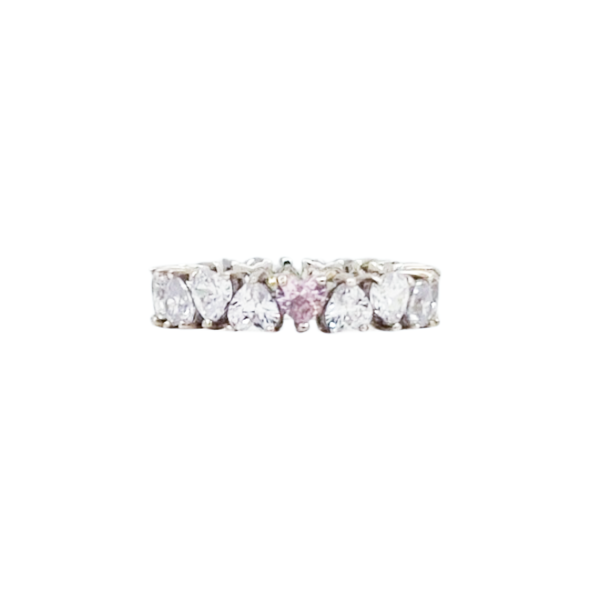 Anello In Argento 925 Modello Eternity Con Zirconi A Cuore Bianchi Ed Uno Rosa.