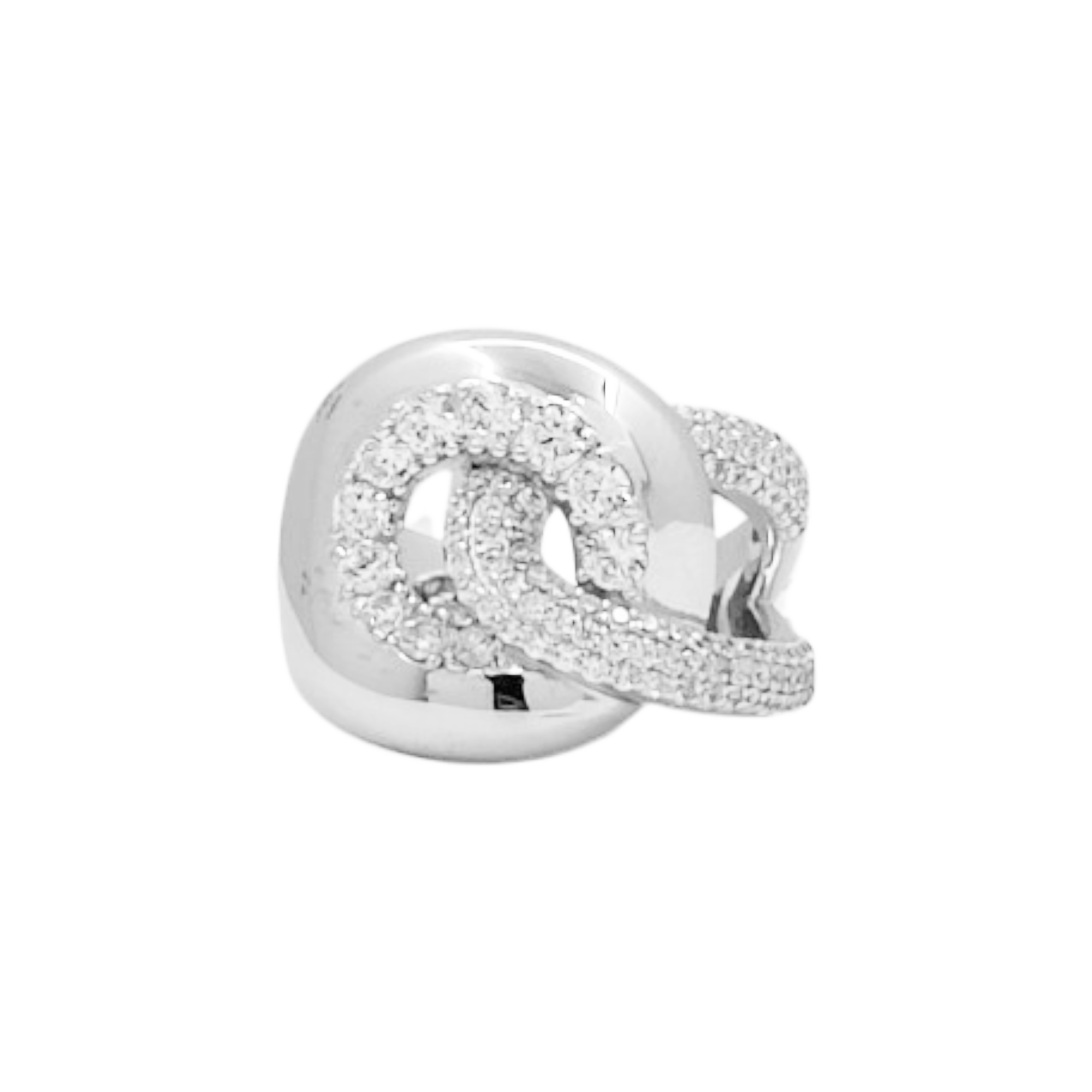 Anello In Argento 925 Modello Con Maglia Incastonata Da Zirconi Bianchi