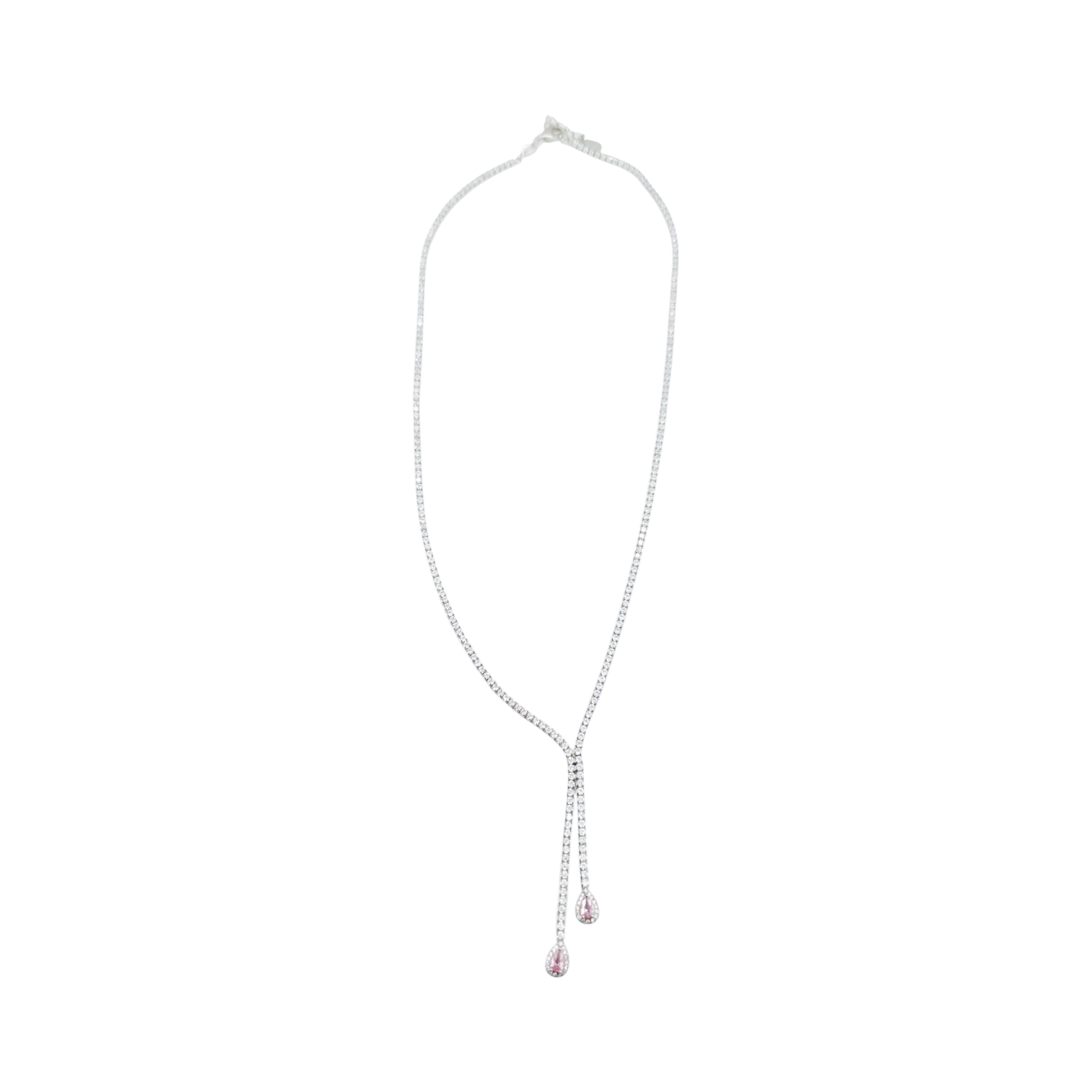 Collana In Argento 925% Modello Tennis Con Finali A Goccia Rosa. Chiusura A Moschettone.