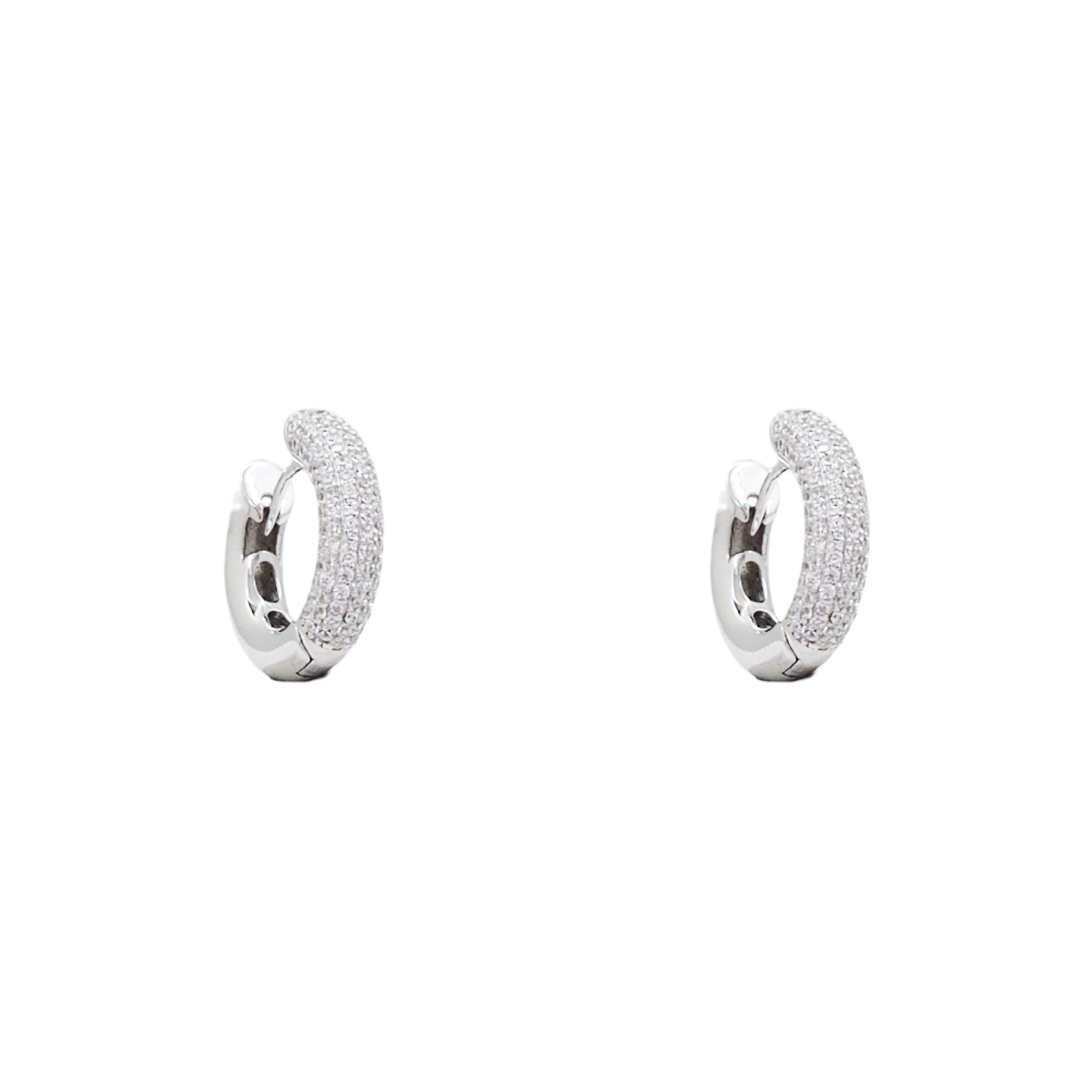 Orecchini In Argento 925% Modello a Cerchio Con Zirconi Bianchi.