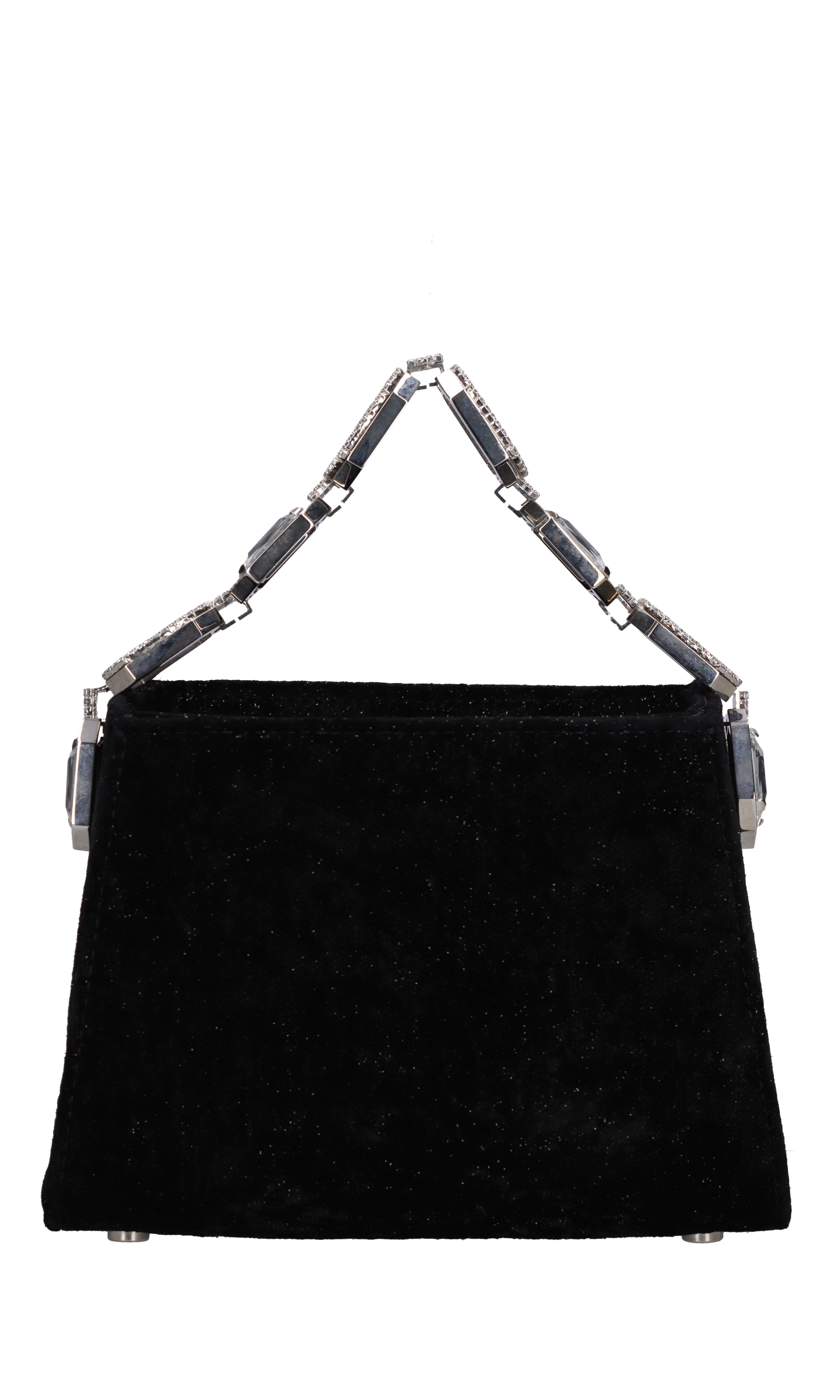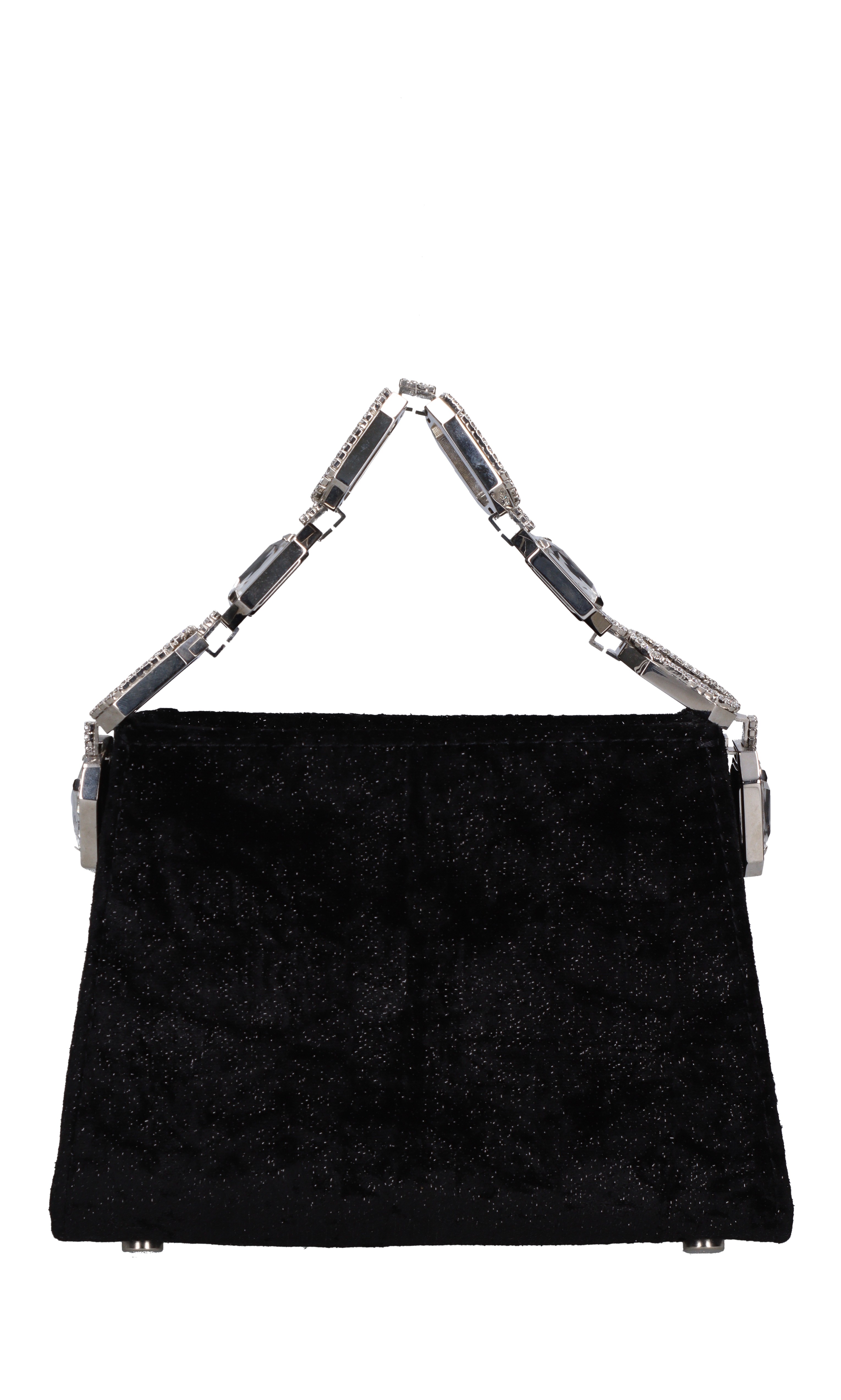 Borsa nicky velvet in velluto. 1 Comparto. Chiusura con bottone a scatto. Manico con strass. Spedita su bustina trasparente.