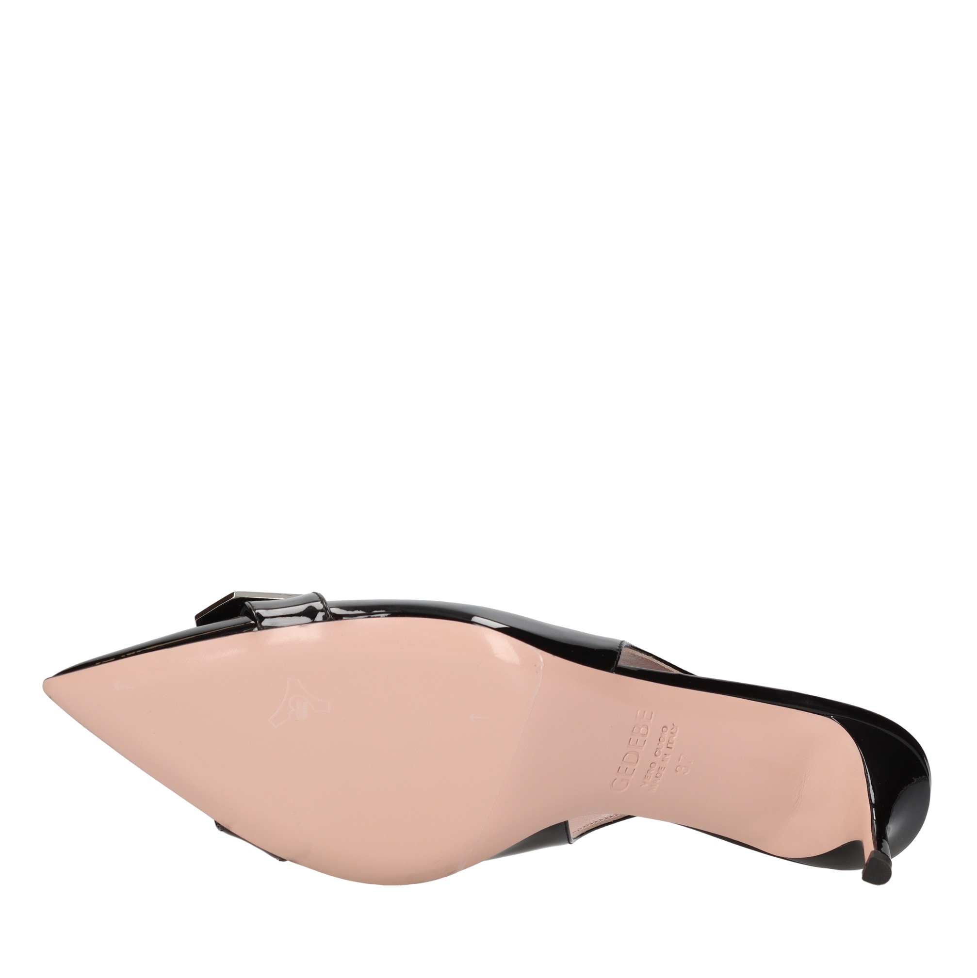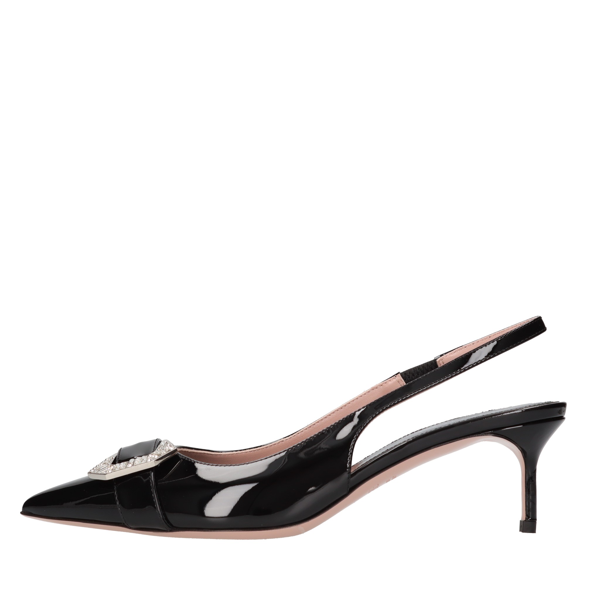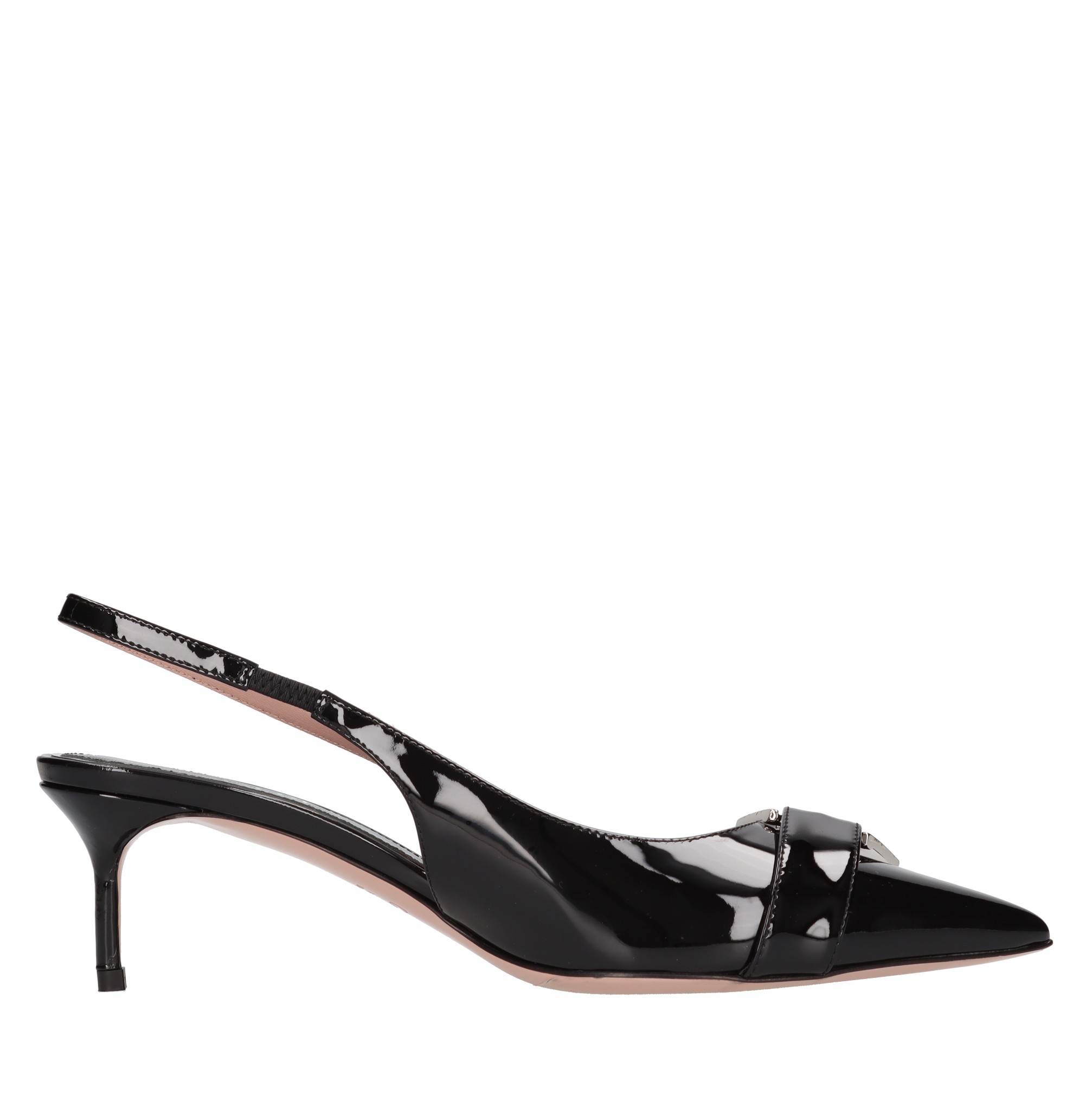 Décolleté Slingback in vernice. Suola esterna in cuoio. Tomaia interna in pelle.