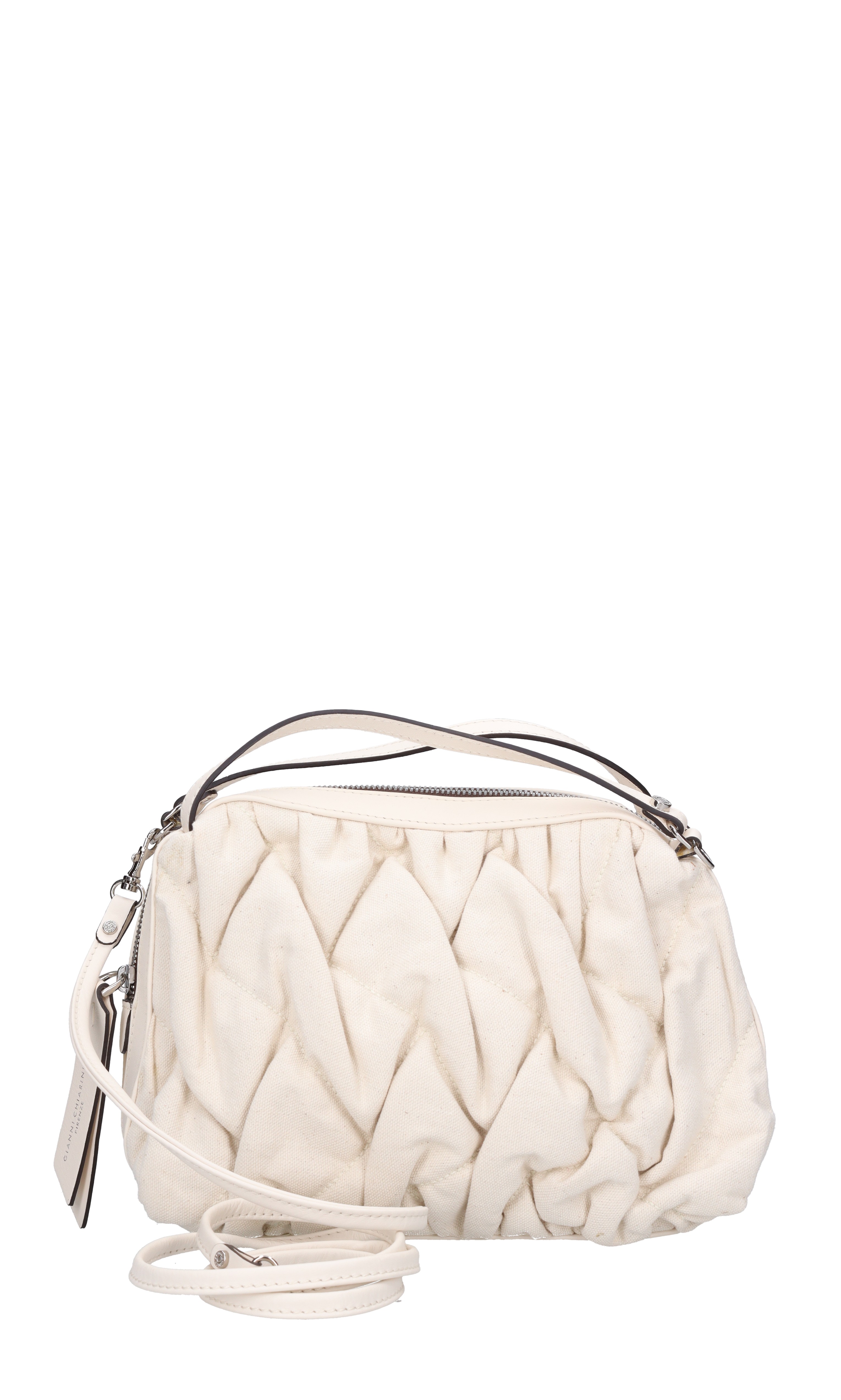 Borsa Alifa in tessuto e pelle. Chiusura con zip. Tracolla rimovibile. Spedito su bustina trasparente.