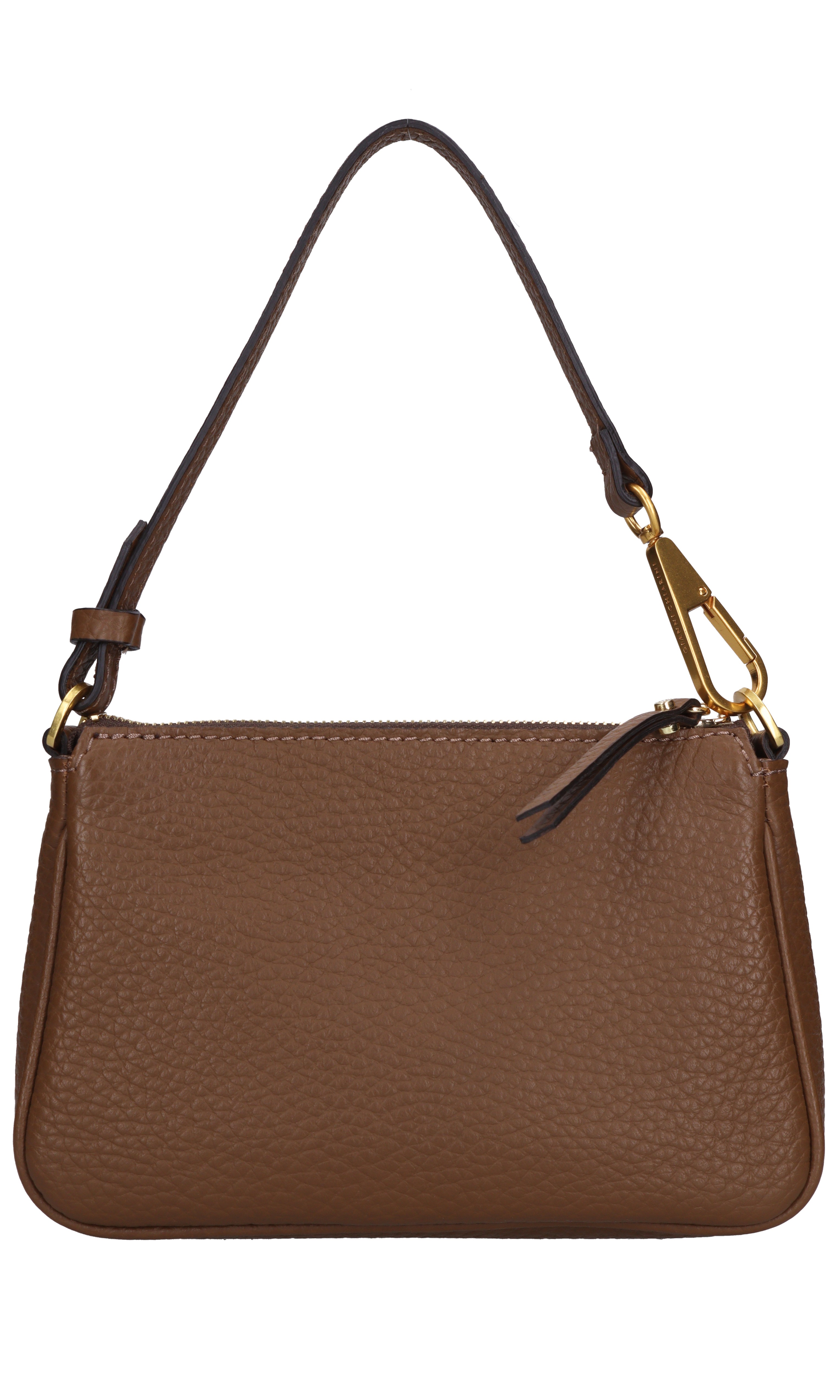 Borsa in pelle. Martellata. 1 Comparto. Chiusura con zip. Tracolla in pelle regolabile e rimovibile. Manico rimovibile. Spedito su bustina trasparente.