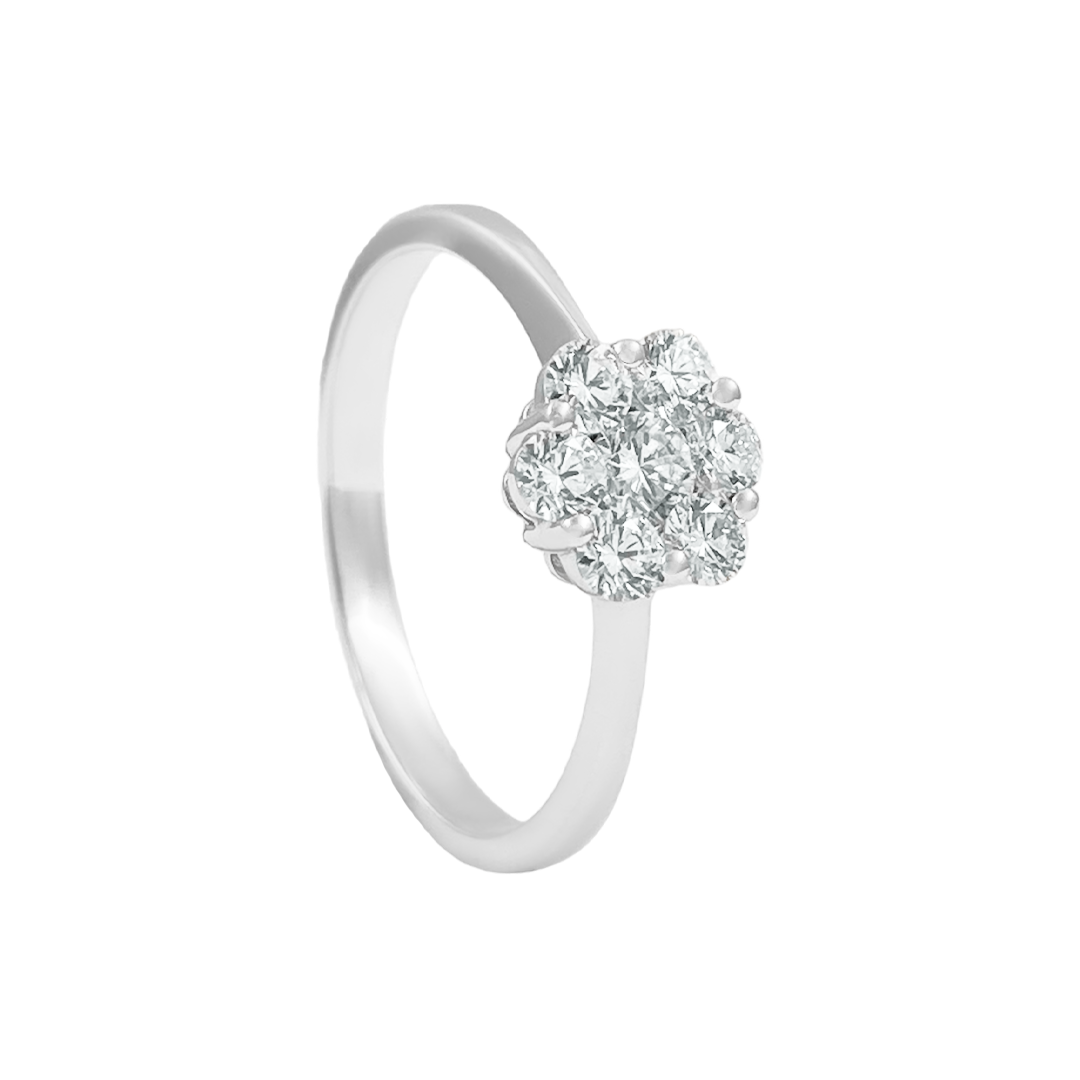 Anello in Oro Bianco 750% Modello Solitario Con Diamanti Taglio Brillante.