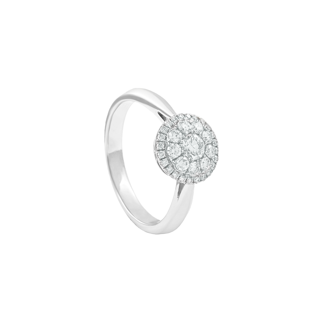 Anello in Oro Bianco 750% Modello Solitario Con Diamanti Taglio Brillante.