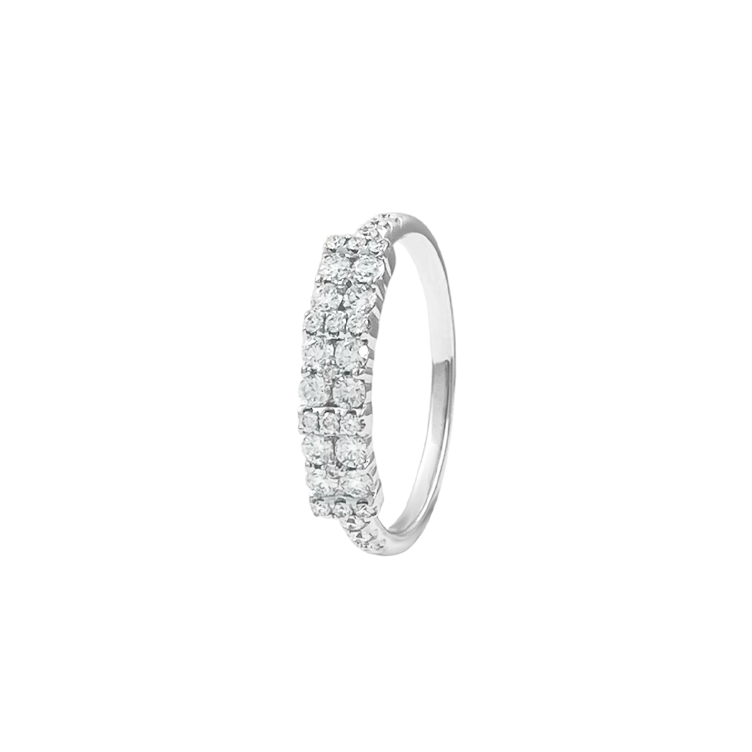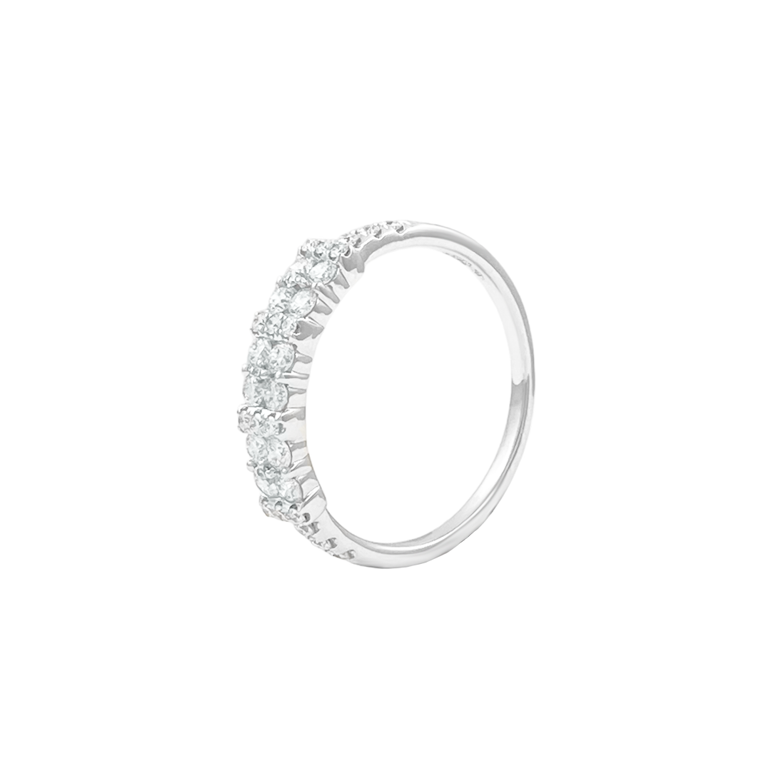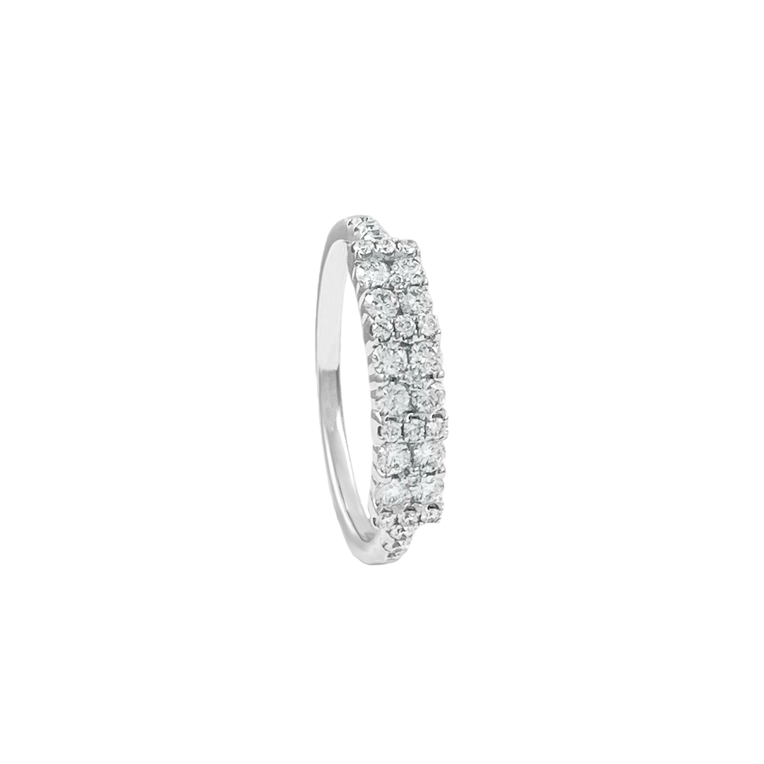 Anello in Oro Bianco 750% Modello Con Fascia Centrale Con Diamanti Taglio Brillante E Gambo IncastonatoCon Diamanti Taglio Brillante.