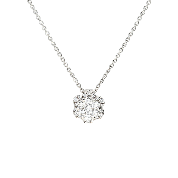 Collana in Oro Bianco 750%, Modello Punto Luce Con Diamanti Taglio Brillante.