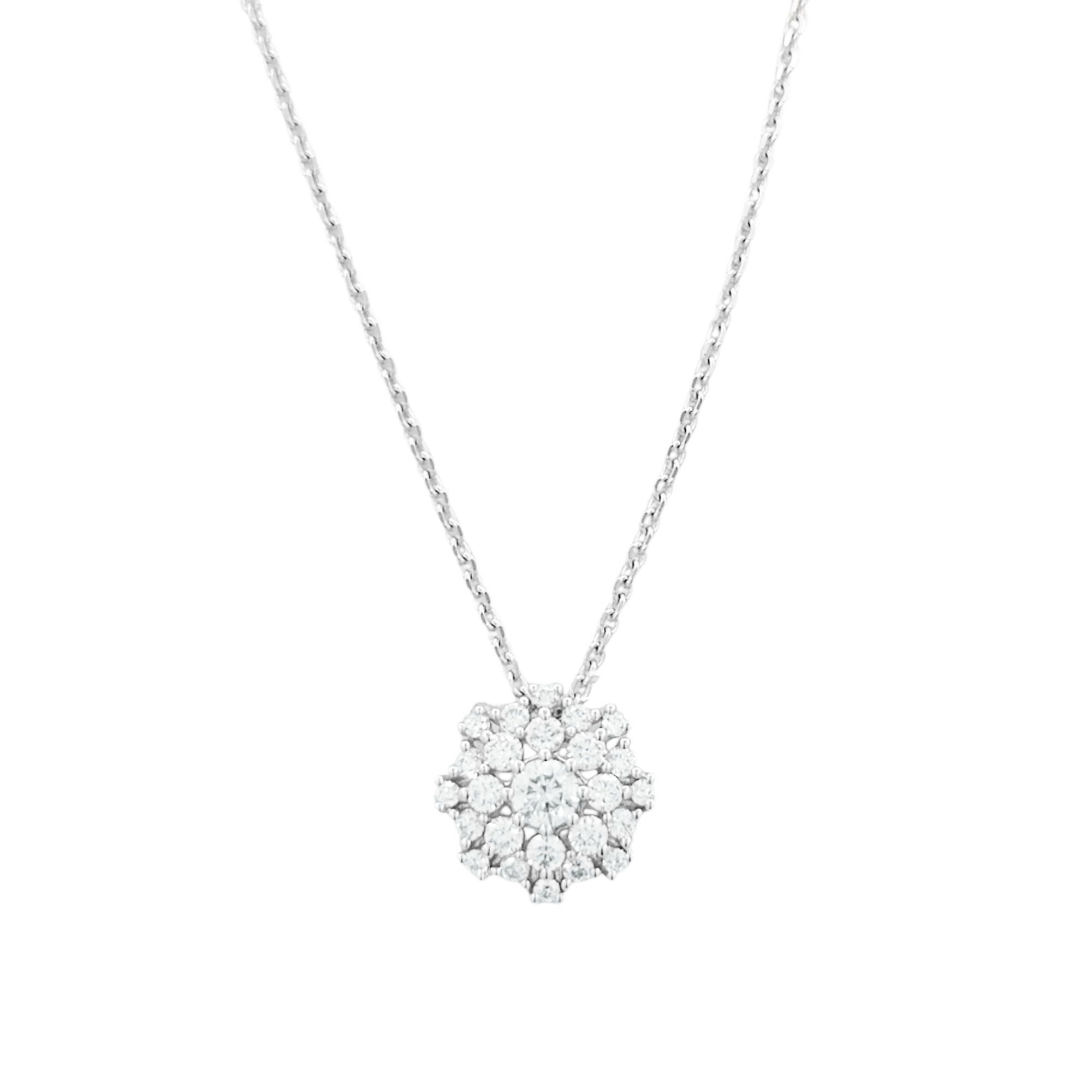 Collana in Oro Bianco 750%, Modello Punto Luce Con Diamanti Taglio Brillante.