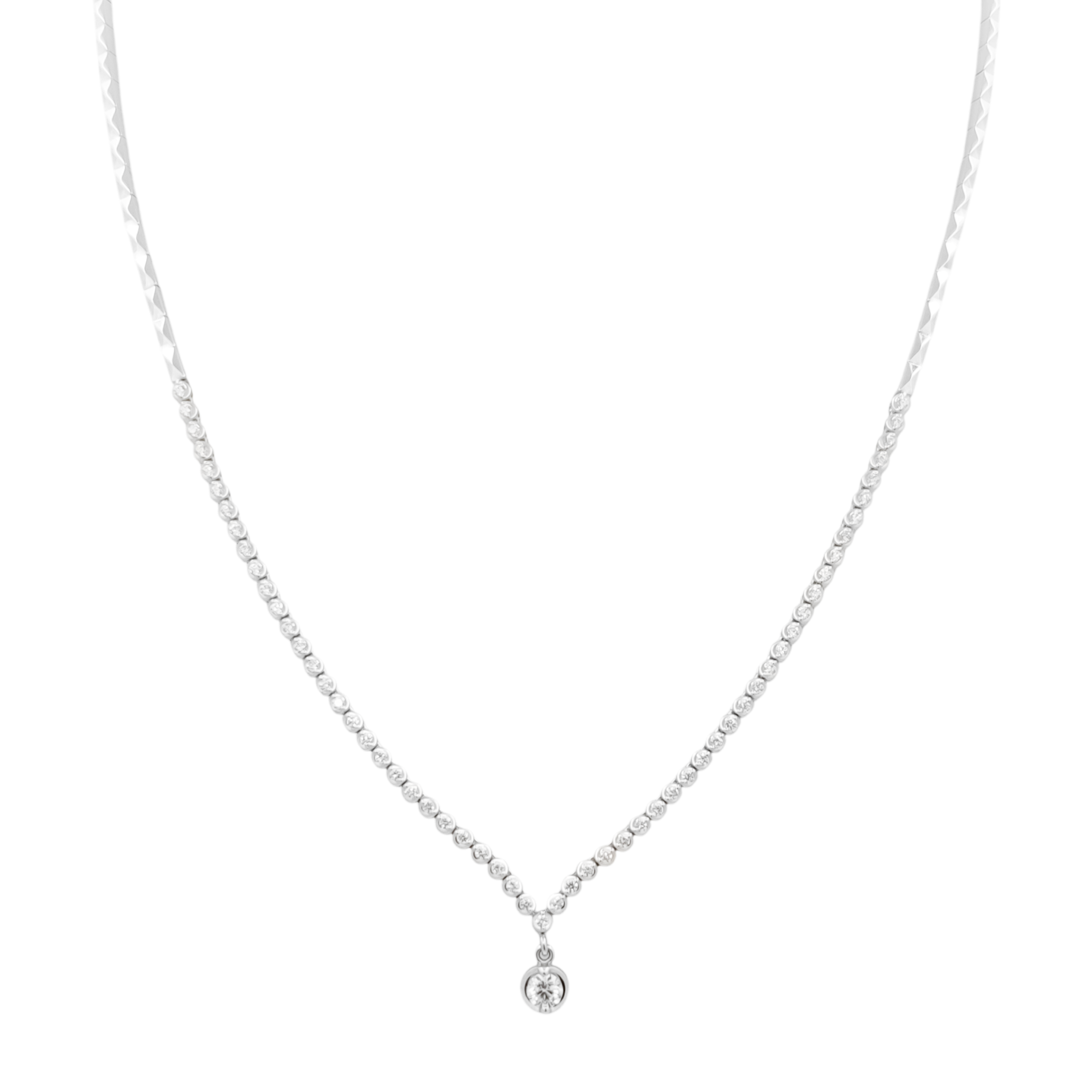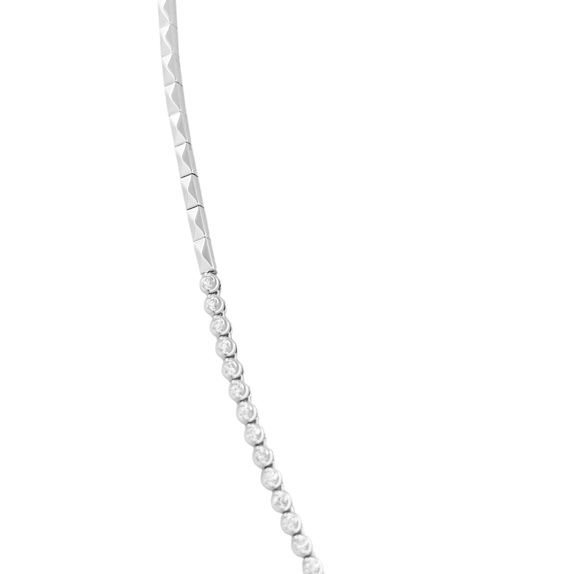 Collana in Oro Bianco 750%, Modello Semirigido Con Diamanti Taglio Brillante.