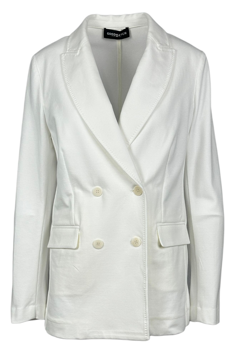 Giacca di Goodmatch in piquet stretch. Modello doppiopetto. Tasche con patta. Spacco sul retro. Sfoderata. Vestibilità morbida. Composizione: 96% cotone, 4% elastane. Made in Italy.