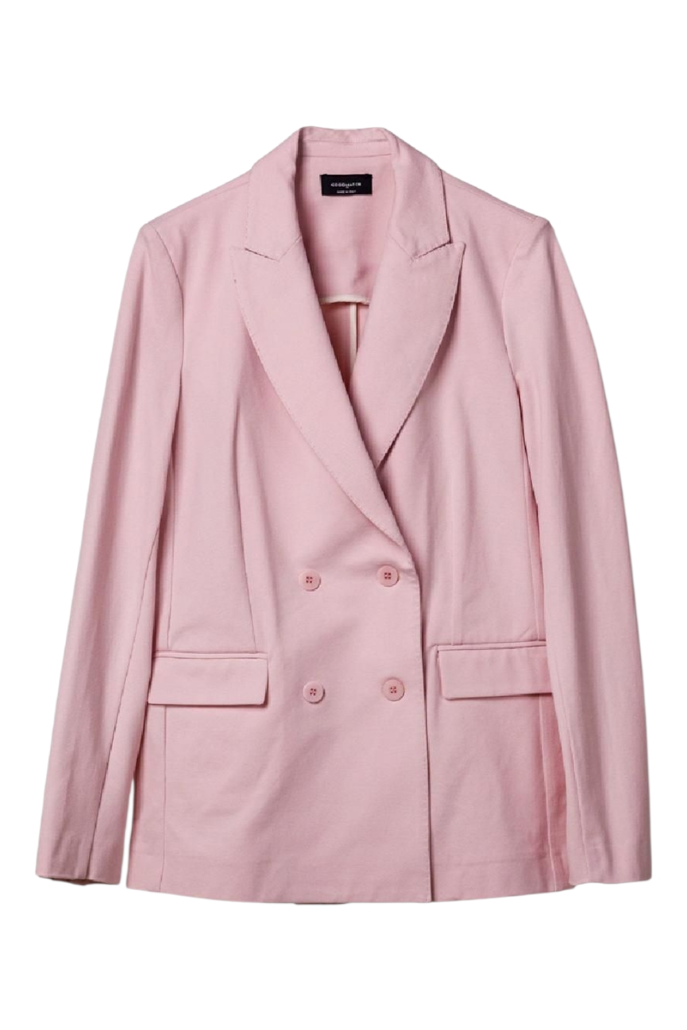 Giacca di Goodmatch in piquet stretch. Modello doppiopetto. Tasche con patta. Spacco sul retro. Sfoderata. Vestibilità morbida. Composizione: 96% cotone, 4% elastane. Made in Italy.