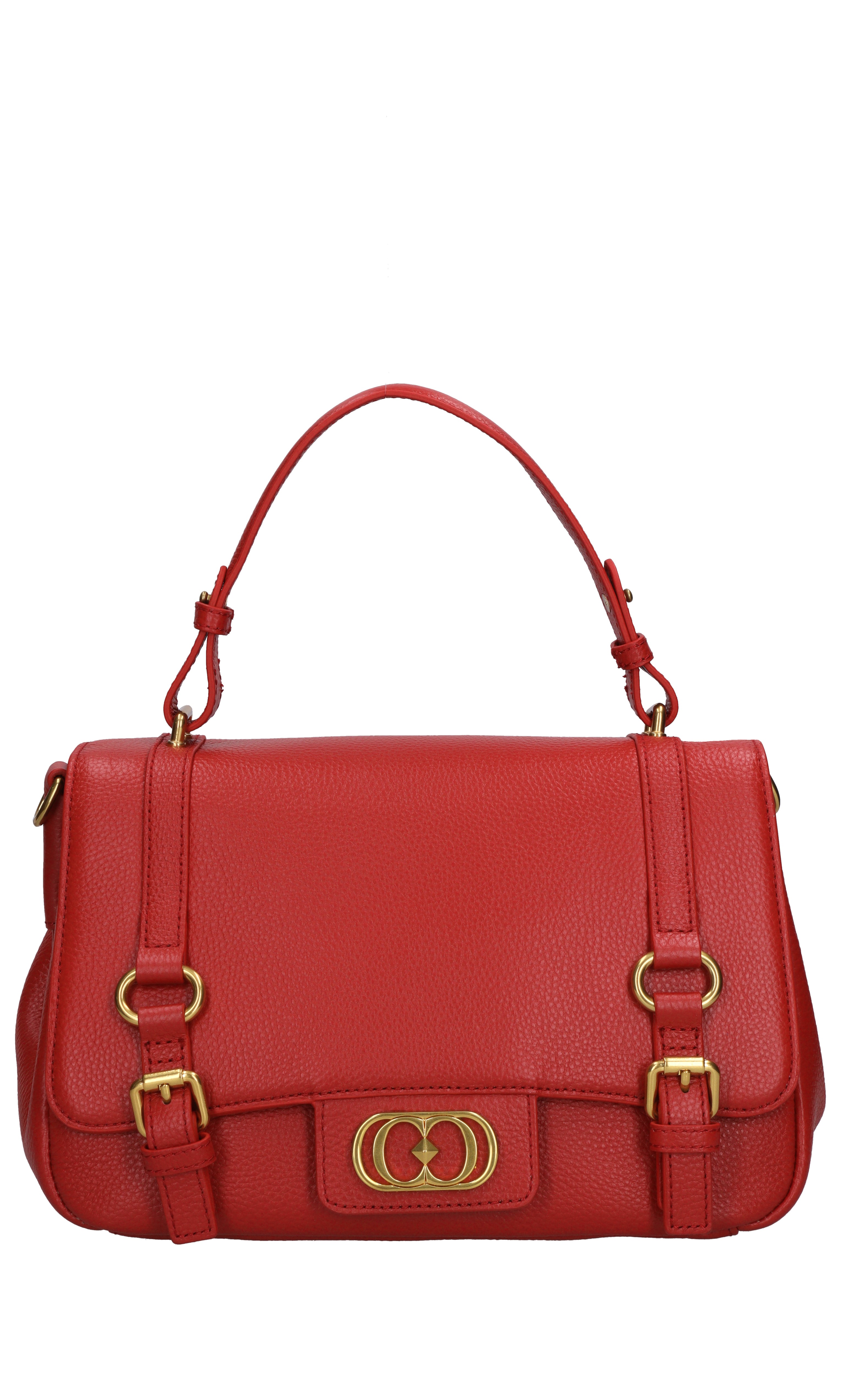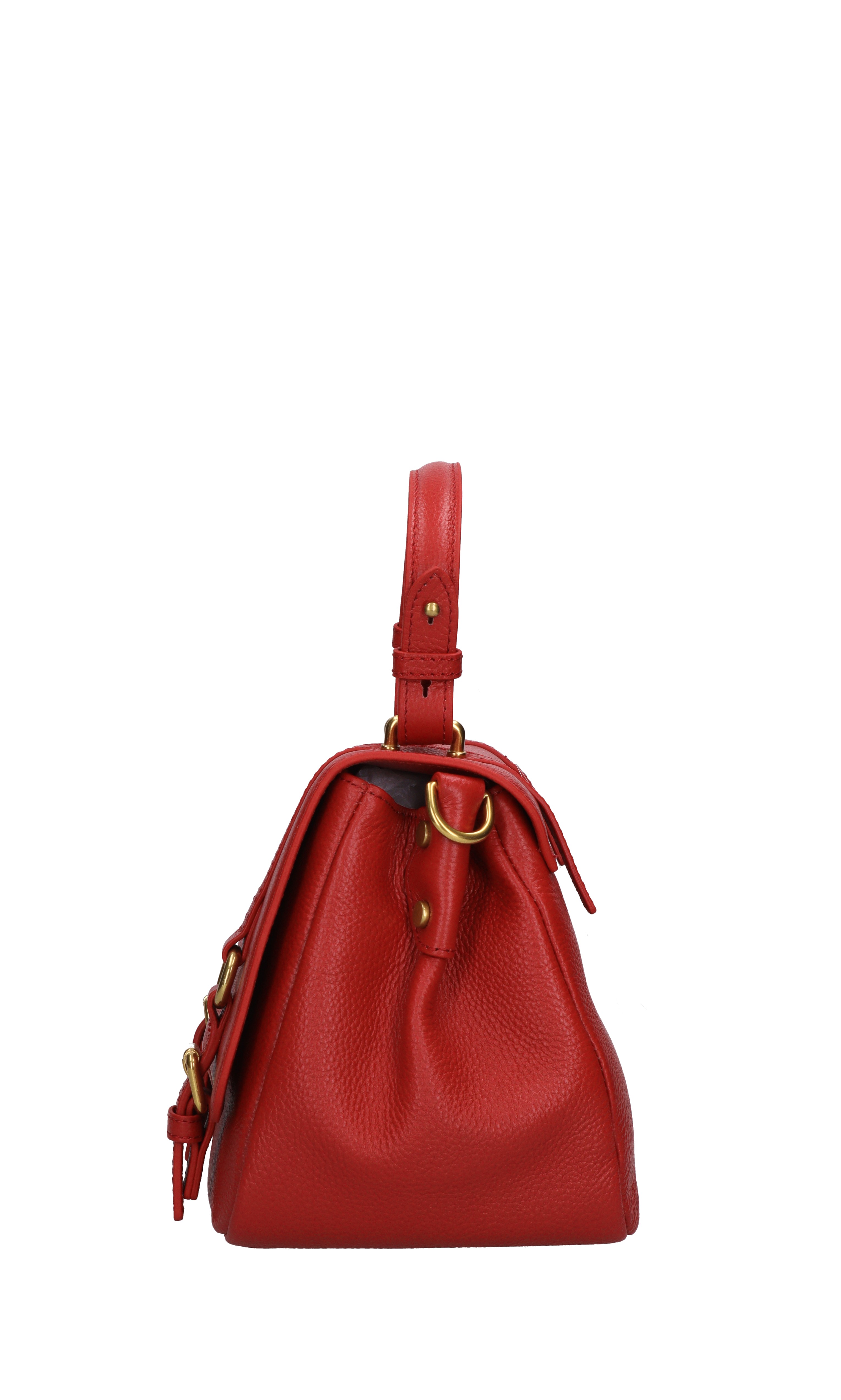 Borsa Atena in pelle. 2 comparti. Chiusura con patta con bottone a scatto. Tracolla in pelle removibile.