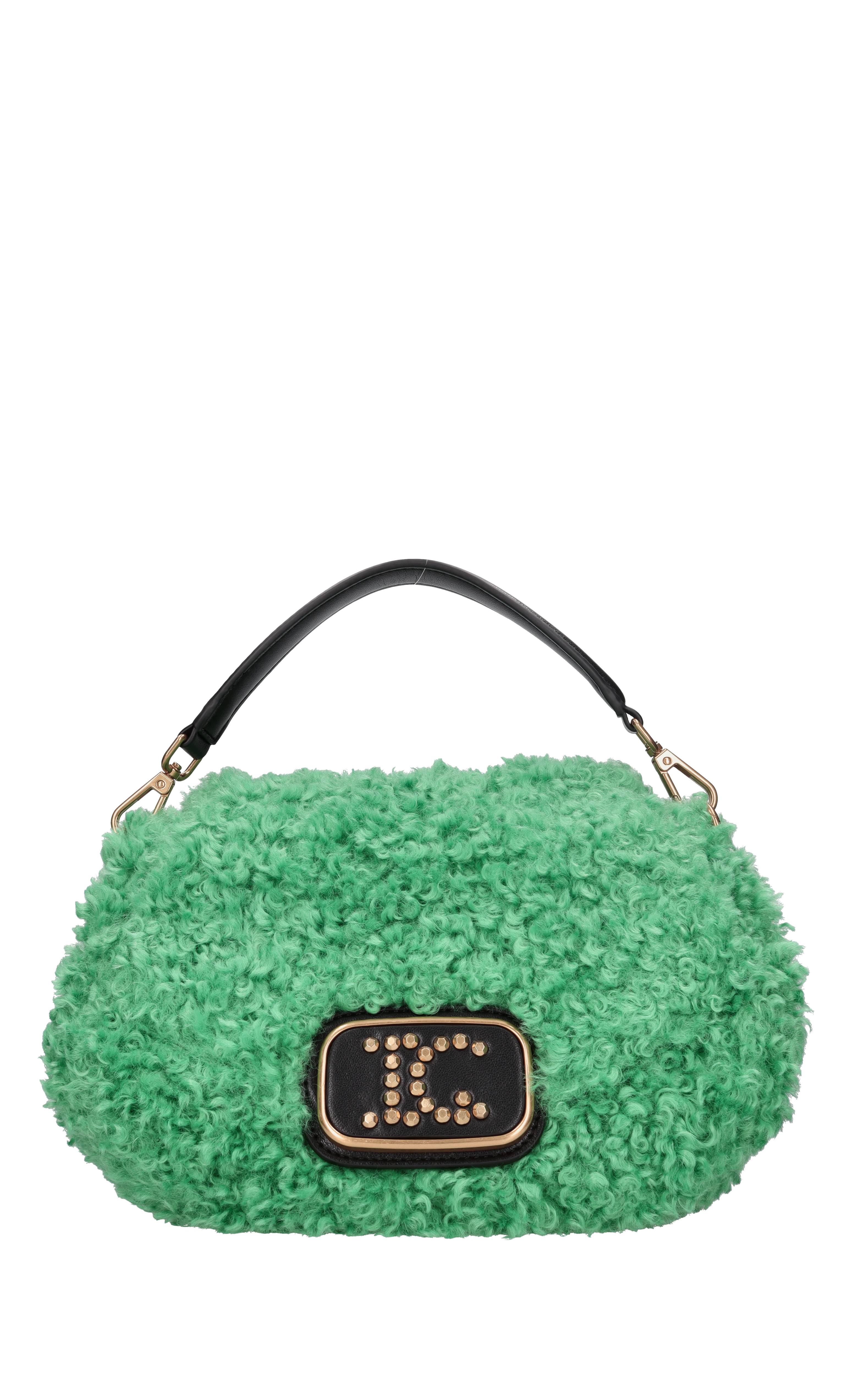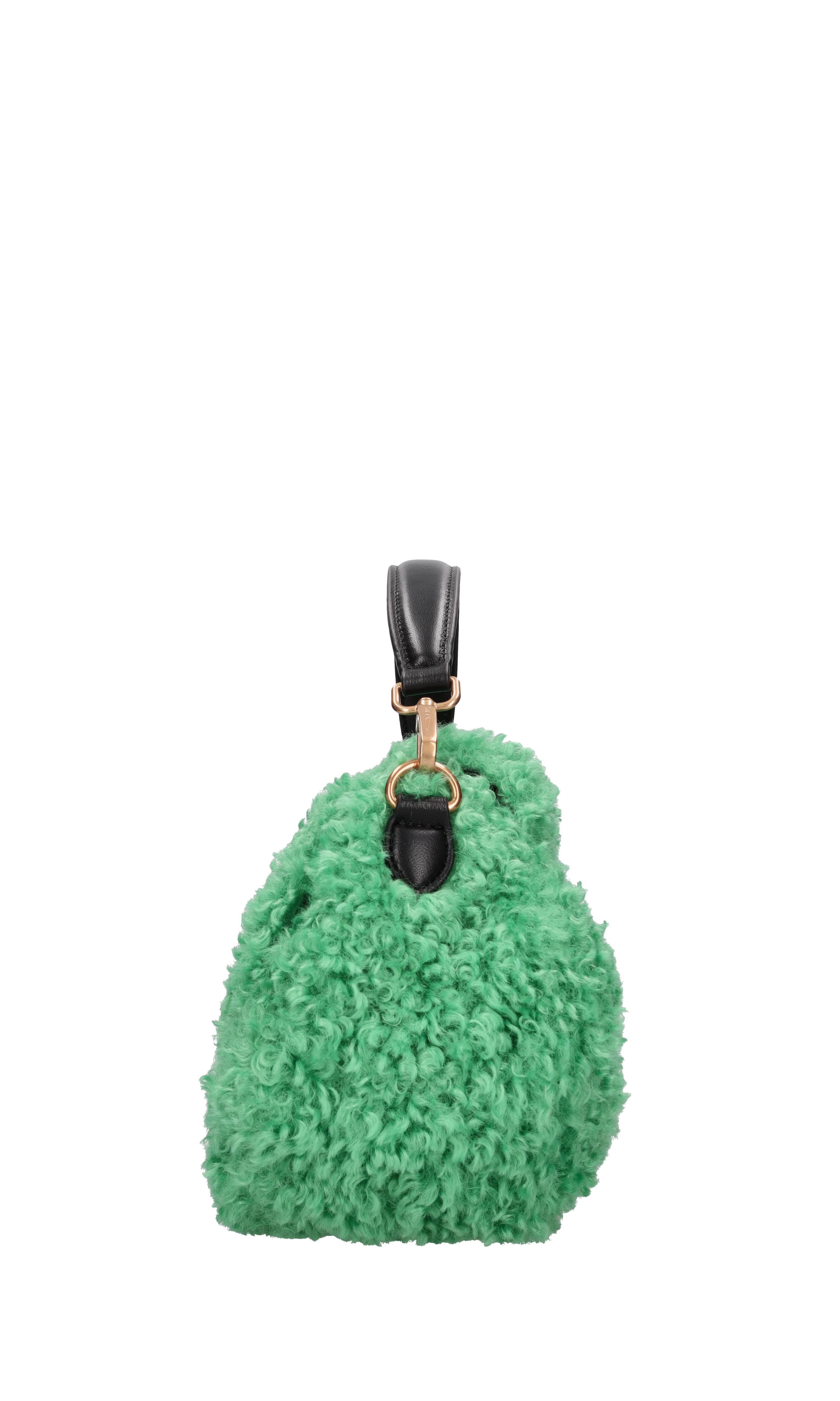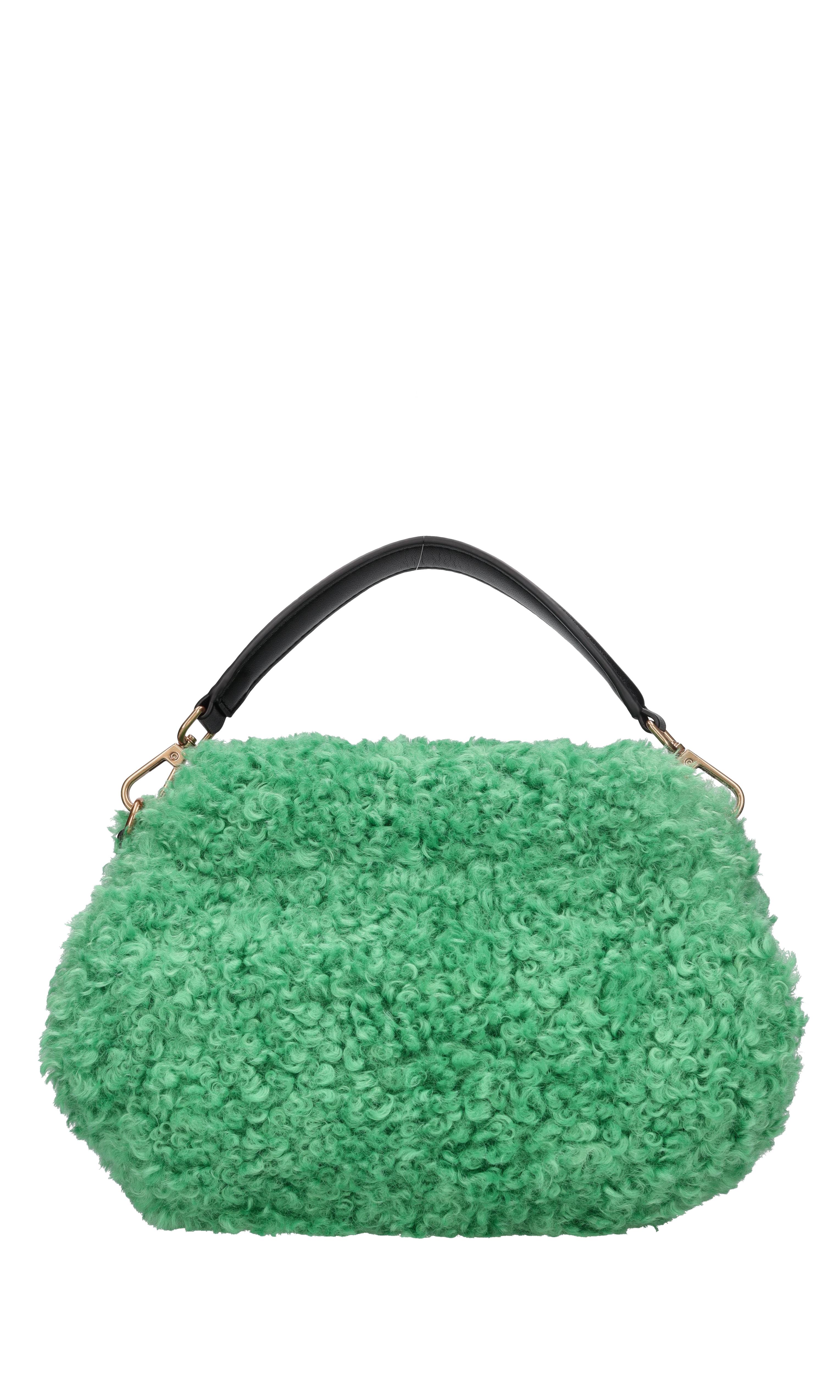 Borsa in ecopelliccia. 1 comparto. Chiusura con patta e bottone magnetico. Tracolla e manico rimovibile.