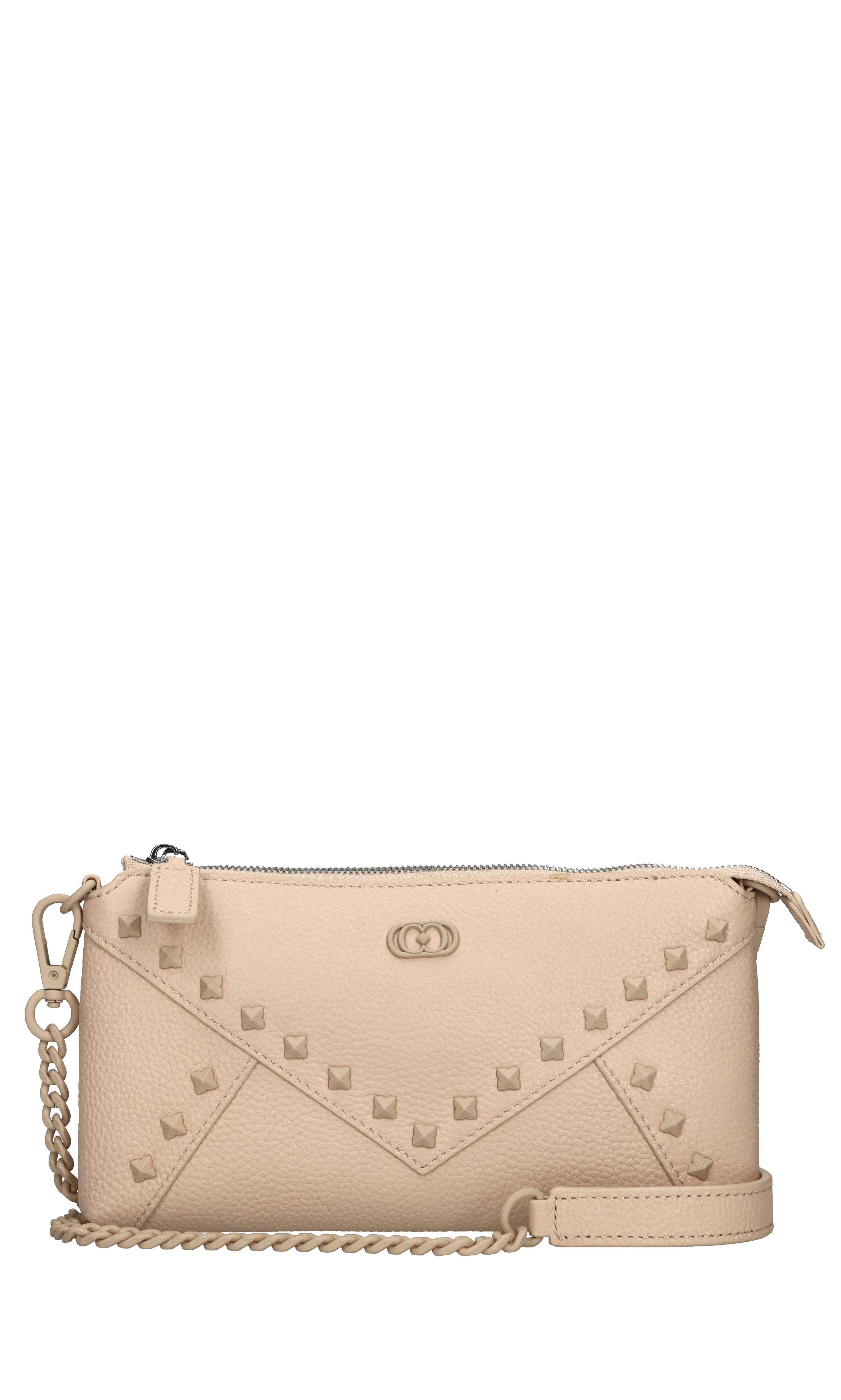 Borsa Frivolous M. in pelle. Un comparto. Chiusura con zip. Borchie applicate tono su tono. Tracolla chain tono su tono e pelle removibile.