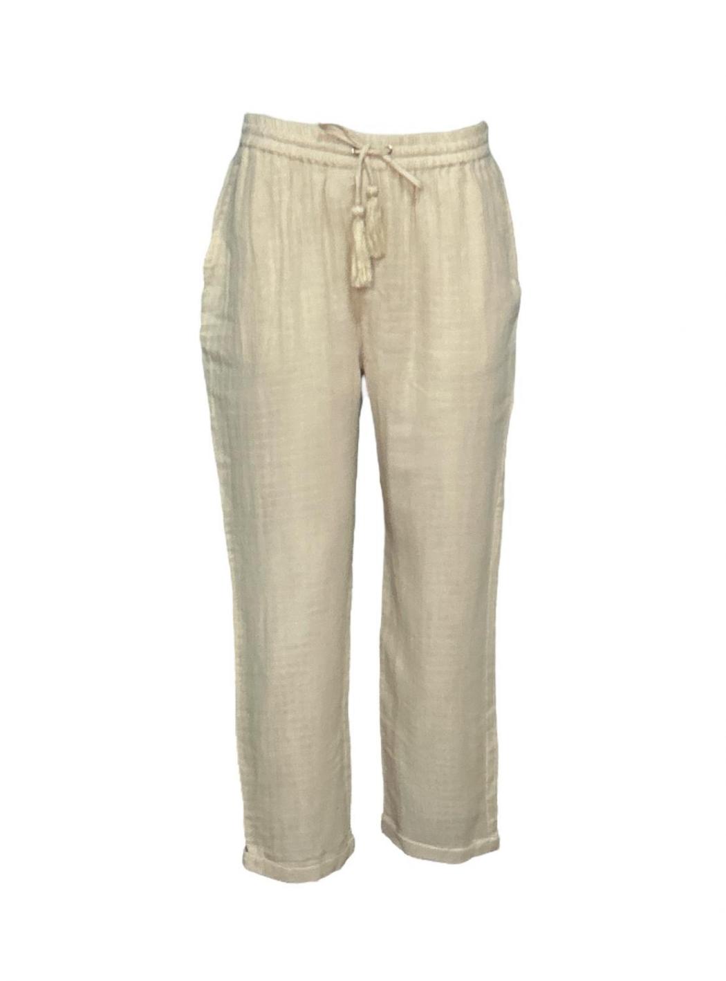 Pantalone in cotone beige,con coulisse e tasche laterali