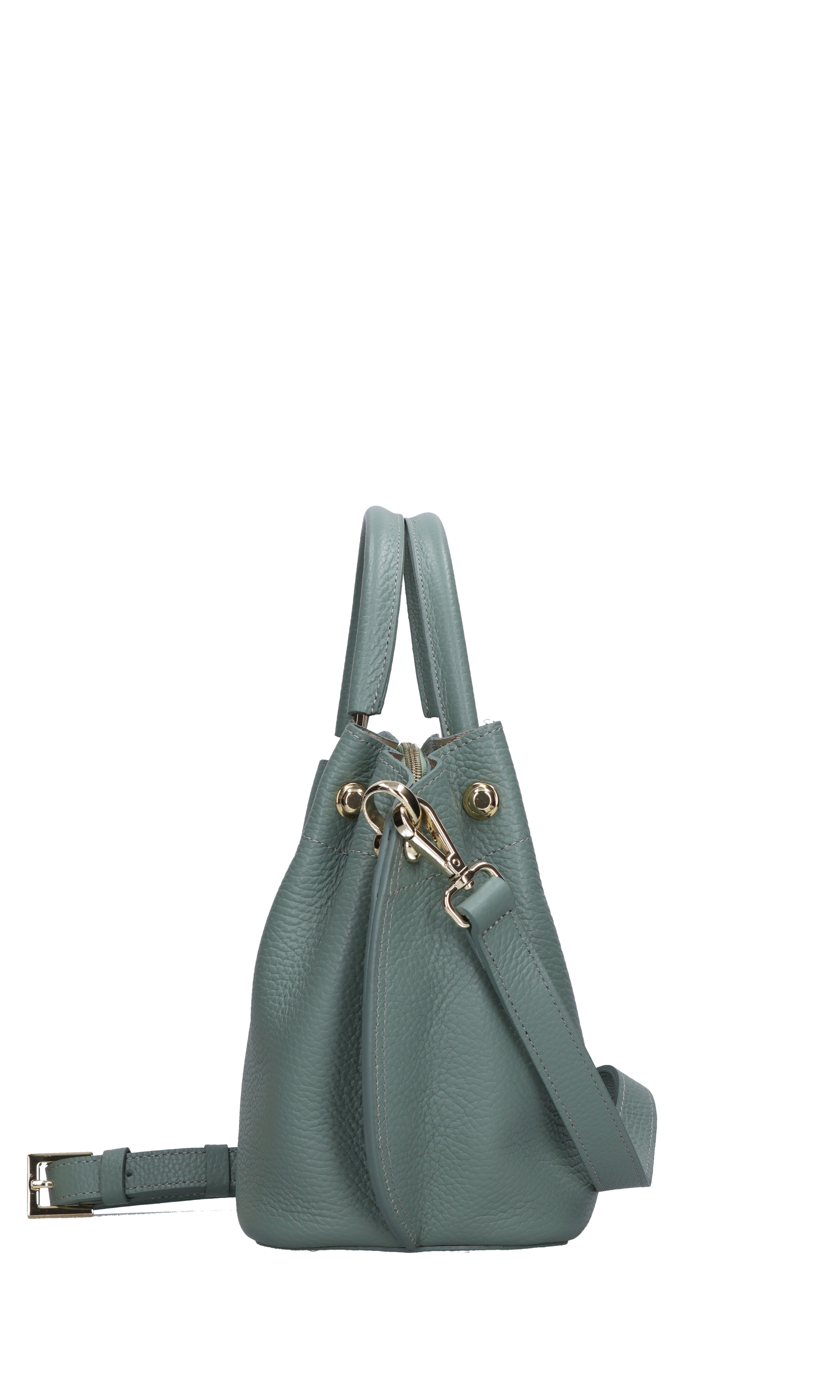 Borsa in pelle. Martellata. 3 Comparti: 1 Chiusura con zip. Tracolla regolabile e rimovibile. Imperfezioni sulla metalleria.