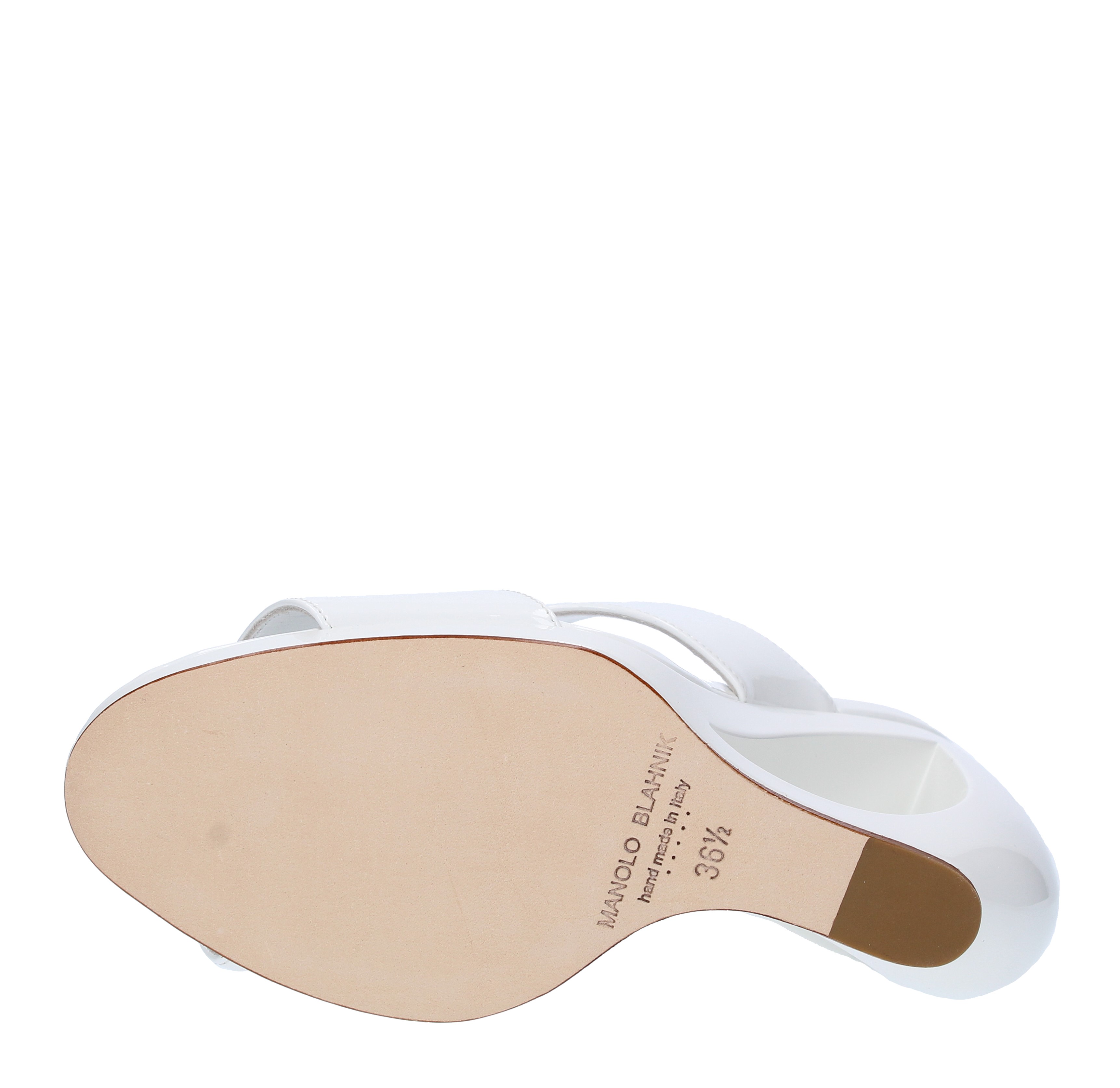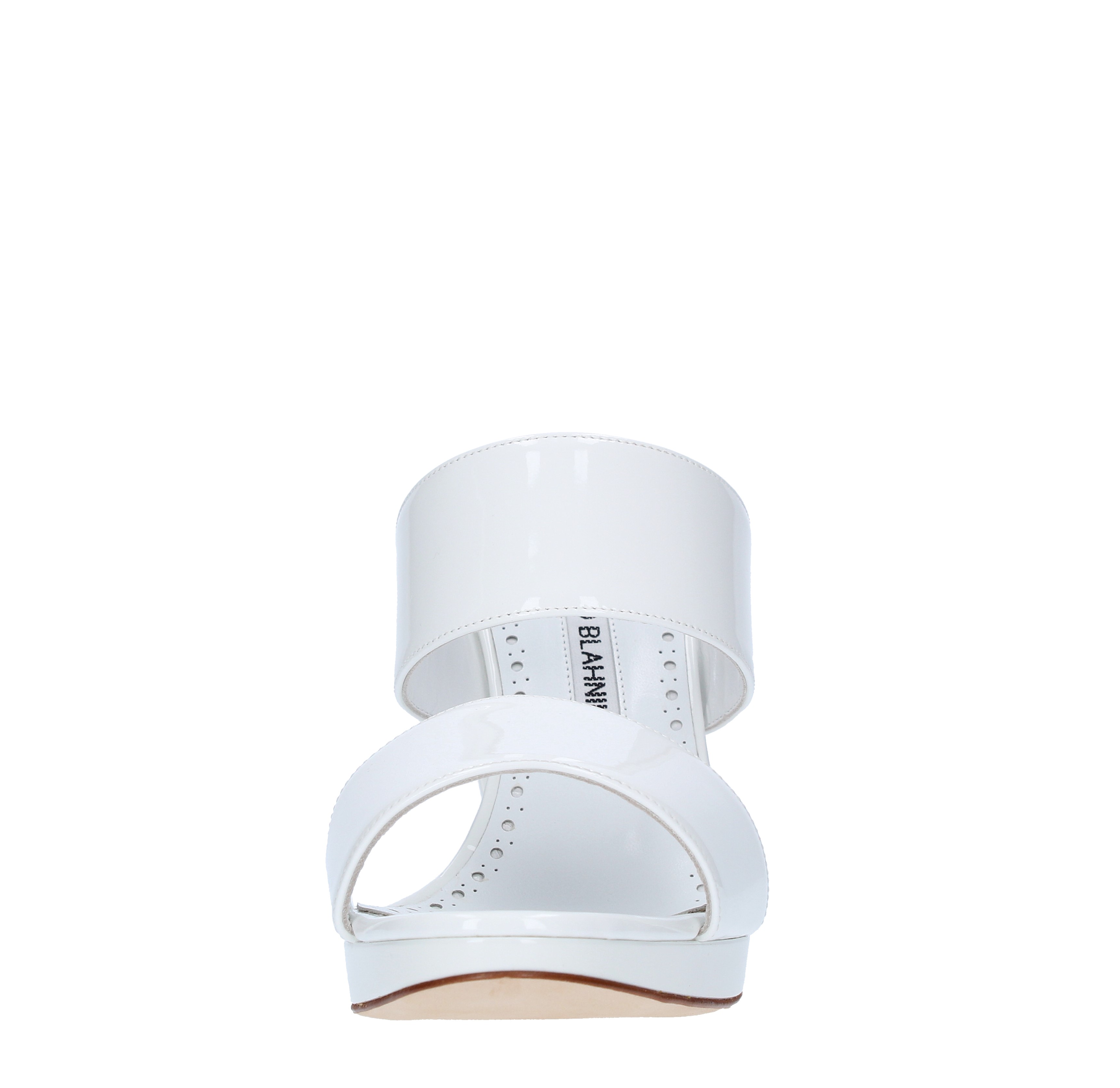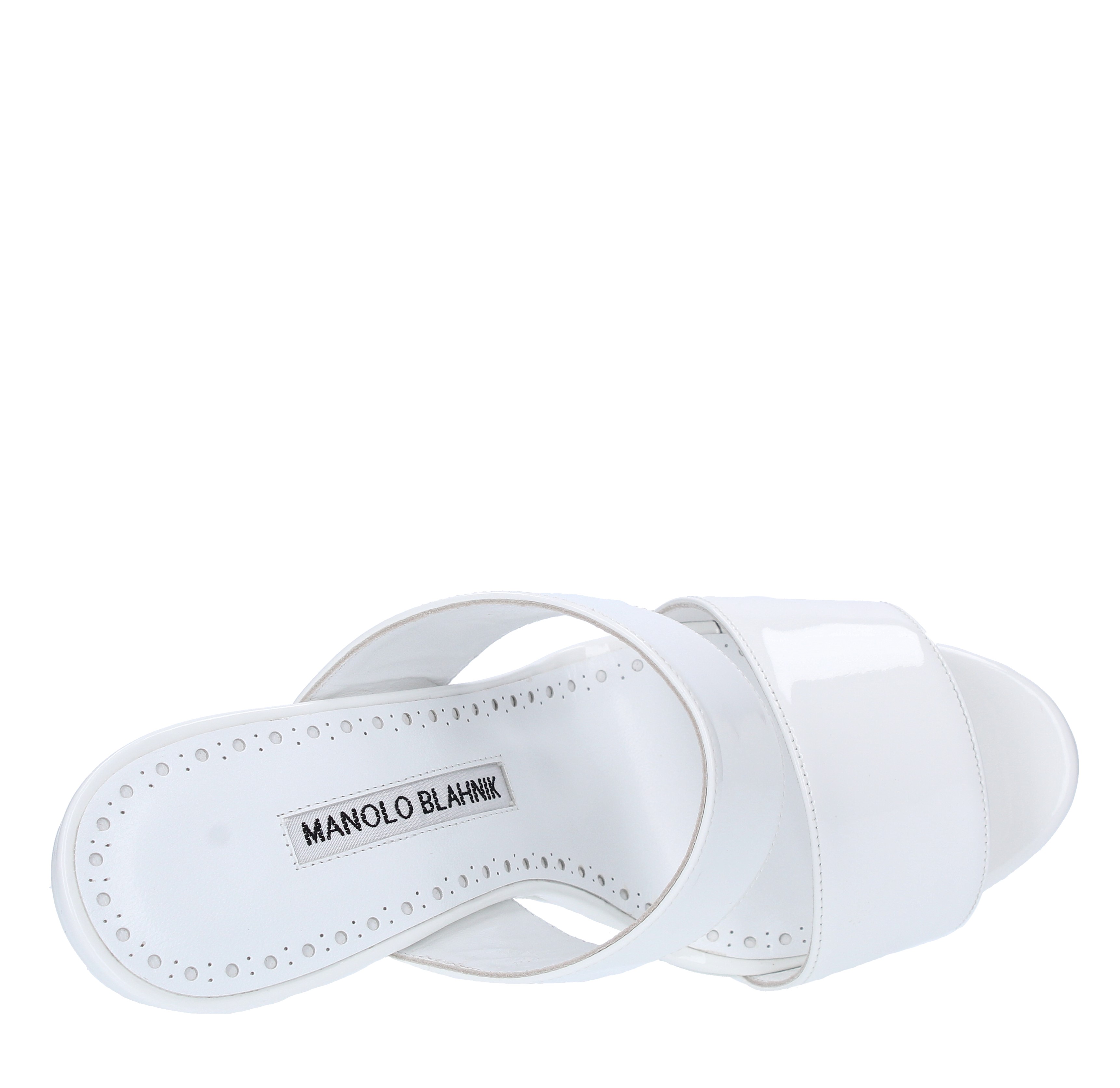 Mules WELLI MANOLO BLAHNIK in vernice. Plateau 2 cm. Suola esterna in cuoio. Tomaia interna in pelle.