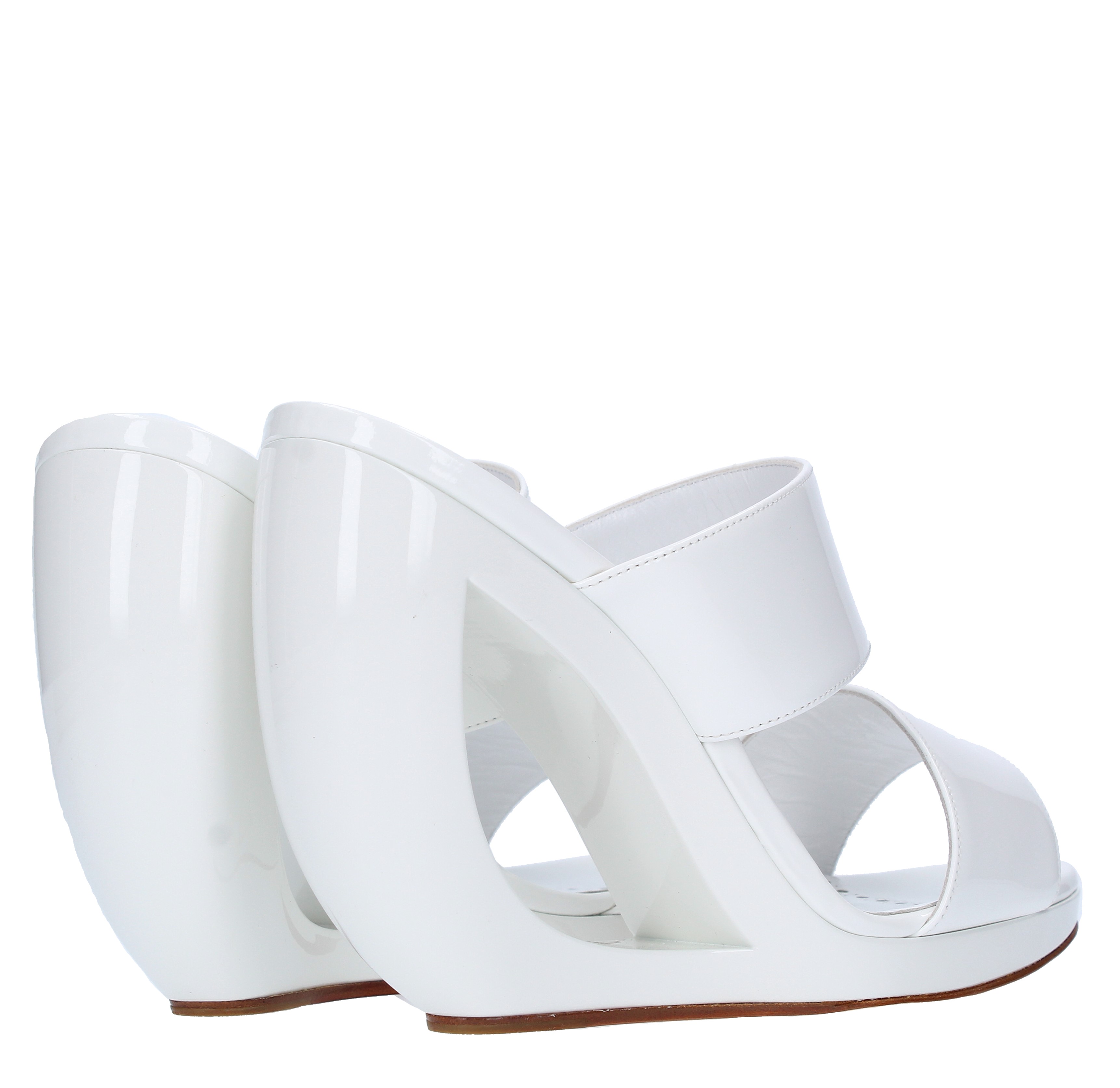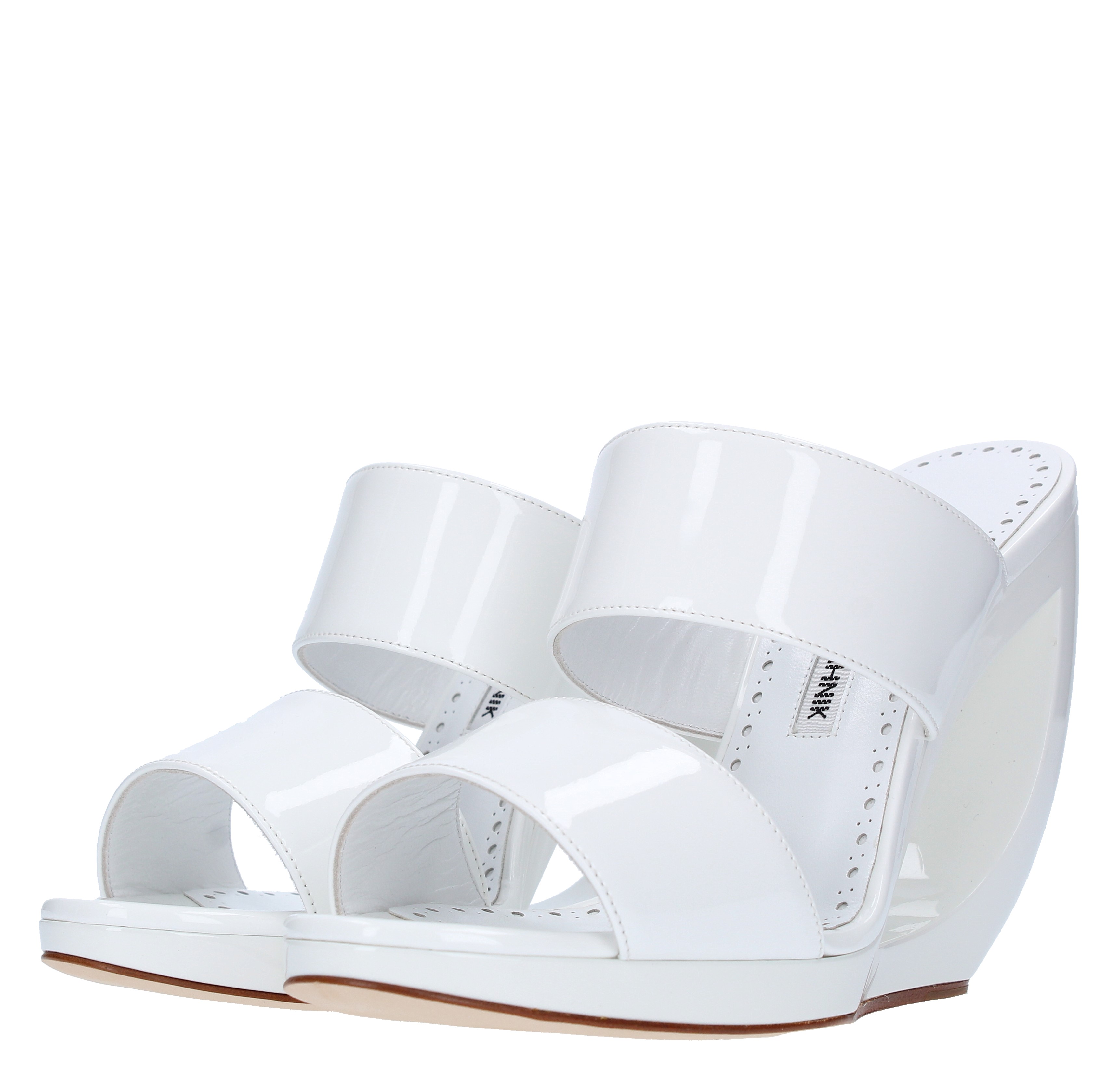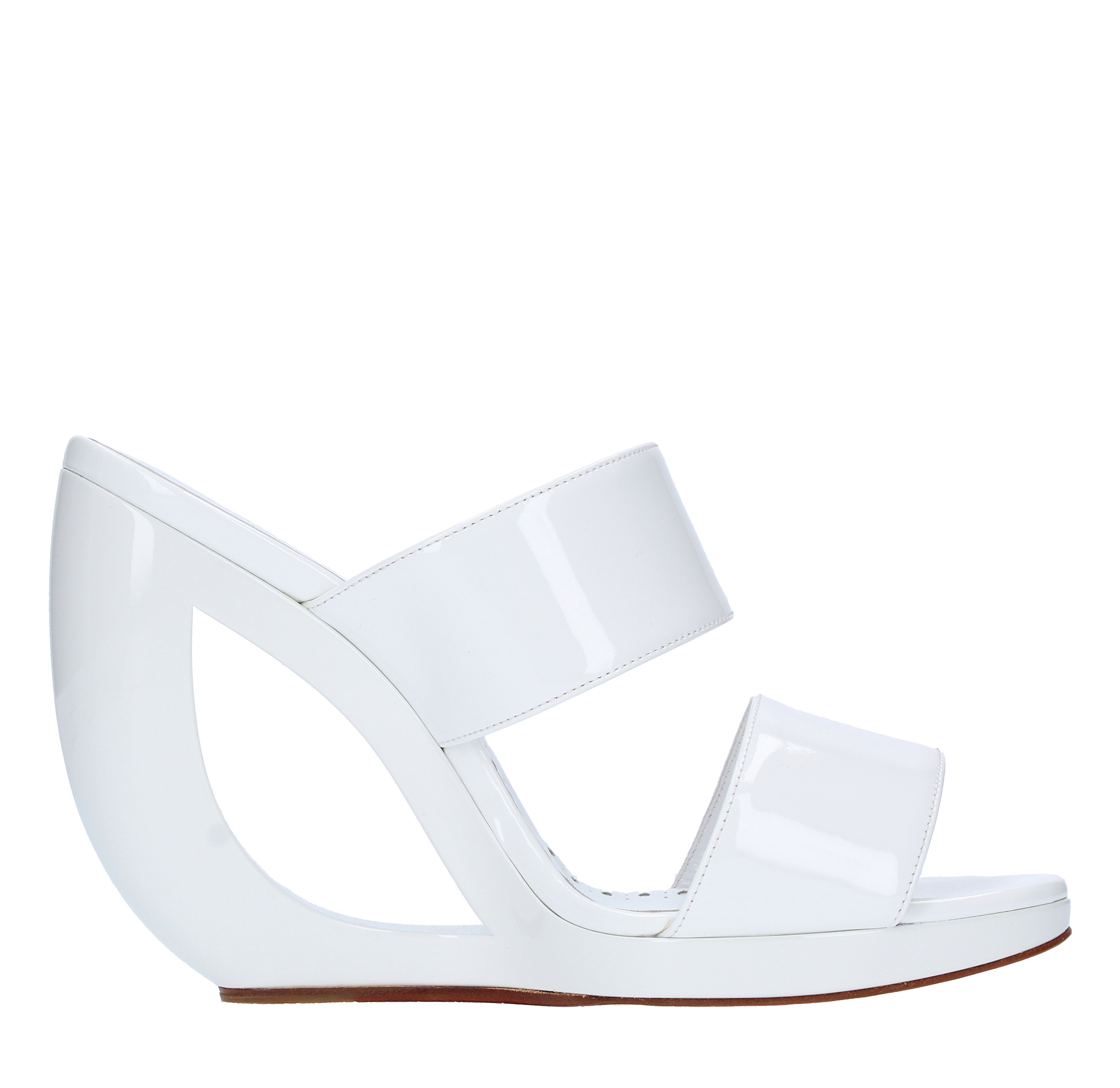 Mules WELLI MANOLO BLAHNIK in vernice. Plateau 2 cm. Suola esterna in cuoio. Tomaia interna in pelle.