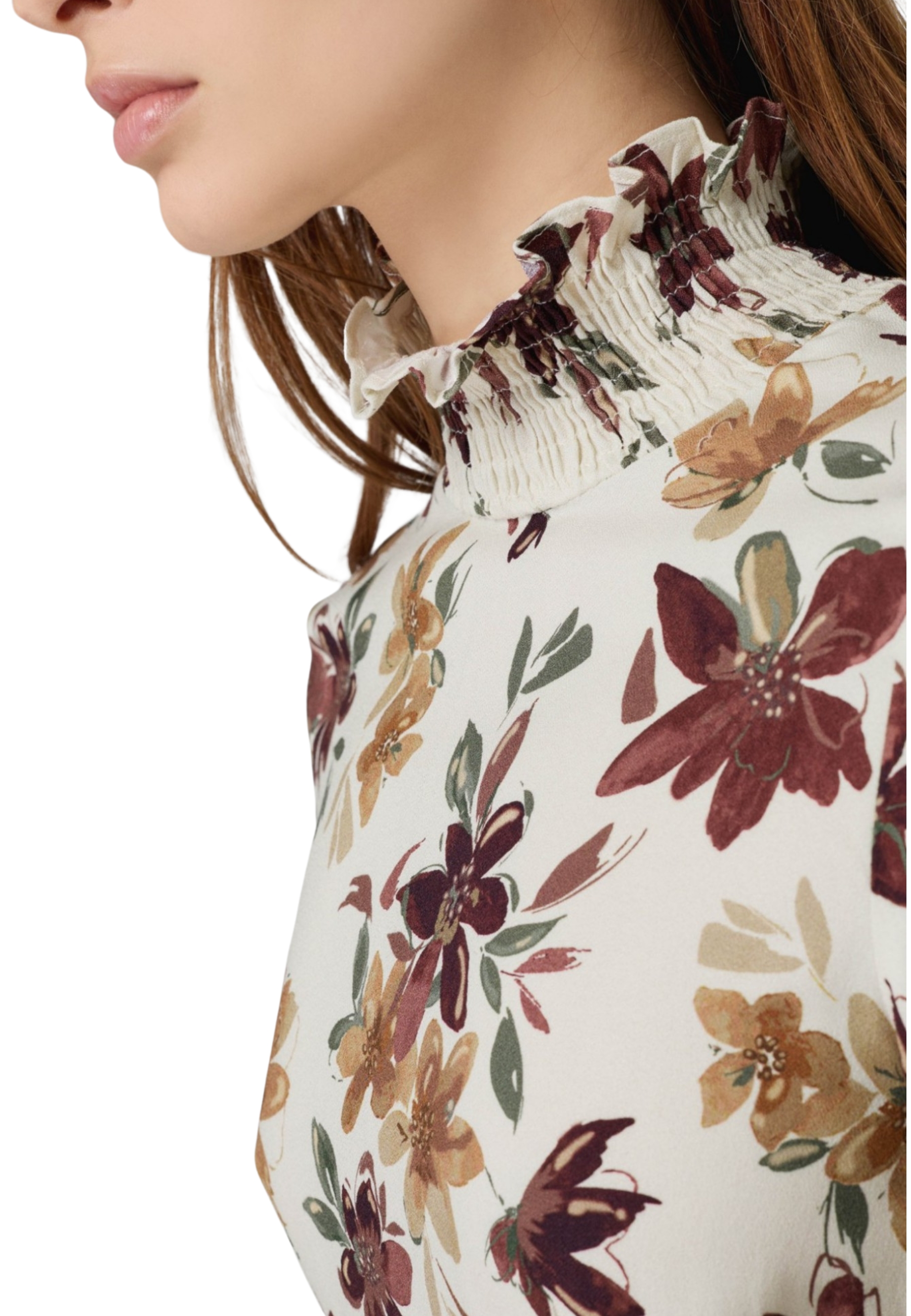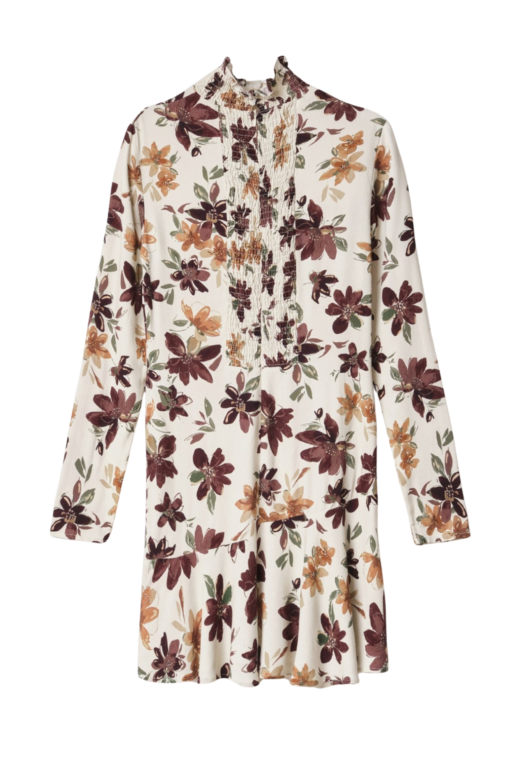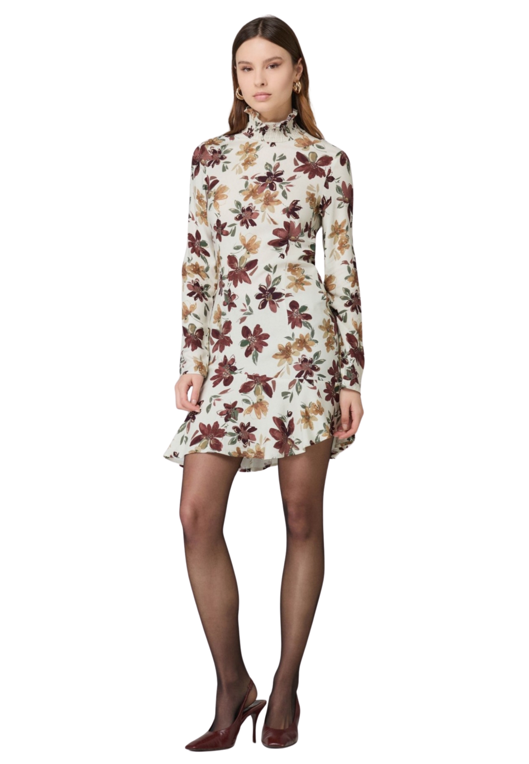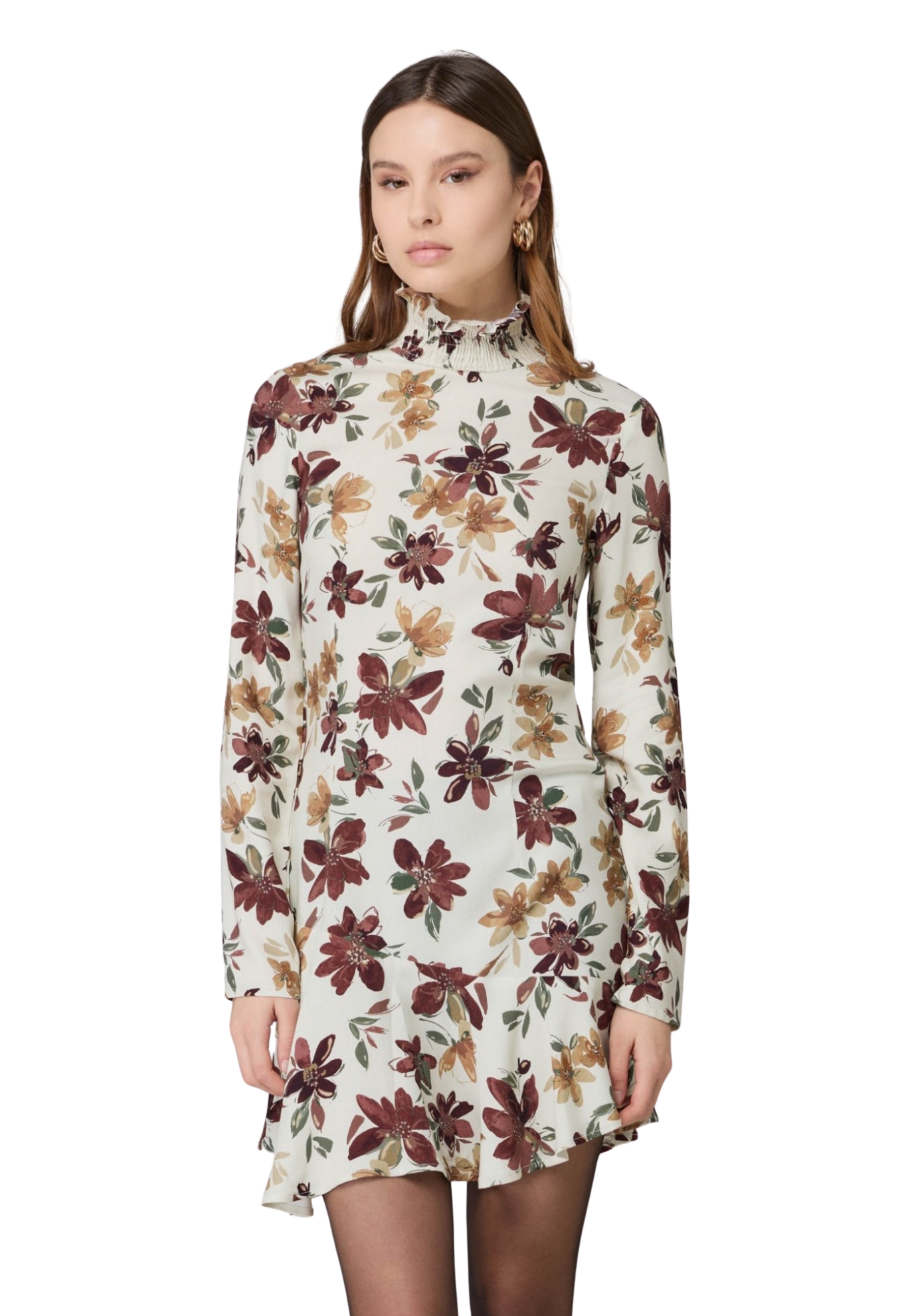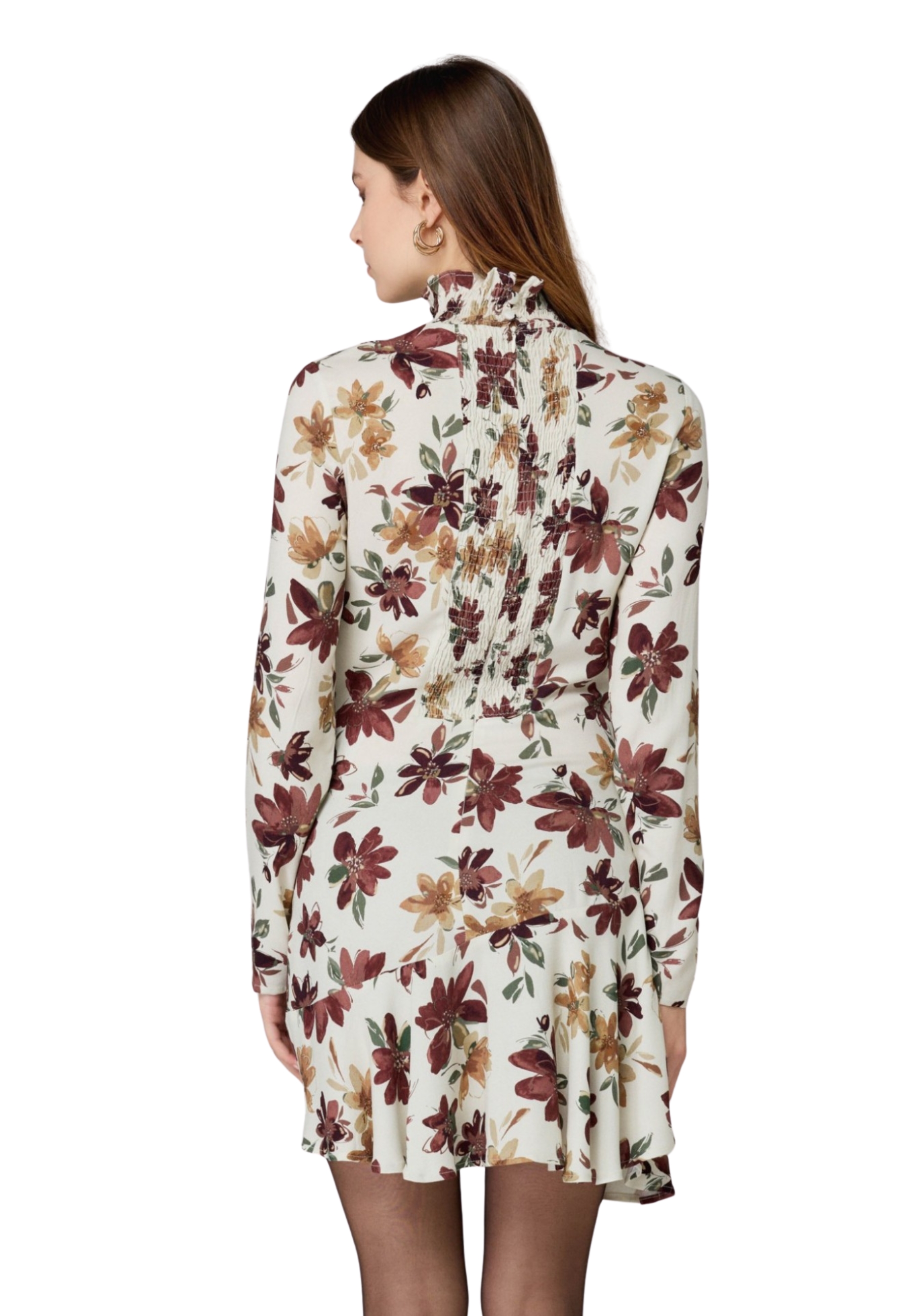 Vestito corto fondo bianco fiorato marrone.