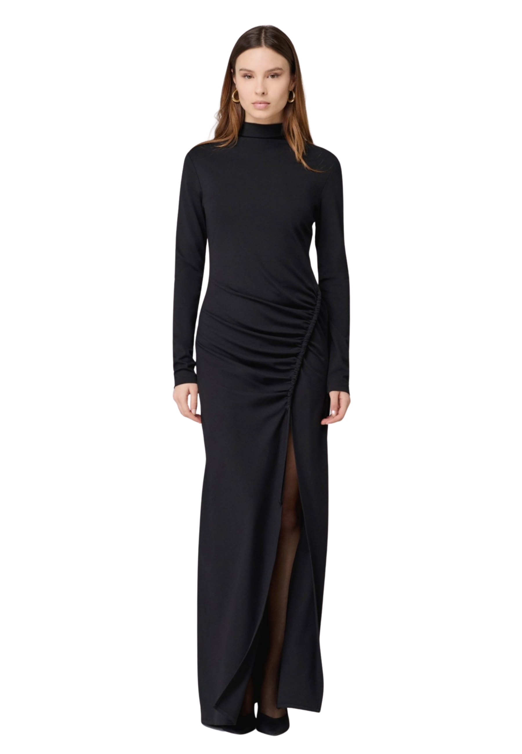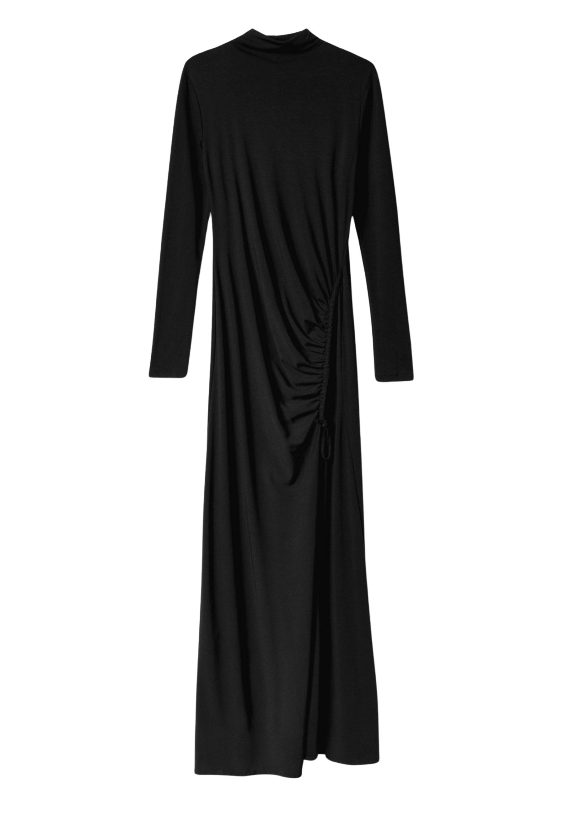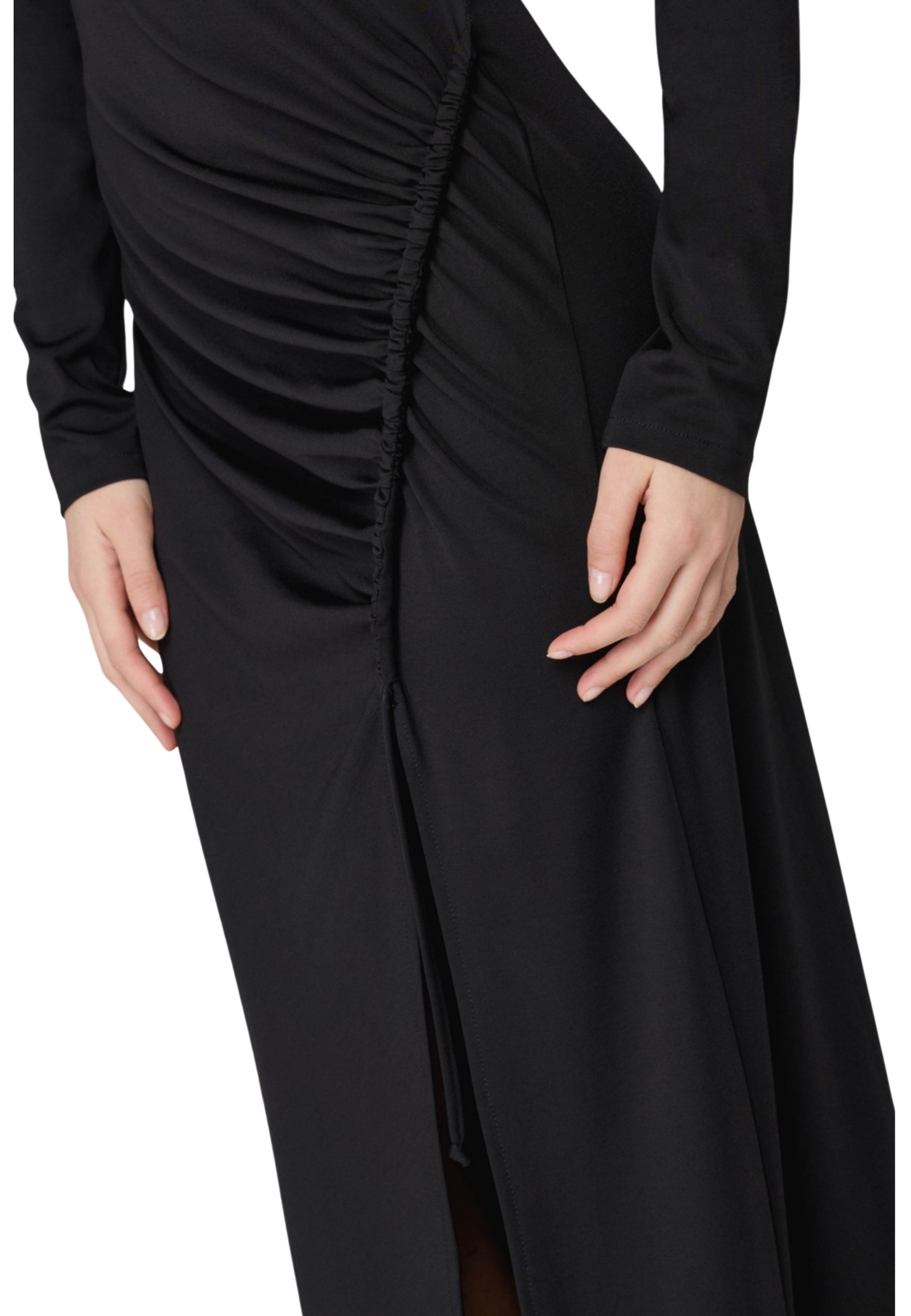 ABITO NERO LUNGO MANICA LUNGA CON DRAPEGGIO LATERALE