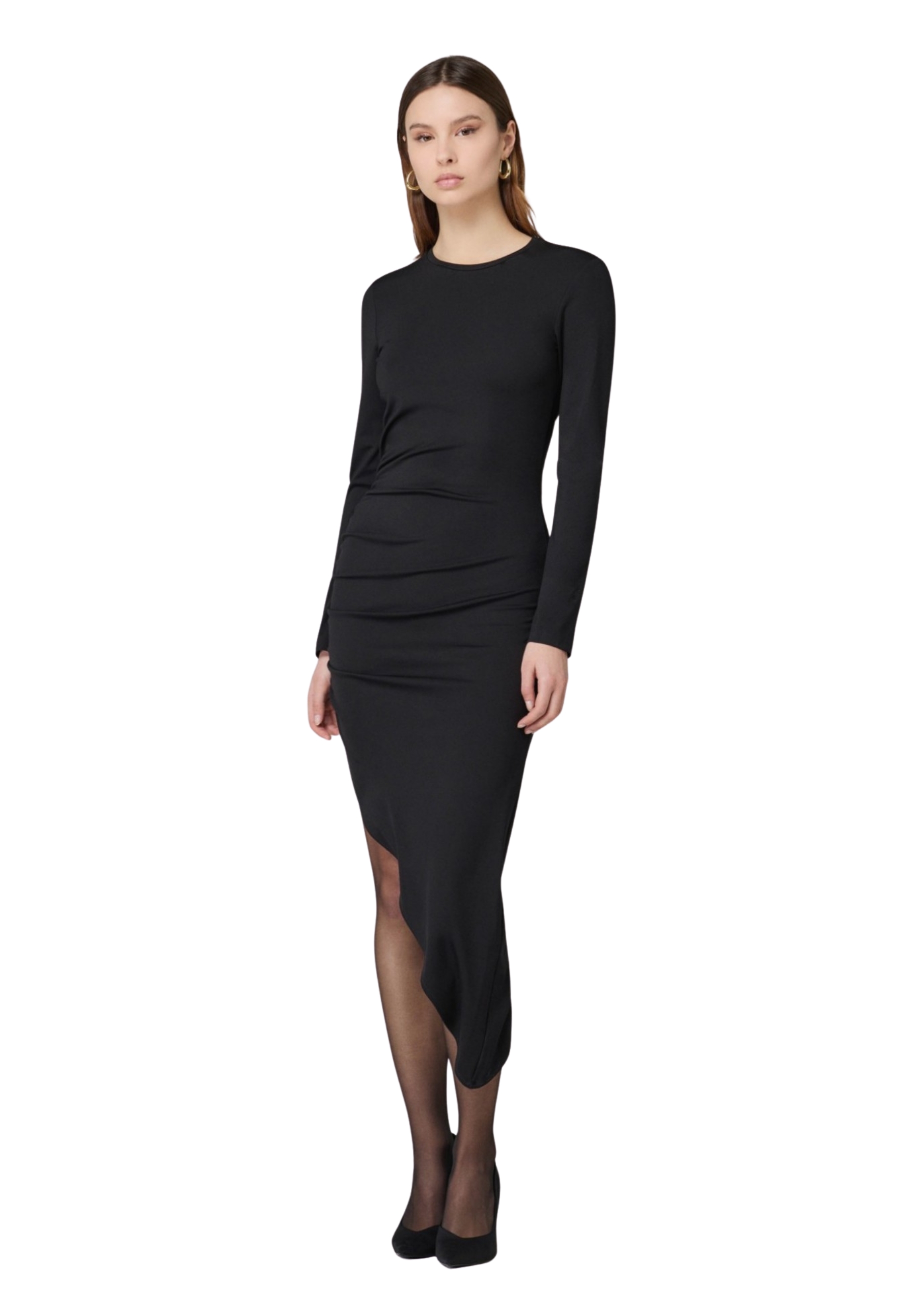 ABITO NERO MANICA LUNGA CON DRAPEGGIO LATERALE