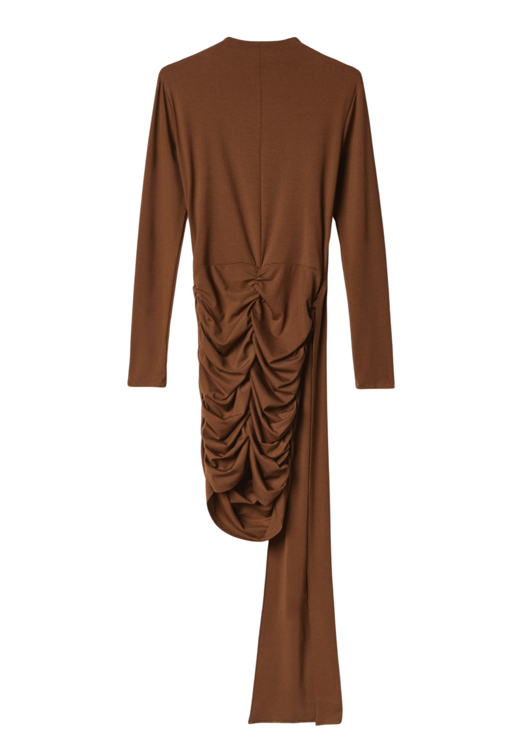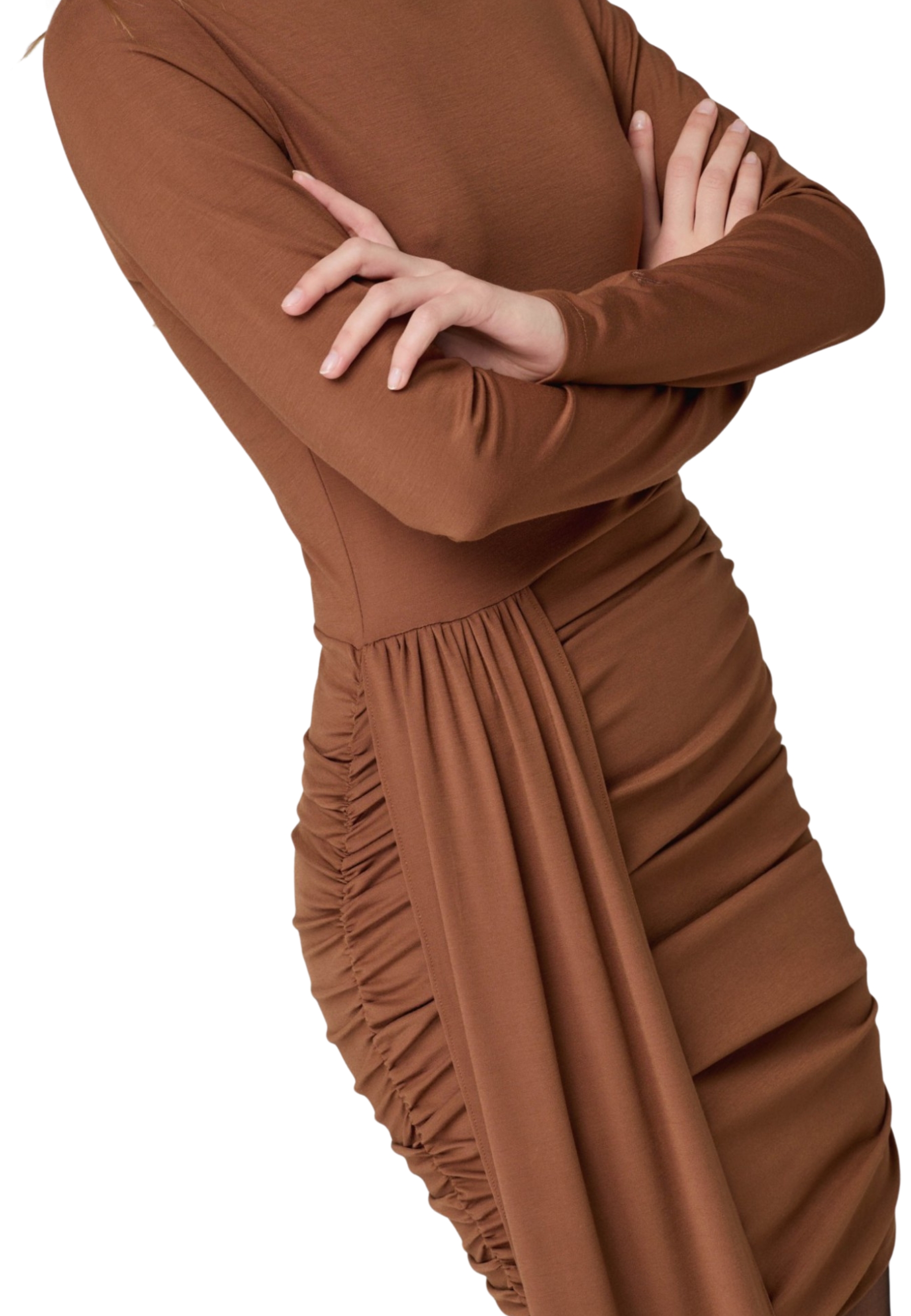 ABITO A LUPETTO MARRONE MANICA LUNGA CON DRAPEGGIO LATERALE
