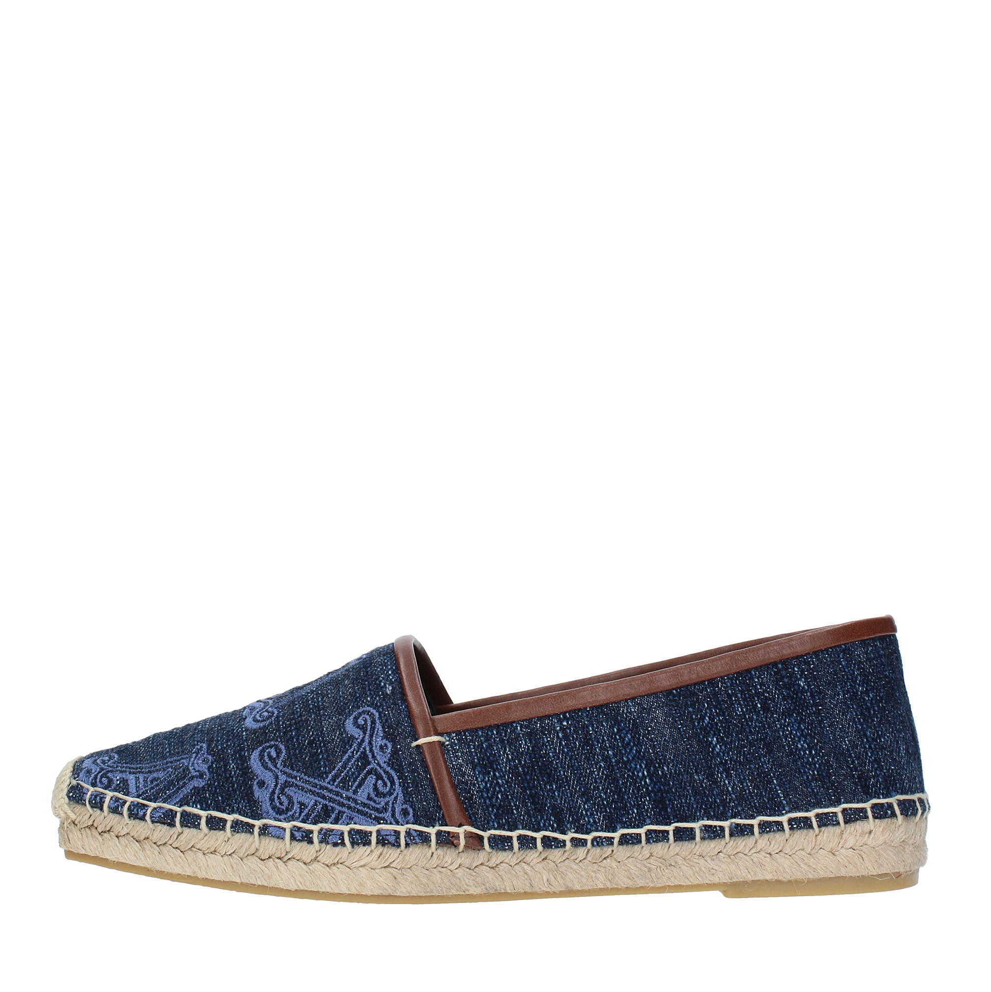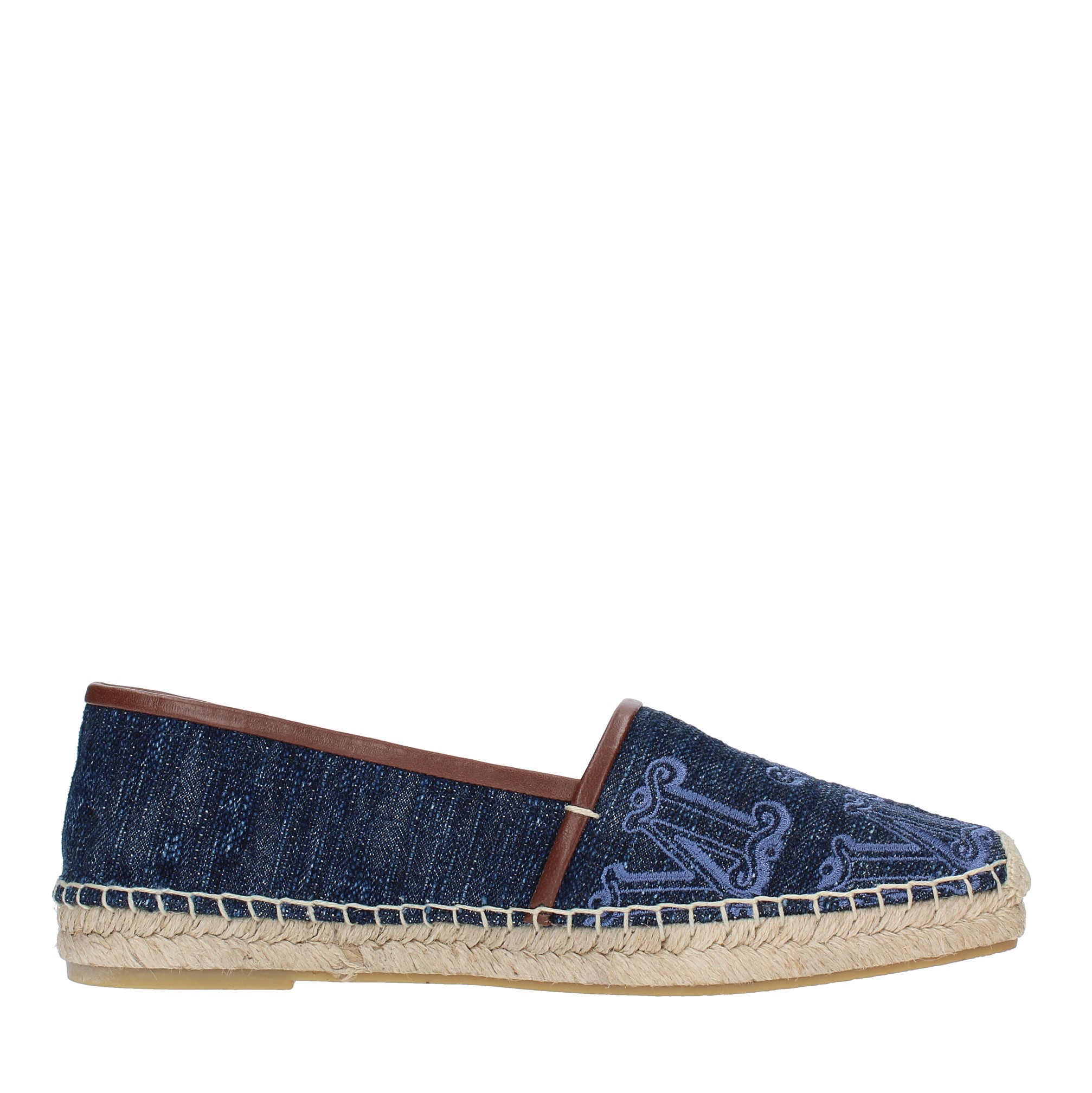 Espadrillas in tessuto. Suola esterna in gomma. Tomaia interna in pelle e tessuto.